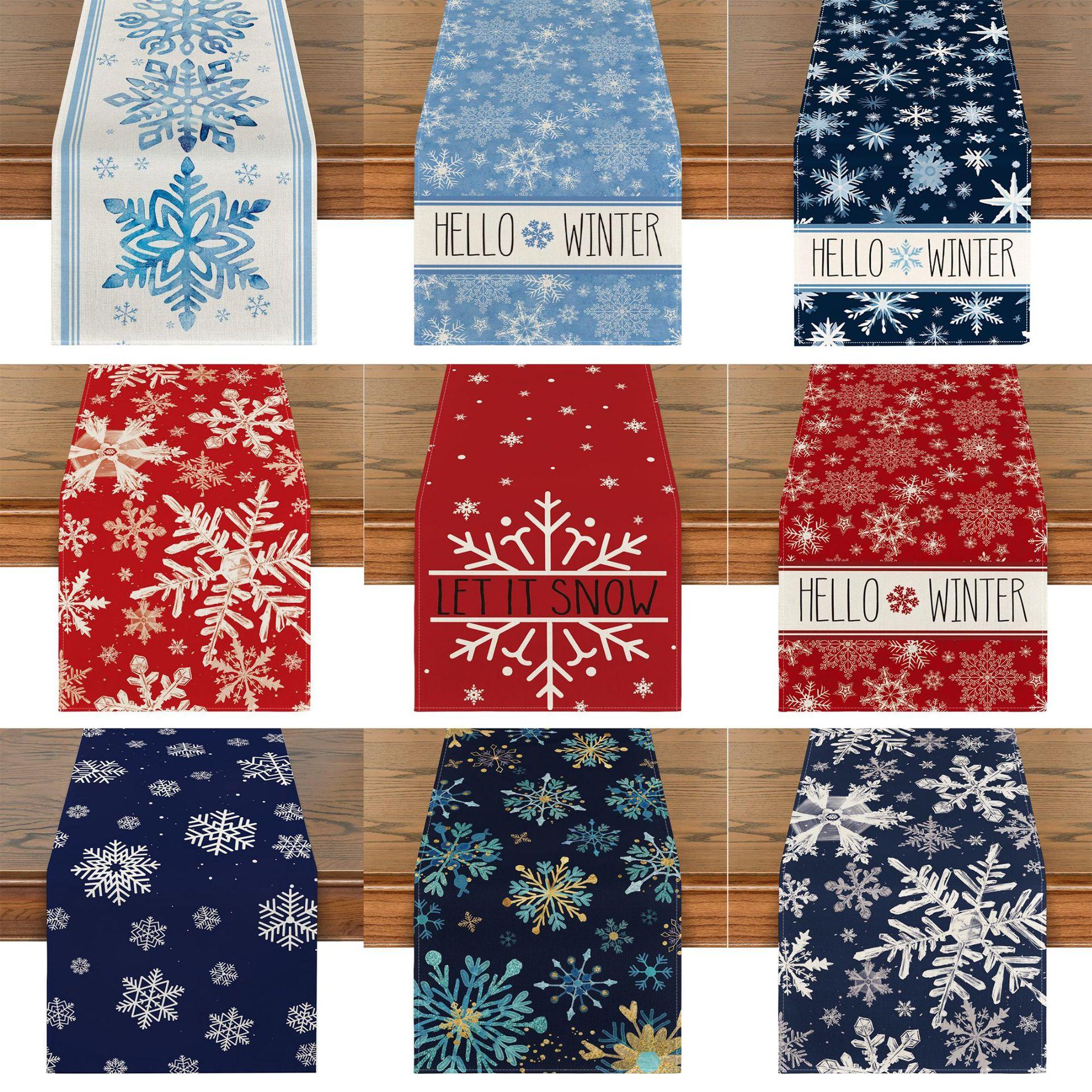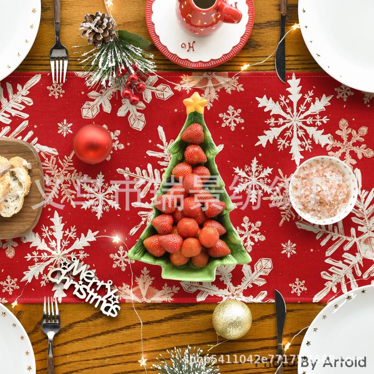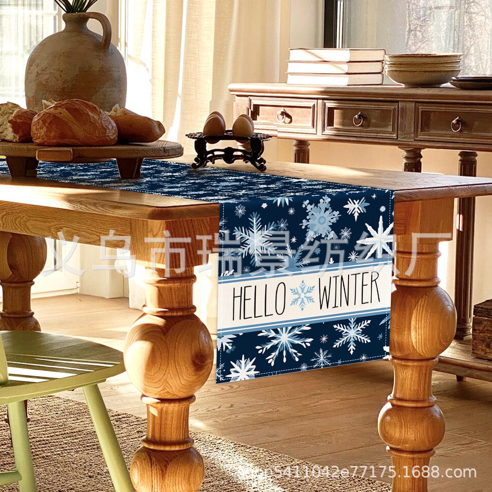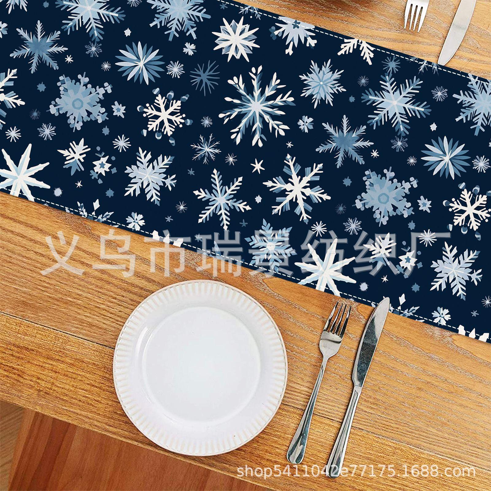 Amazon Más Vendido Invierno Camino de Mesa Transfronterizo Navidad Copo de Nieve Ambiente Festivo Decoración Mesa de Comedor de Cocina Camino de Mesa de Lino