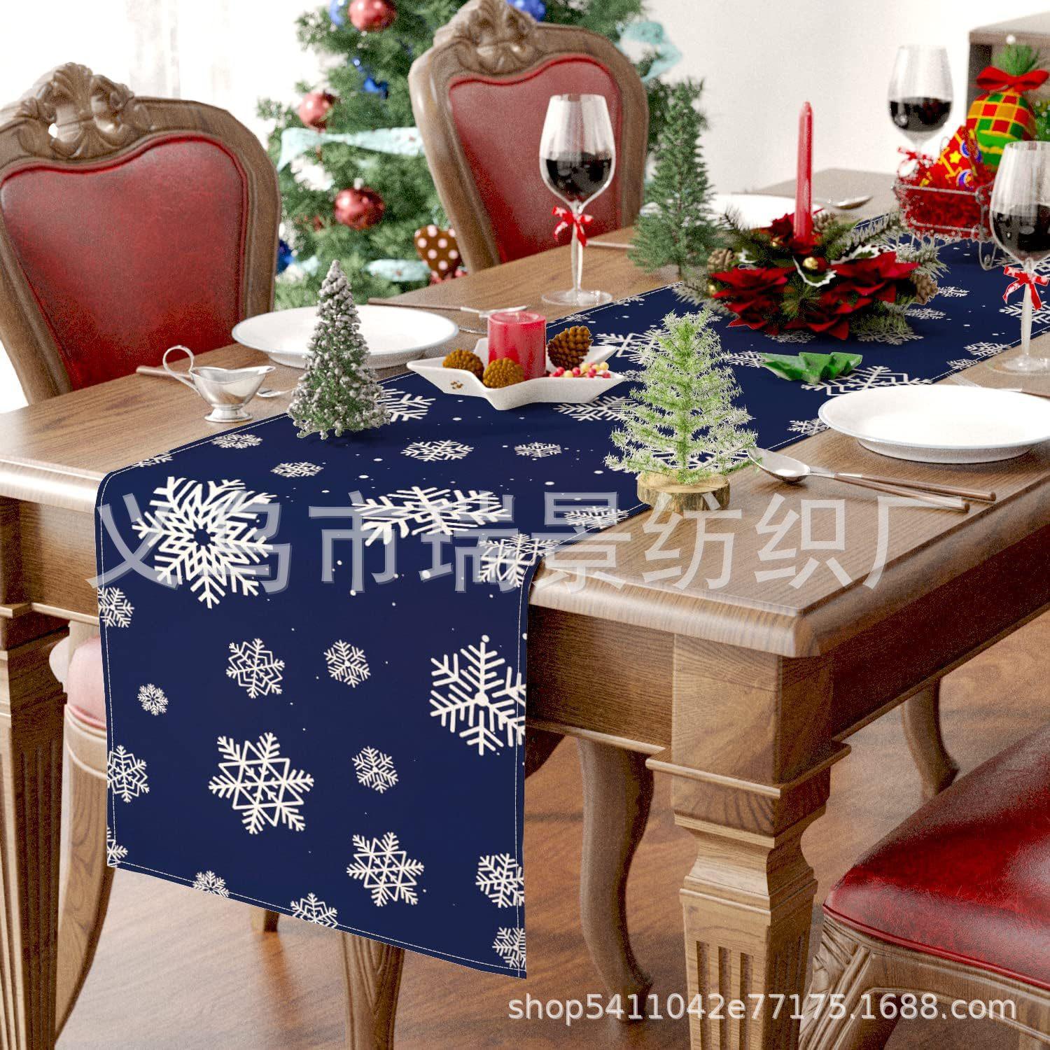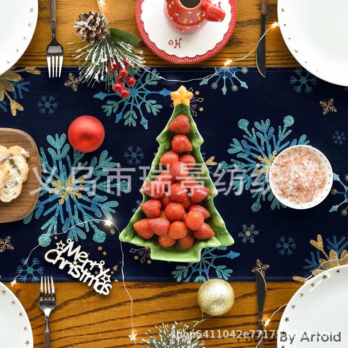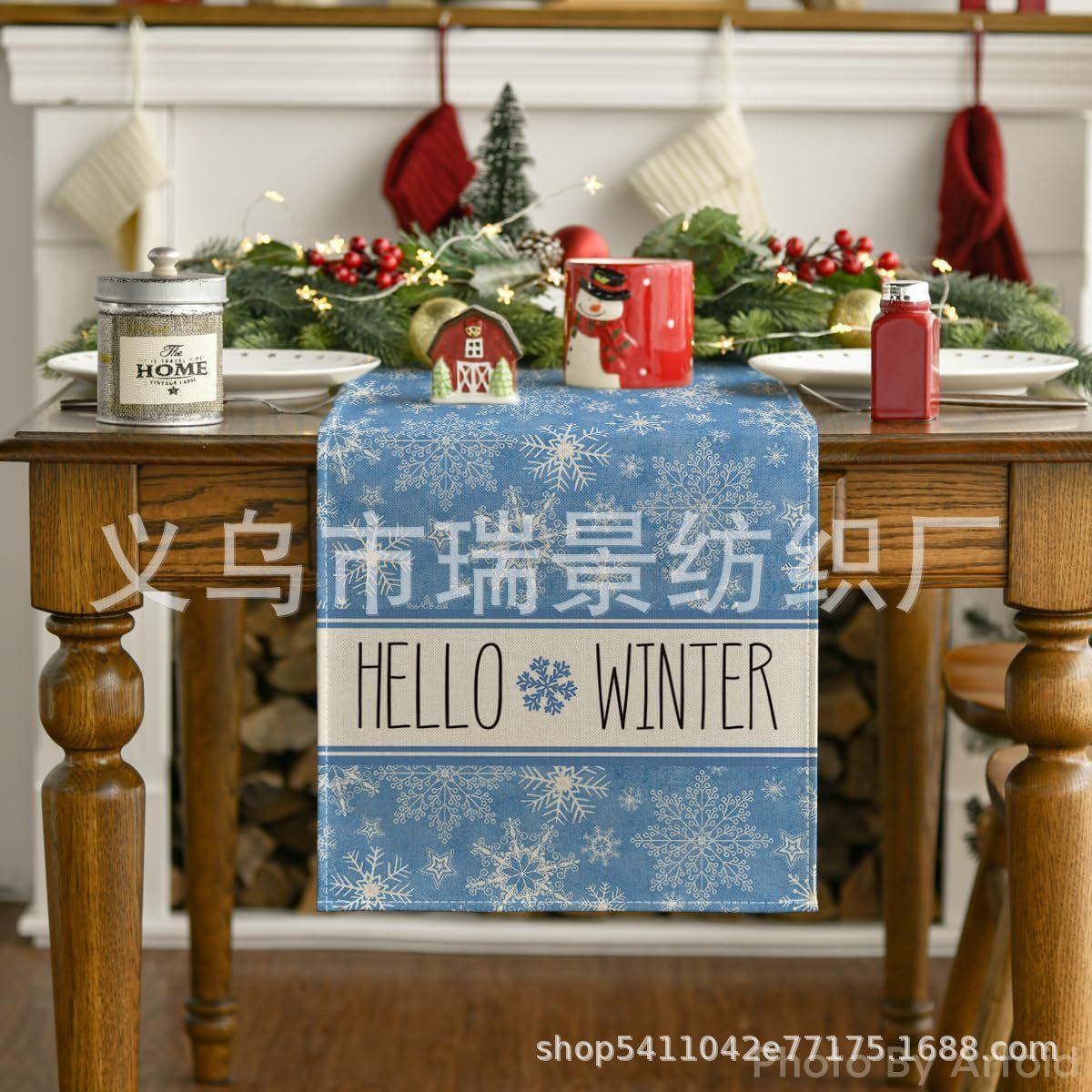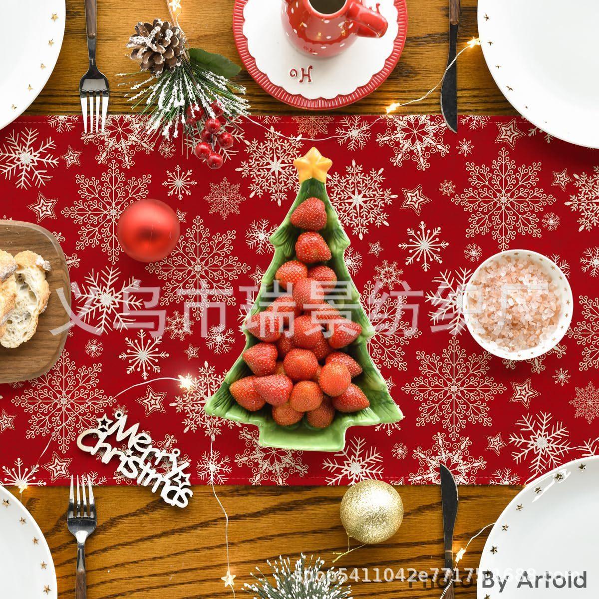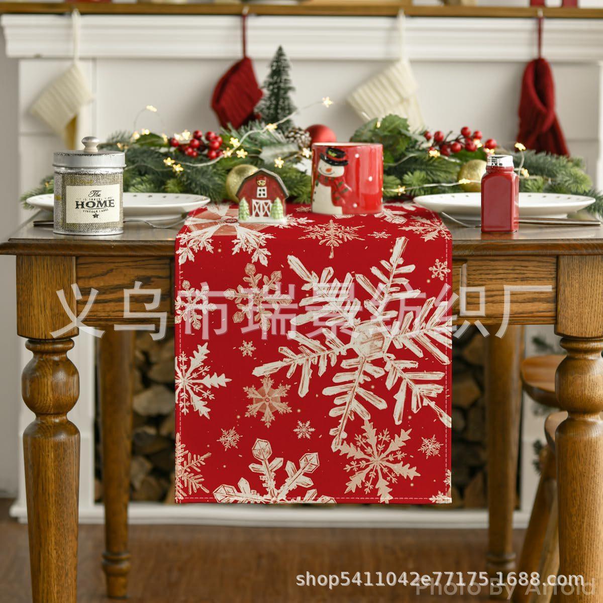 Amazon Más Vendido Invierno Camino de Mesa Transfronterizo Navidad Copo de Nieve Ambiente Festivo Decoración Mesa de Comedor de Cocina Camino de Mesa de Lino