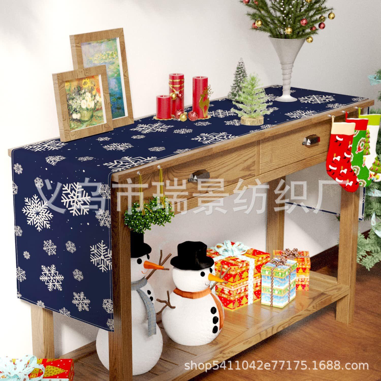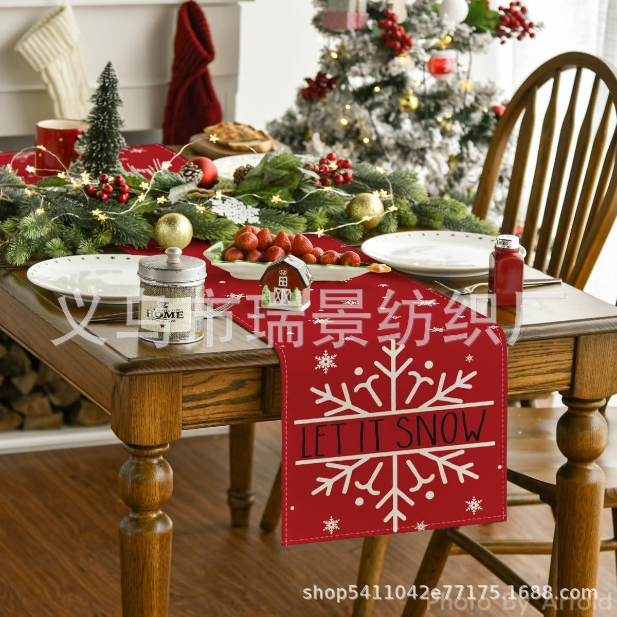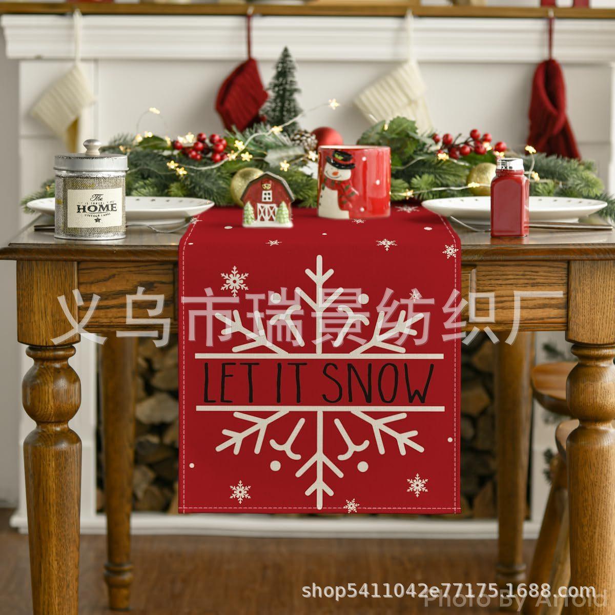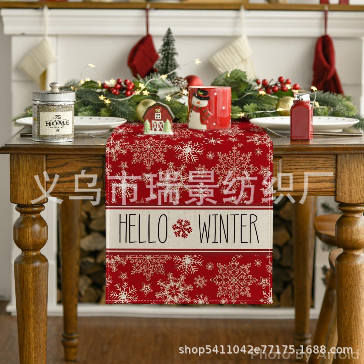 Amazon Más Vendido Invierno Camino de Mesa Transfronterizo Navidad Copo de Nieve Ambiente Festivo Decoración Mesa de Comedor de Cocina Camino de Mesa de Lino