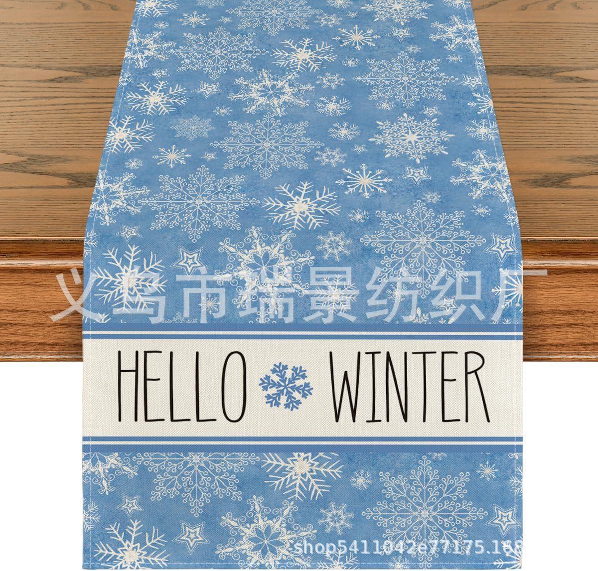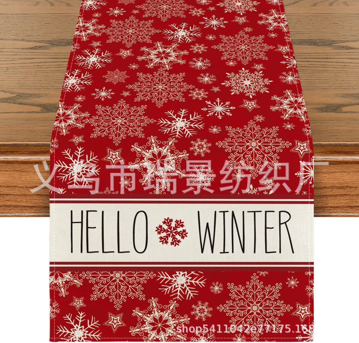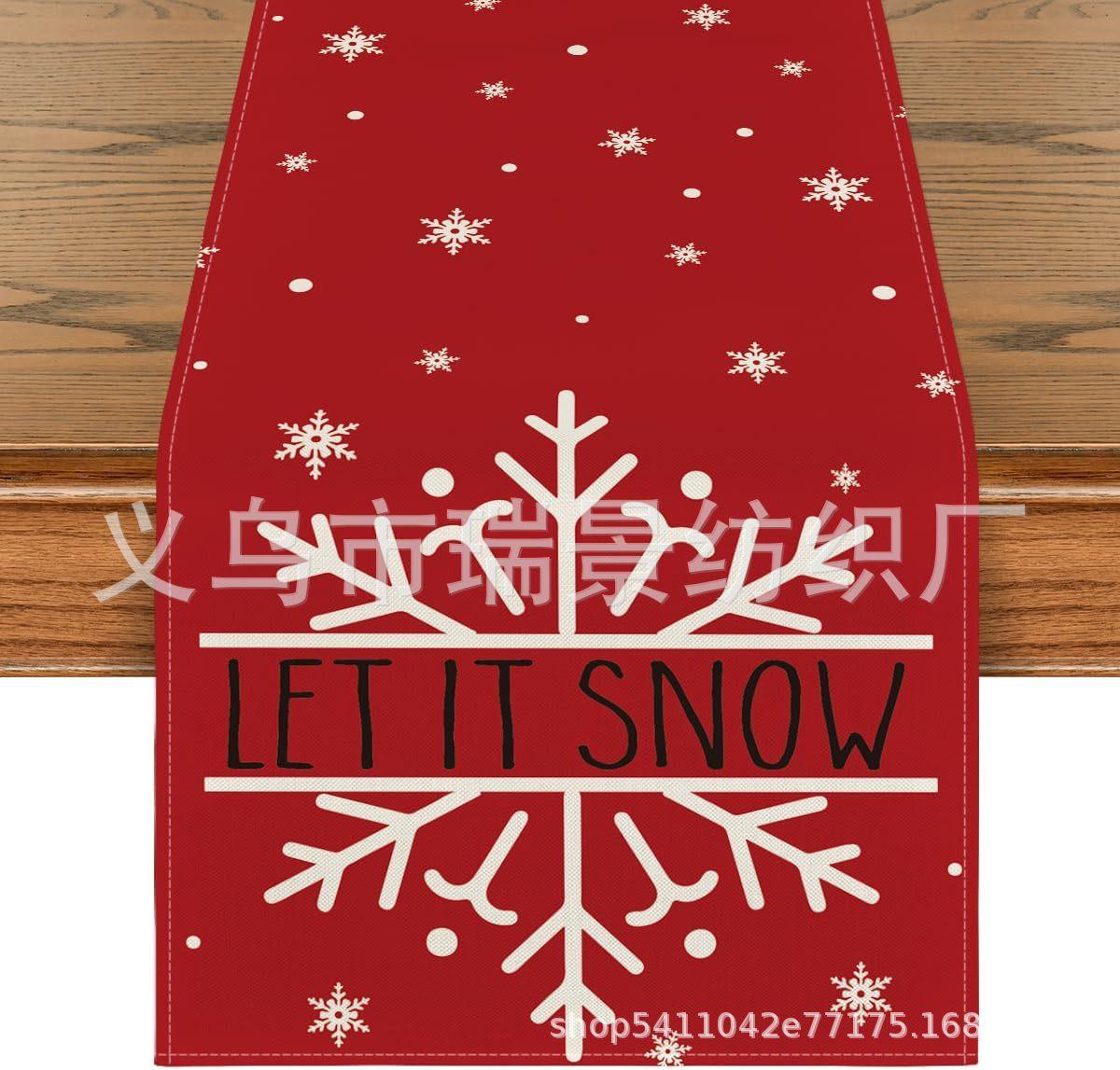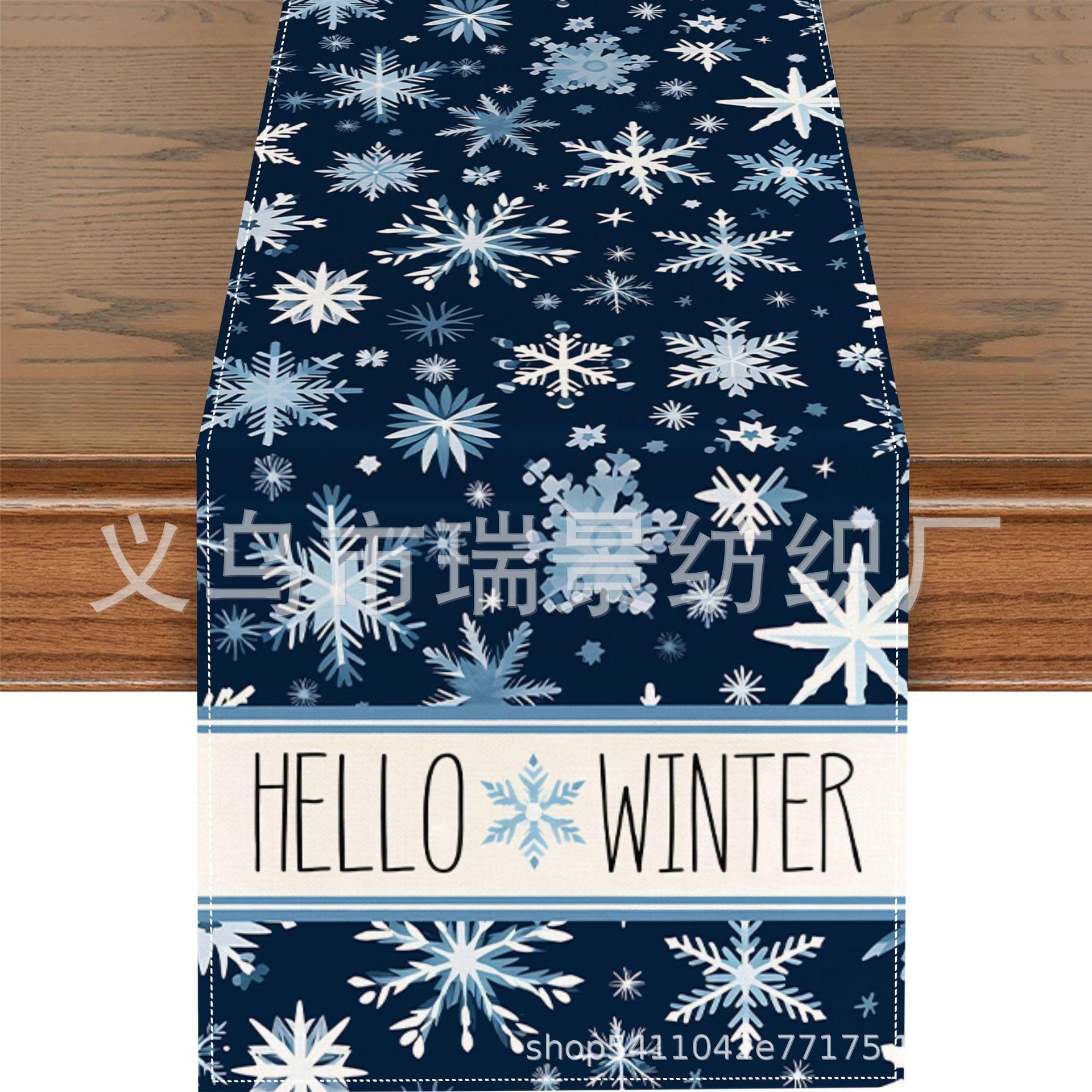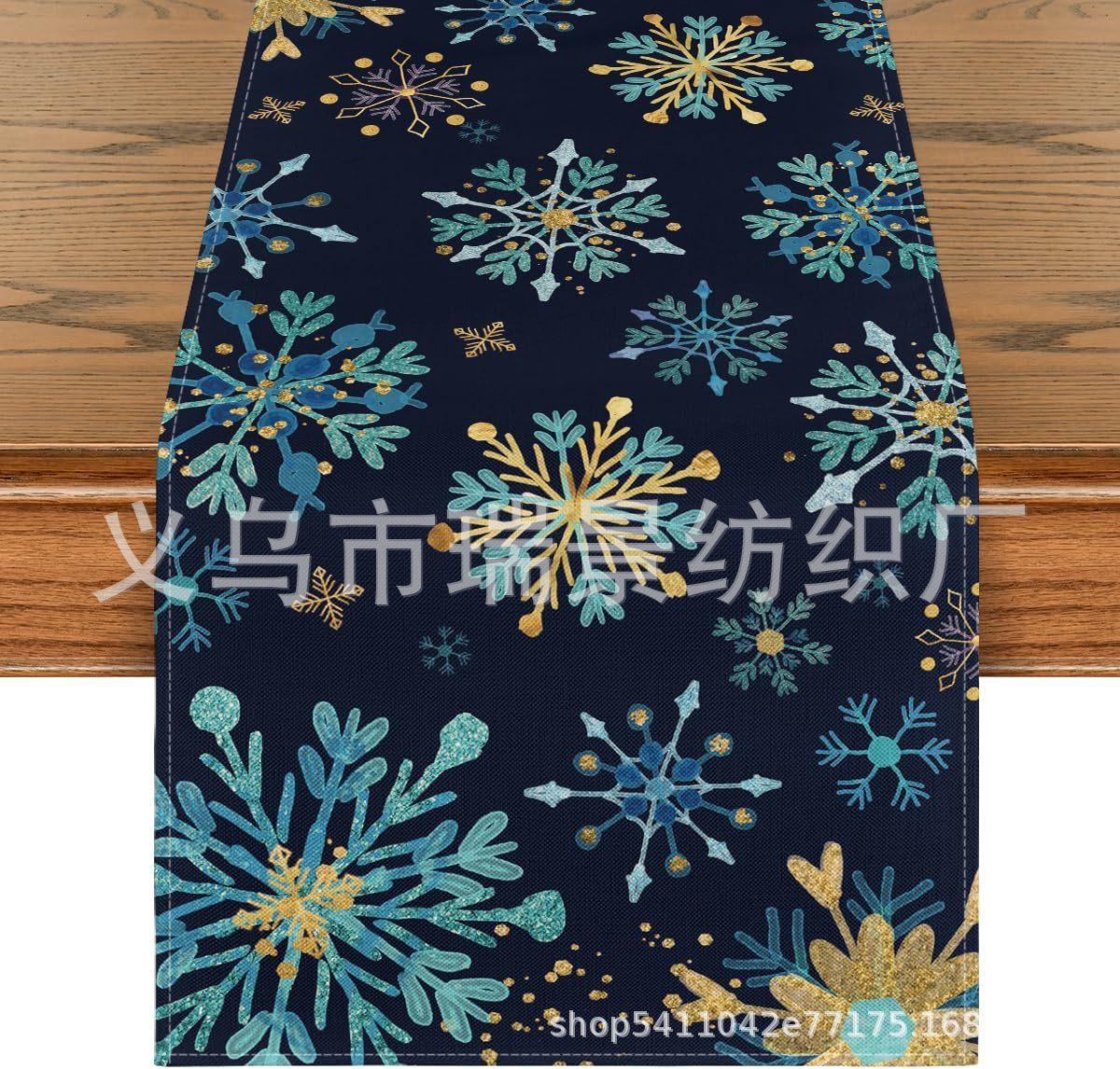 Amazon Más Vendido Invierno Camino de Mesa Transfronterizo Navidad Copo de Nieve Ambiente Festivo Decoración Mesa de Comedor de Cocina Camino de Mesa de Lino