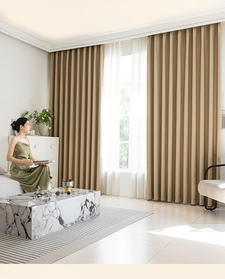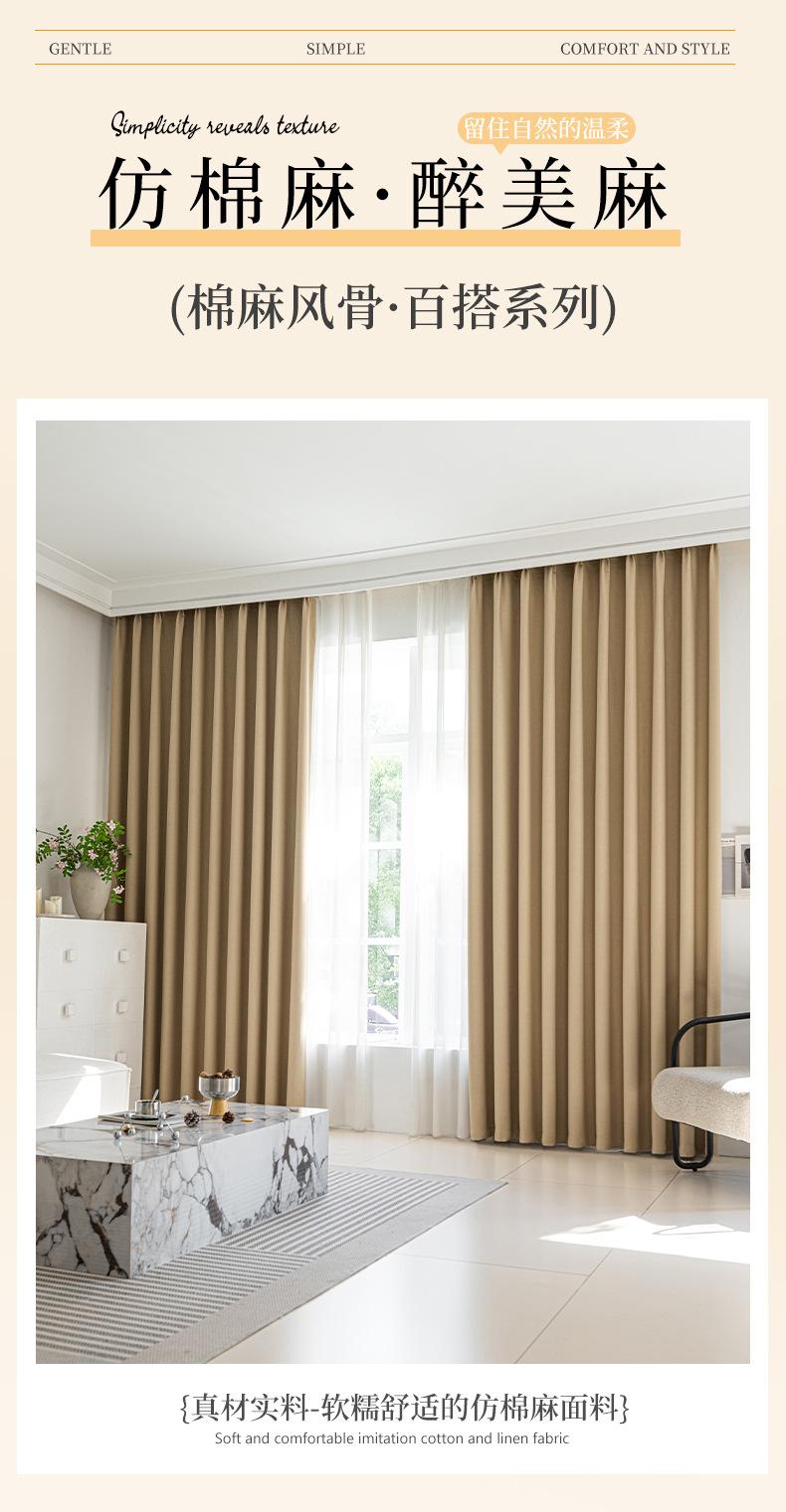 Cortinas minimalistas modernas cortinas con textura de lino de algodón sintético cortinas gruesas de alto bloqueo de luz cortinas terminadas al por mayor de Shaoxing