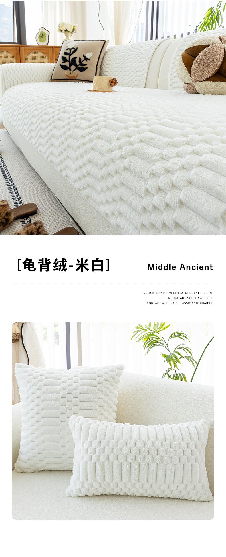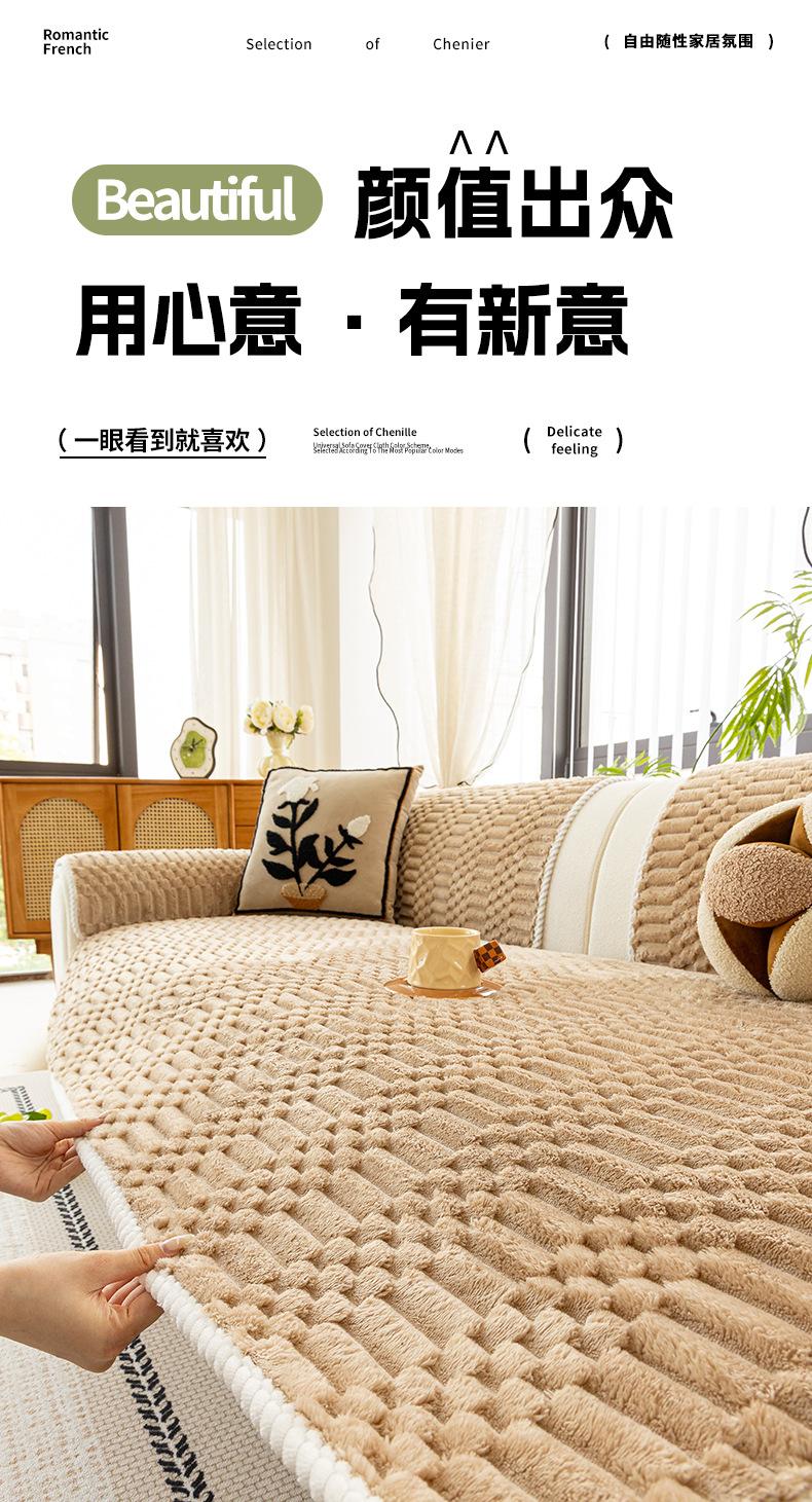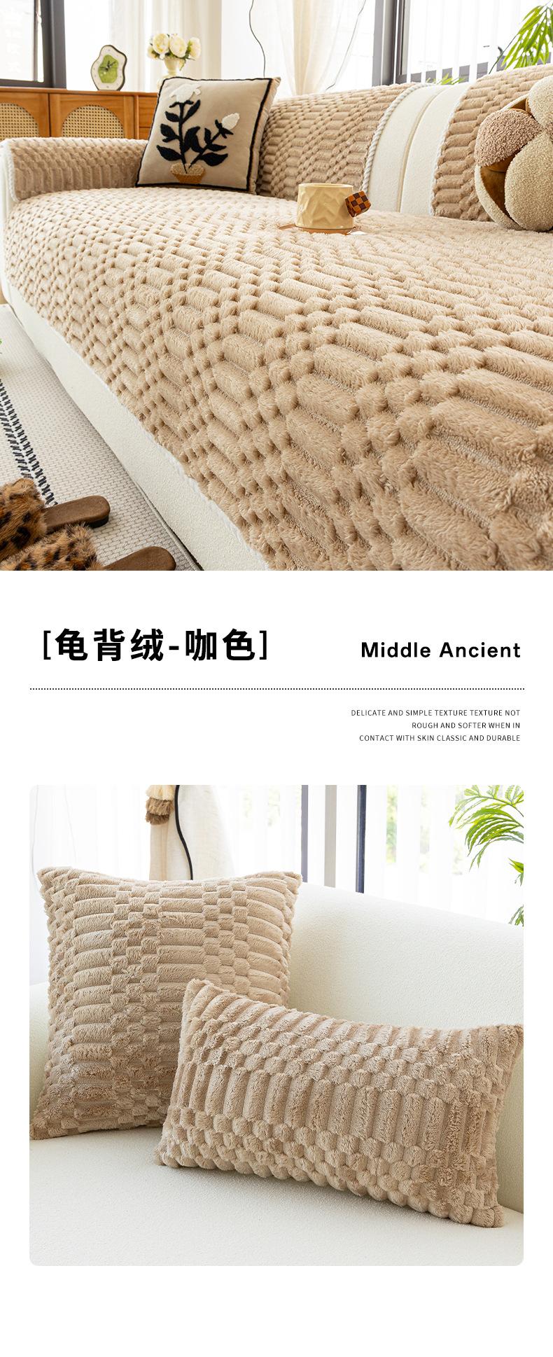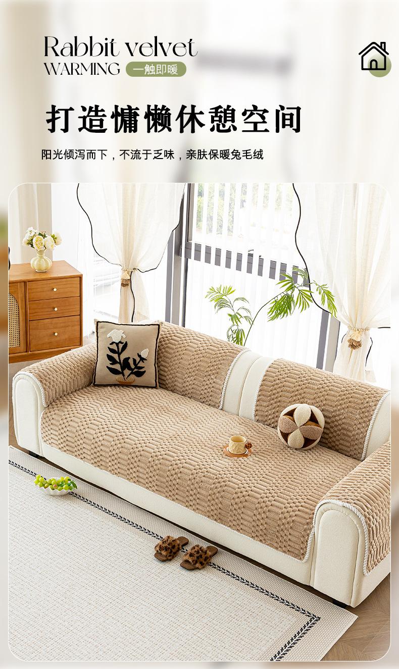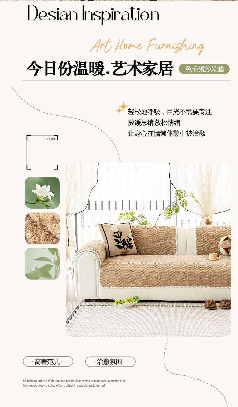 Cojín de Sofá de Felpa de Piel de Conejo Espesado Estilo Retro 2025 Nuevo Estilo Otoño e Invierno Cubierta Fija Antideslizante Cojín de Asiento Exclusivo Transfronterizo