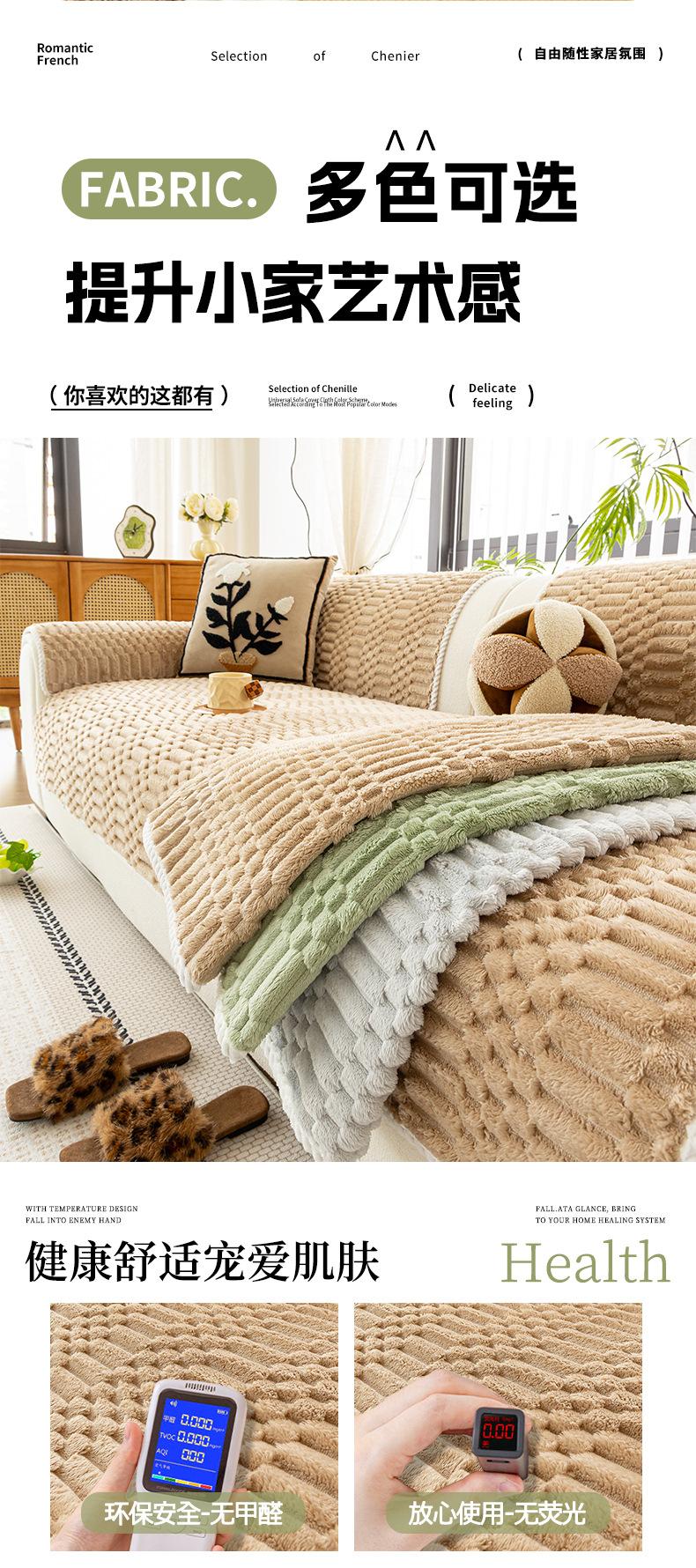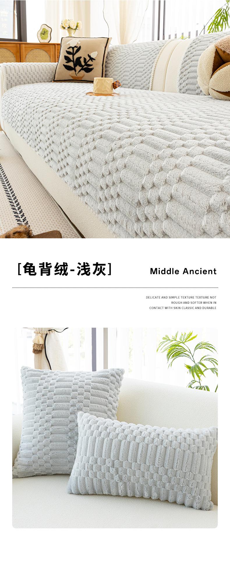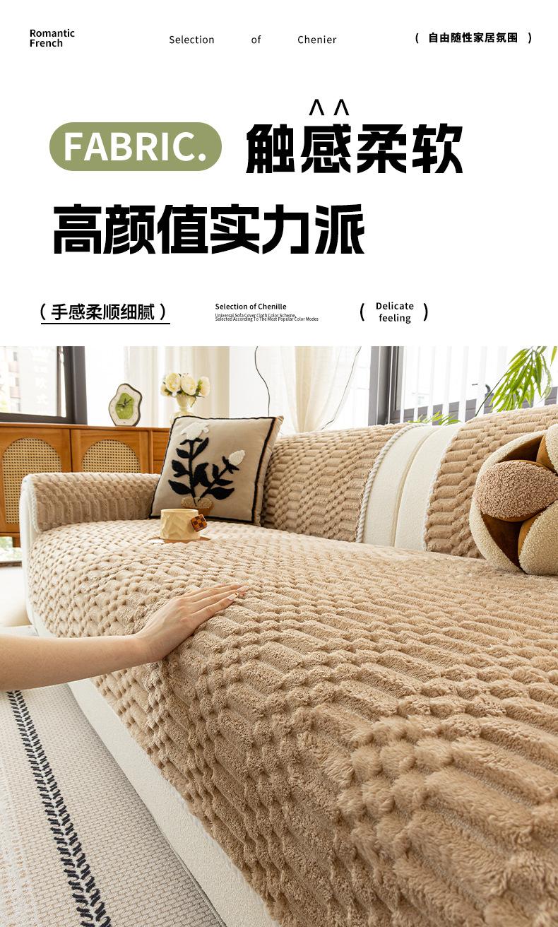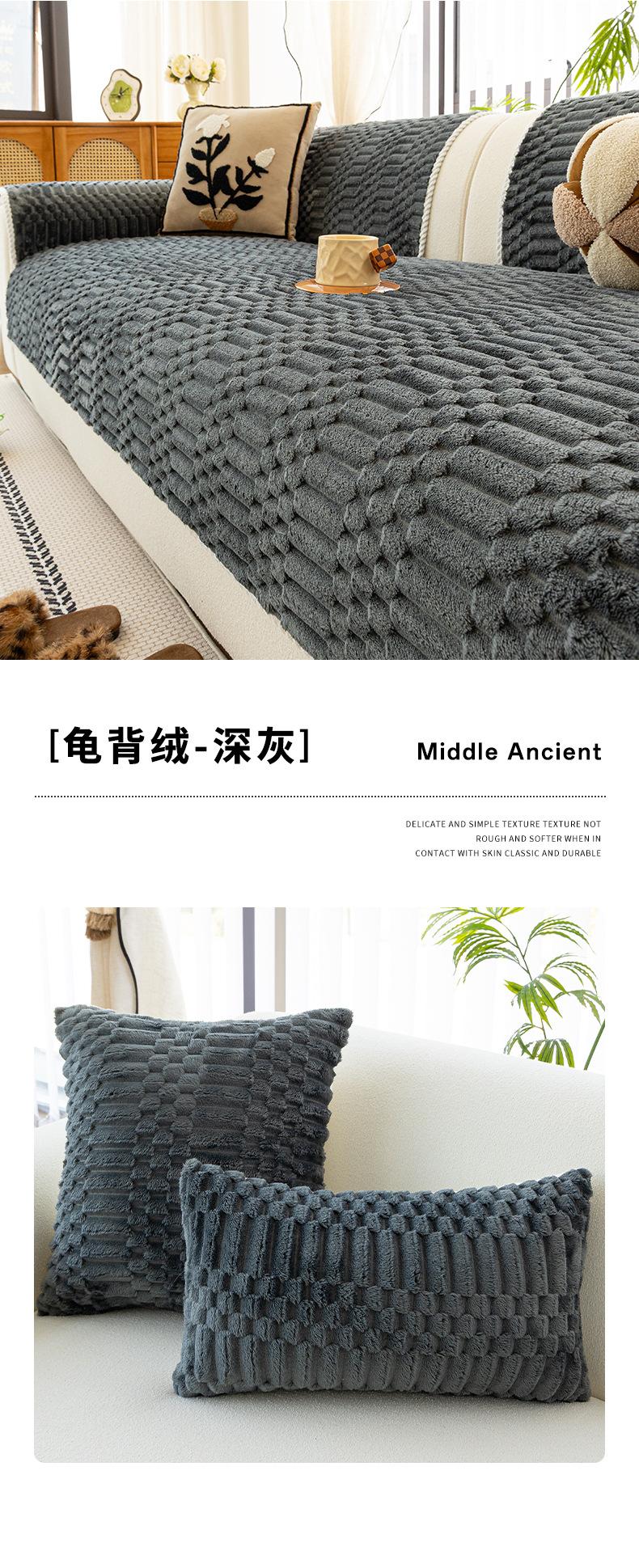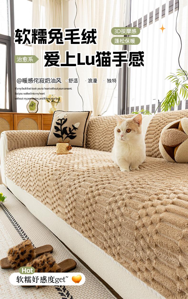 Cojín de Sofá de Felpa de Piel de Conejo Espesado Estilo Retro 2025 Nuevo Estilo Otoño e Invierno Cubierta Fija Antideslizante Cojín de Asiento Exclusivo Transfronterizo