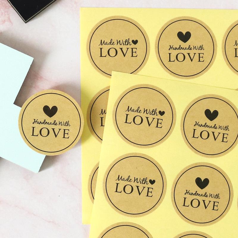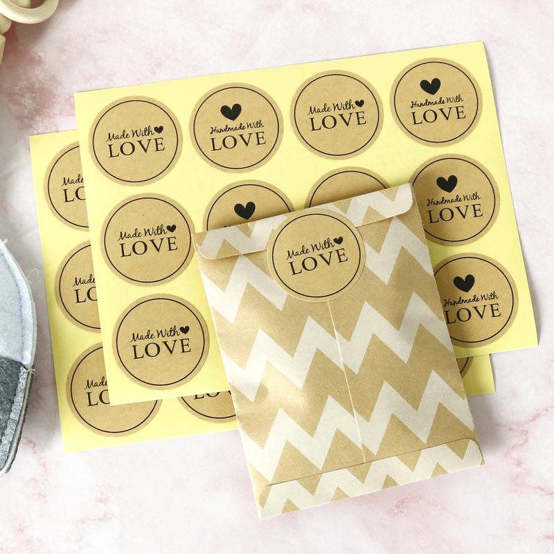Nombre del producto: Pegatinas Hecho a mano con amor Horneado Regalo Empaque Caja de pastel Sellado 12 Piezas