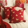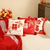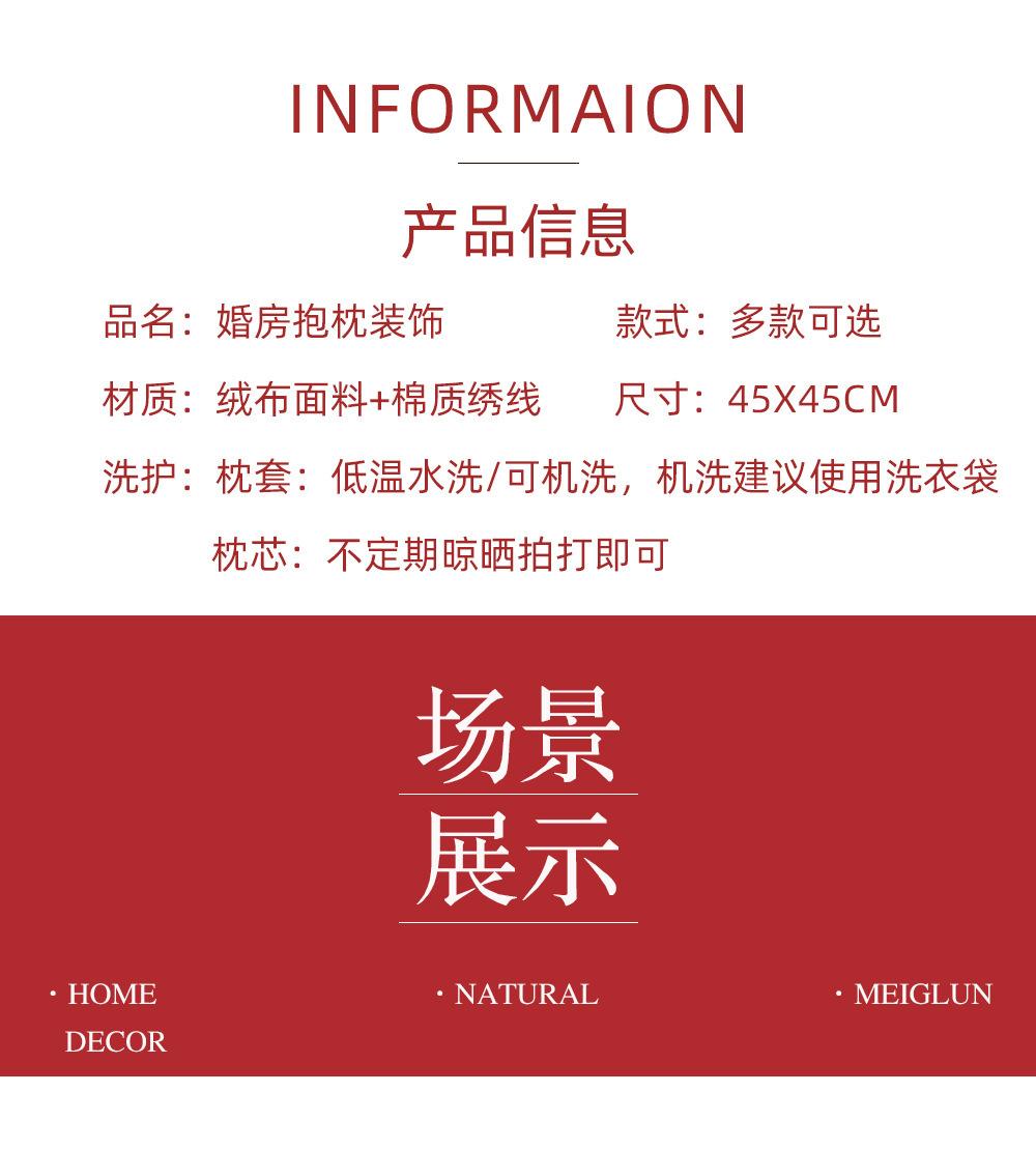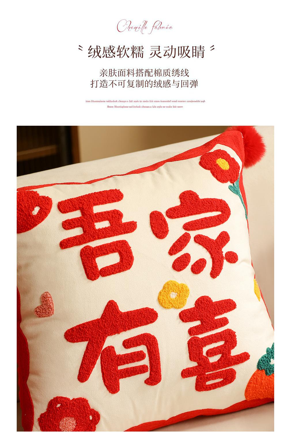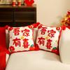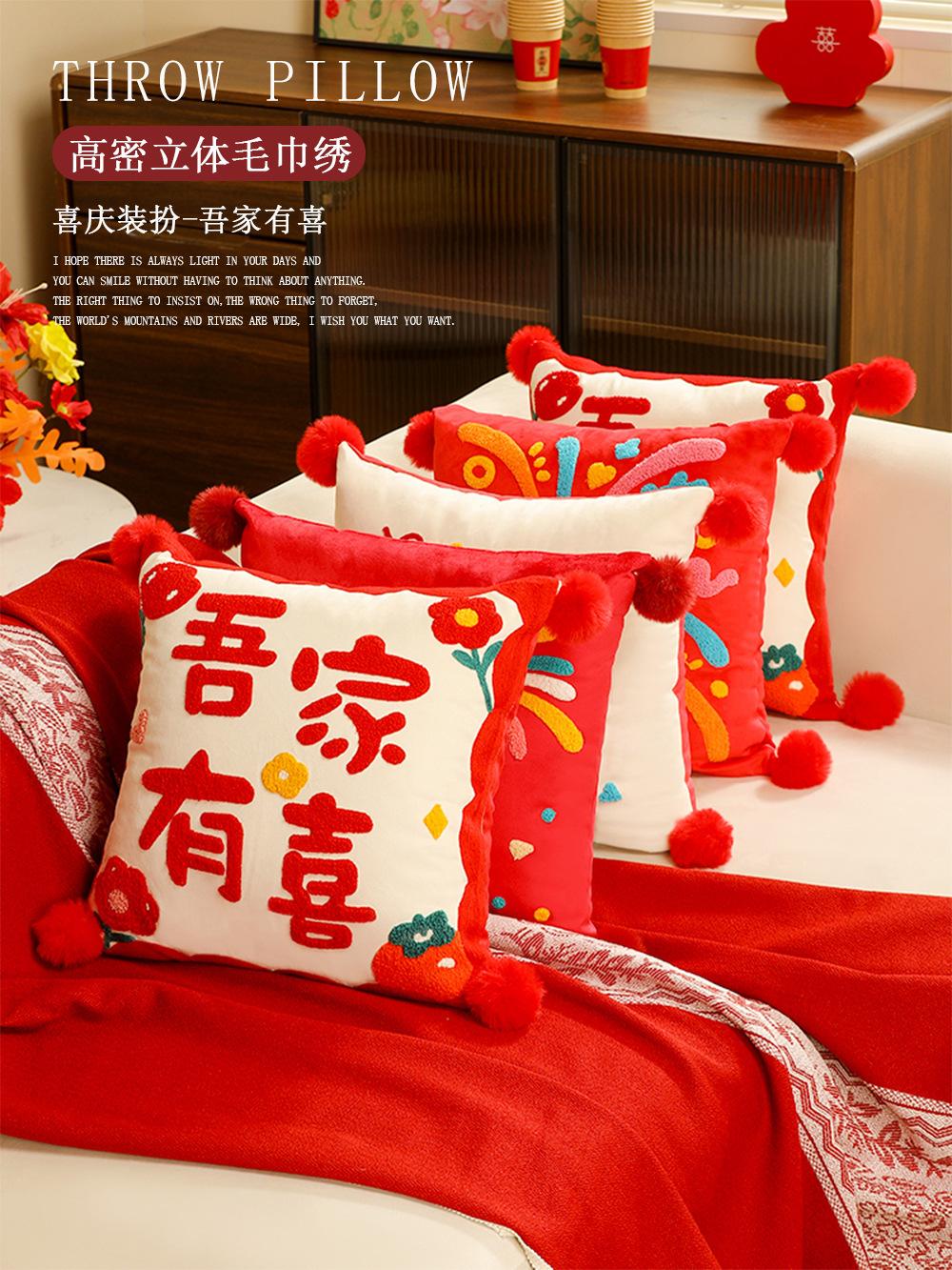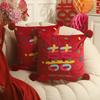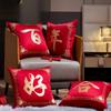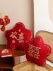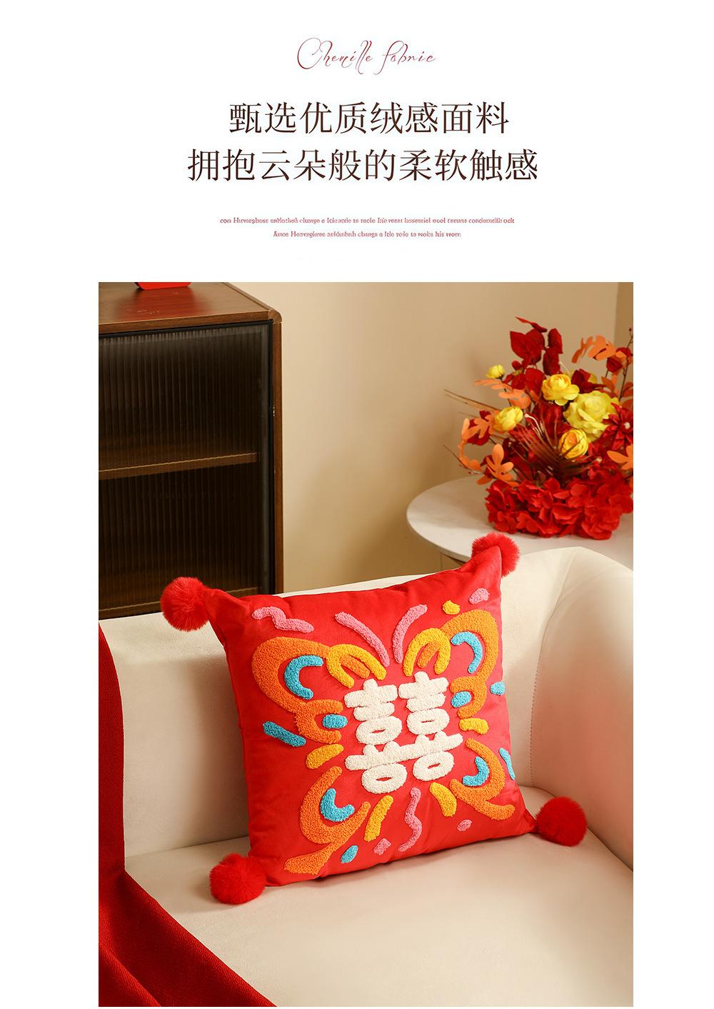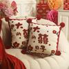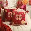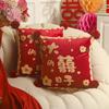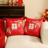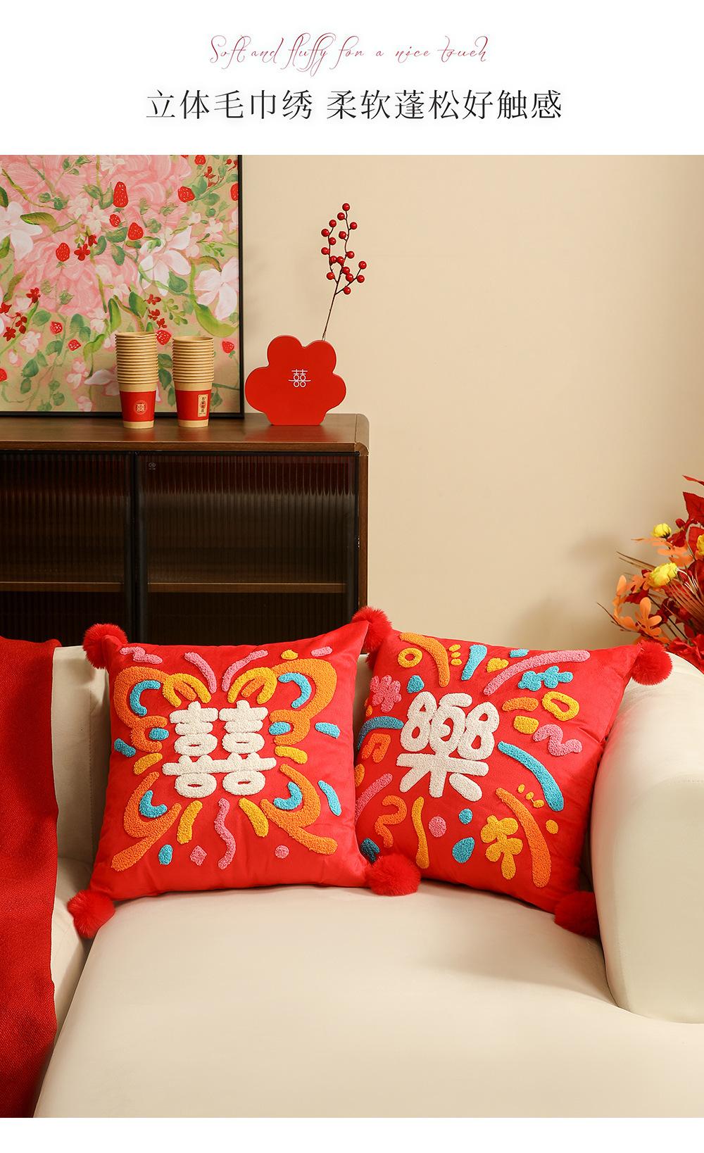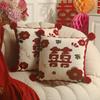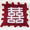 Decoración de Doble Felicidad para Habitación de Boda Bordado Almohada Feliz Almohada de Respaldo para Sofá de Sala de Estar Almohada de Peluche para Boda Rojo Auspicioso Almohada para Presionar la Cama