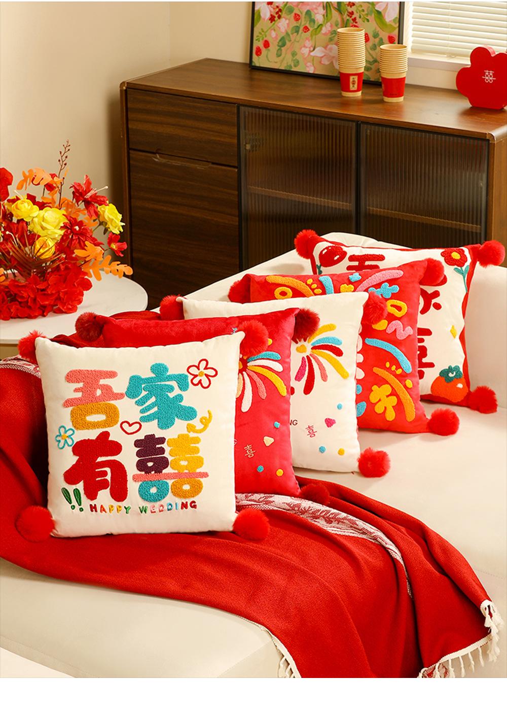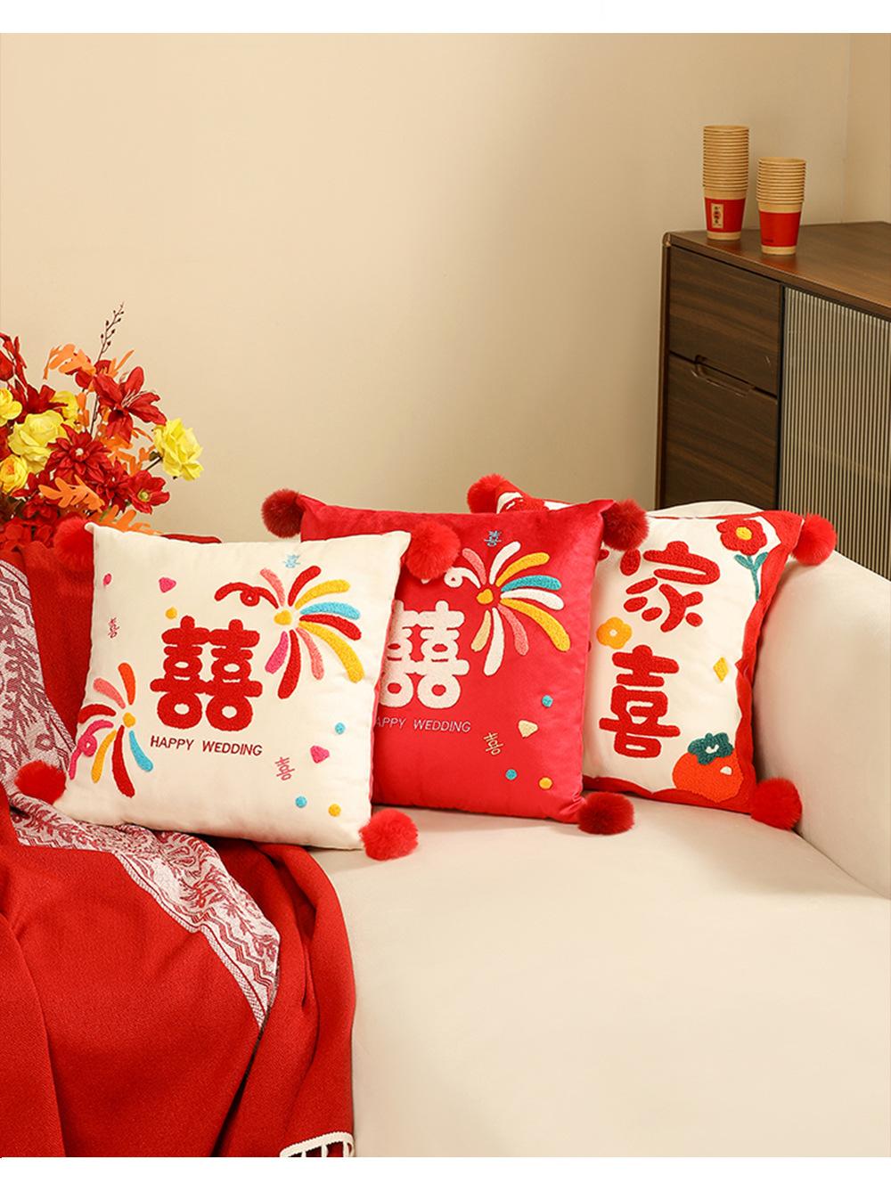 【New Special Offer】Red Fireworks Double Happiness Throw Pillow [Set of 2], White Fireworks Double Happiness Th...