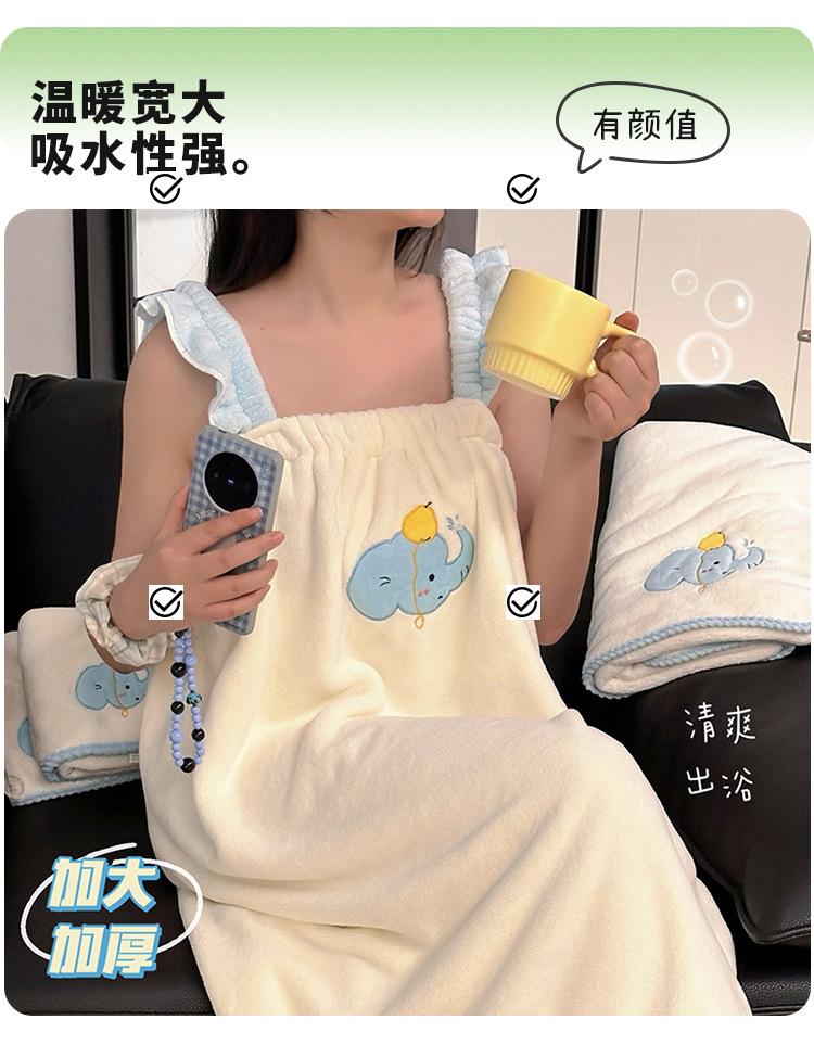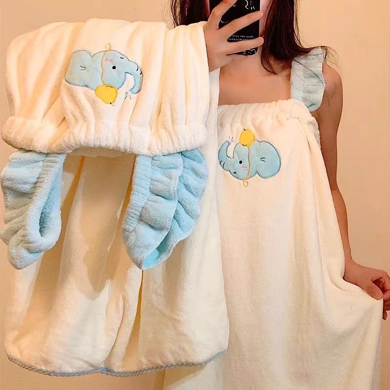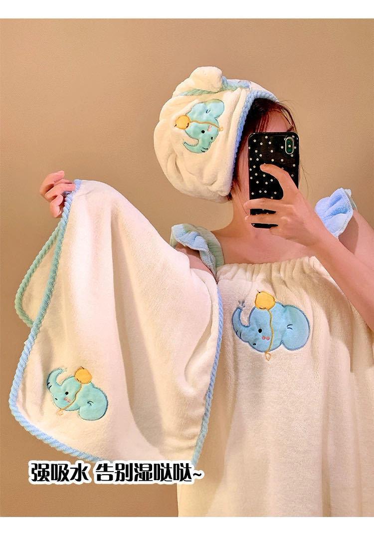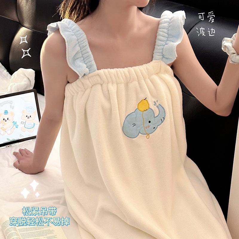 Bata de baño nueva tipo sling, toalla de baño para adulto ponible, absorbente de agua, de secado rápido, linda, de dibujos animados, para baño, falda de baño, estudiante, chica, linda