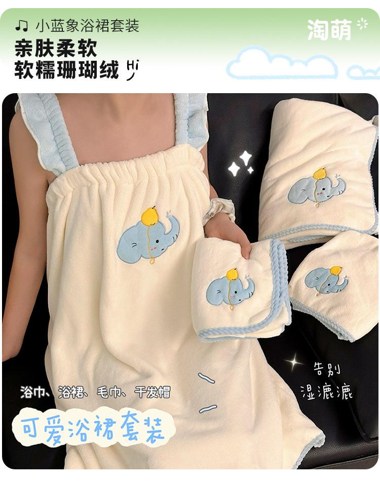 Bathrobe+Towel+Dry Hair Cap【Upgraded Lace Straps】