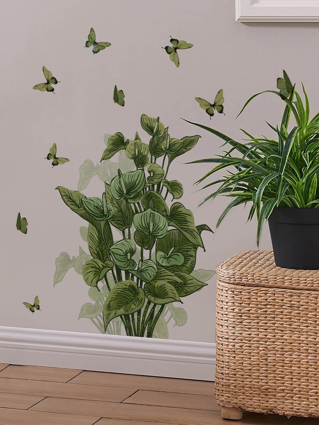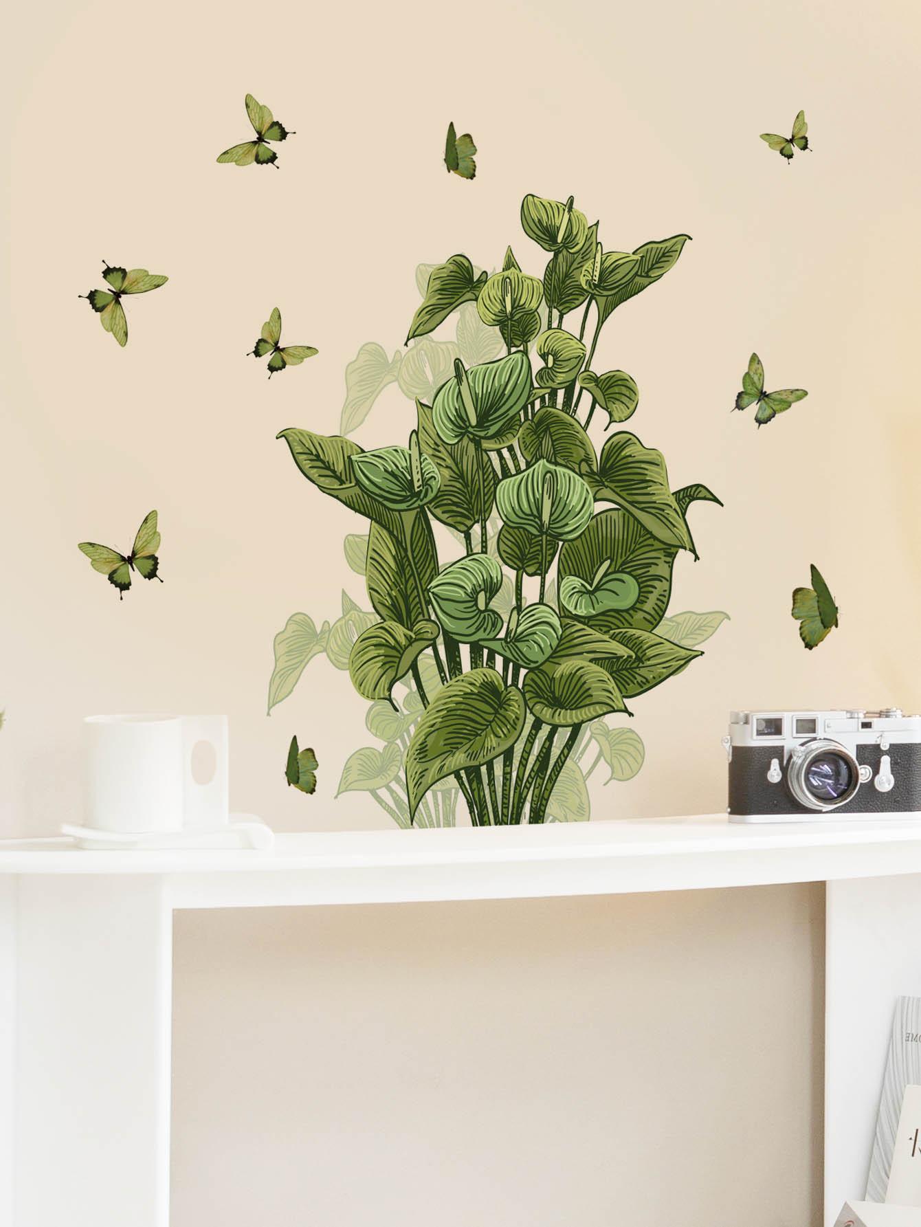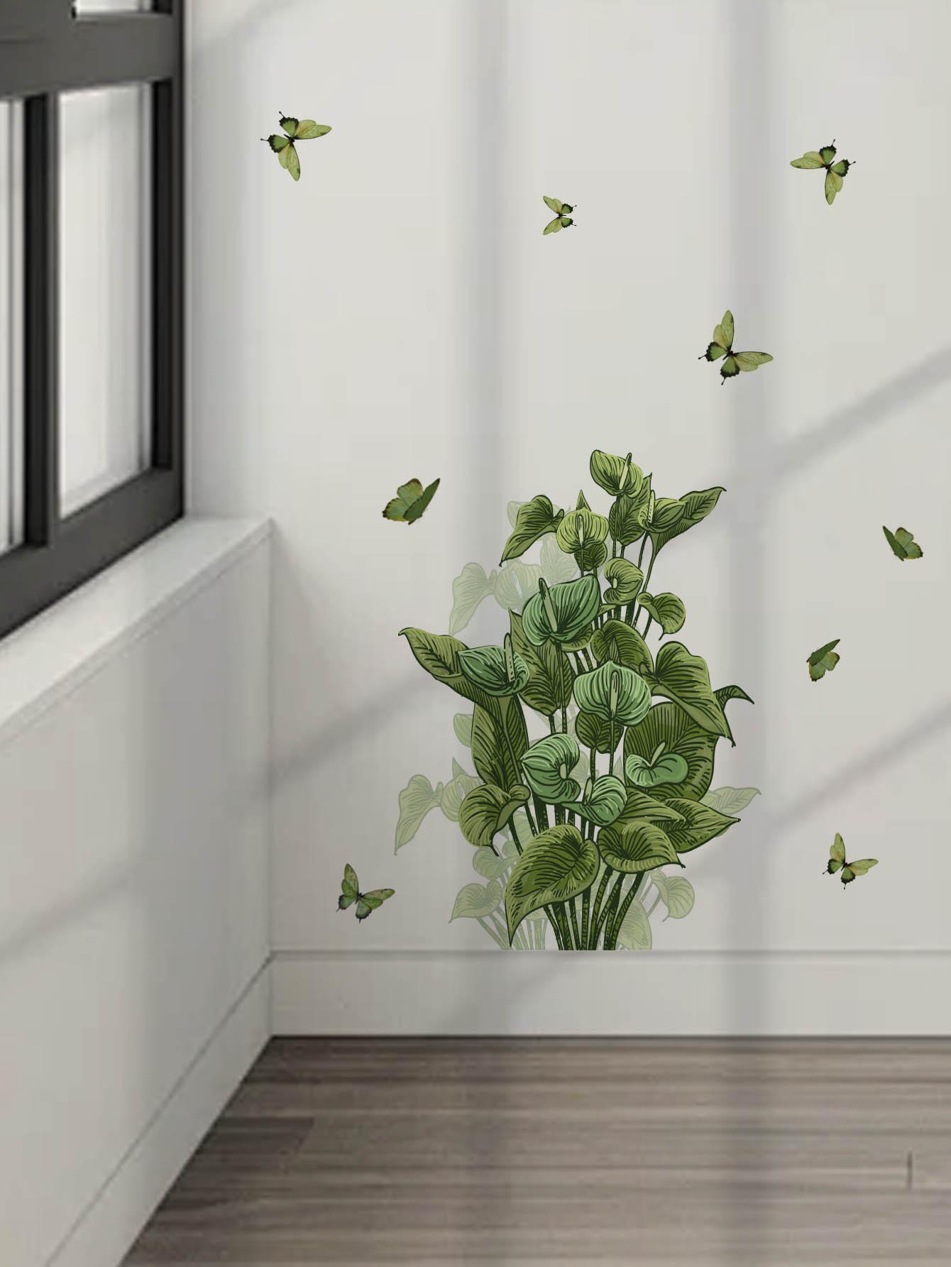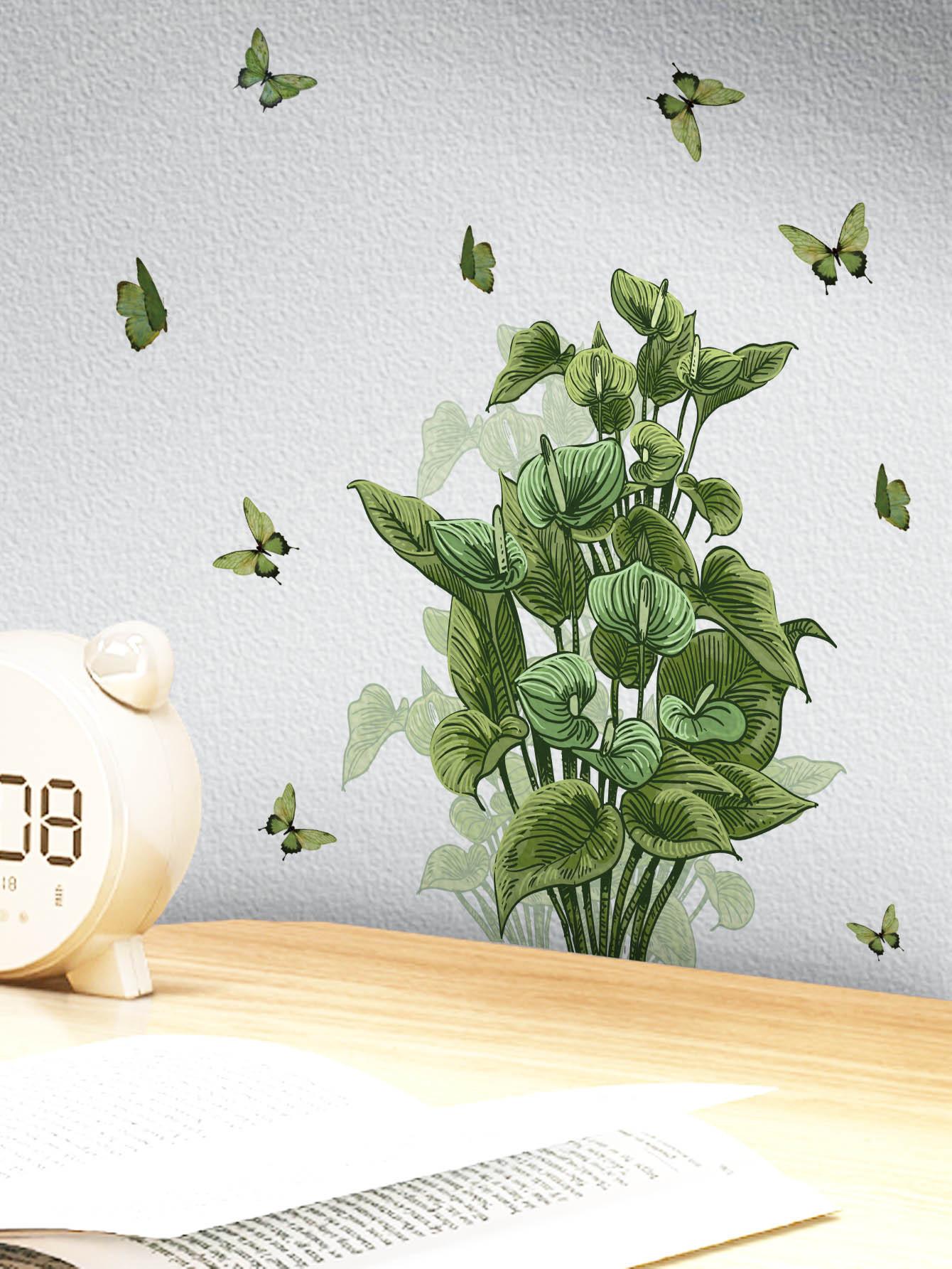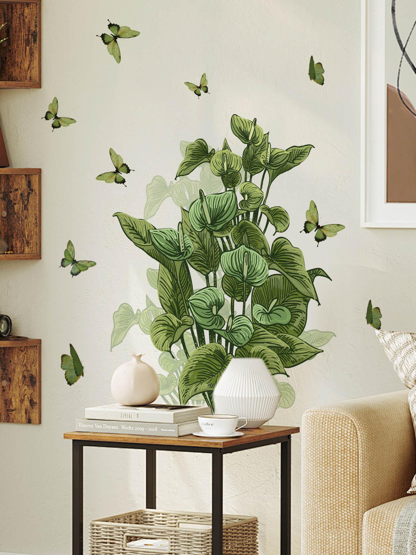 Hojas Verdes Nórdico Planta Tropical Pegatinas de Pared Pastoral Planta Verde Papel Tapiz Pequeño Fresco Sala de Estar Decoración de Puerta Pegatinas Pegatinas de Pared