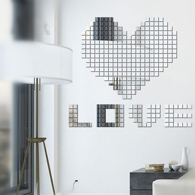 Adhesivo de Pared de Espejo Cuadrado 3D Cristal Estéreo Acrílico Adhesivo de Pared Sala de Estar Dormitorio Fondo de TV Decoración de Pared Pintura