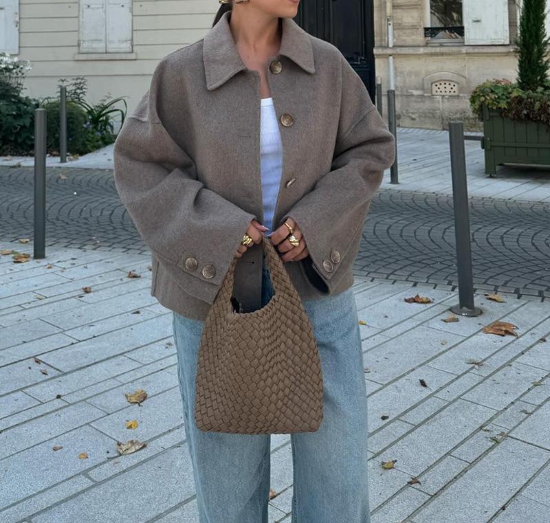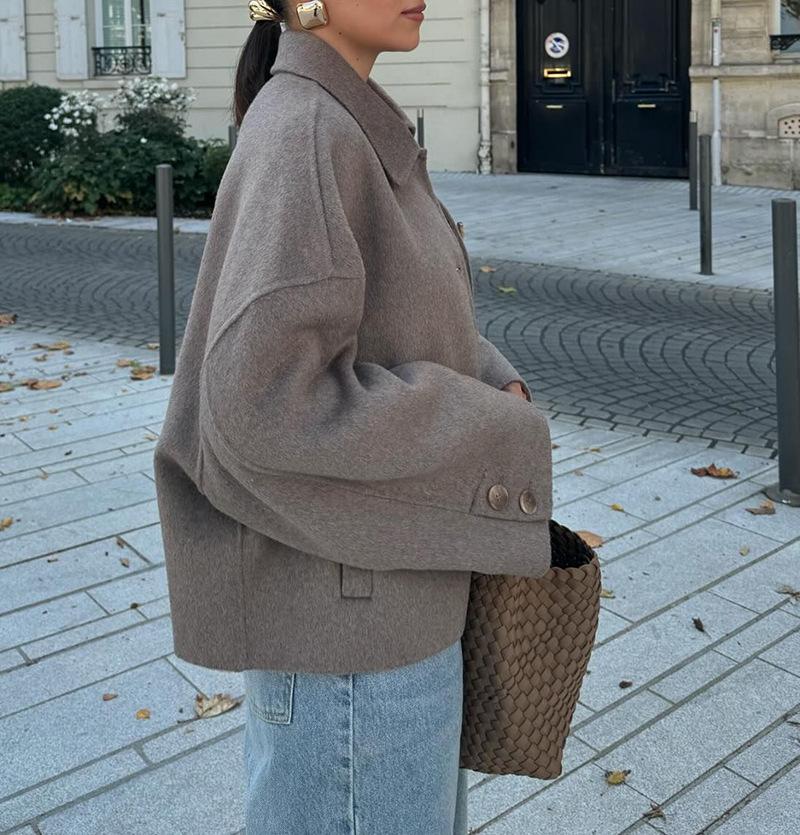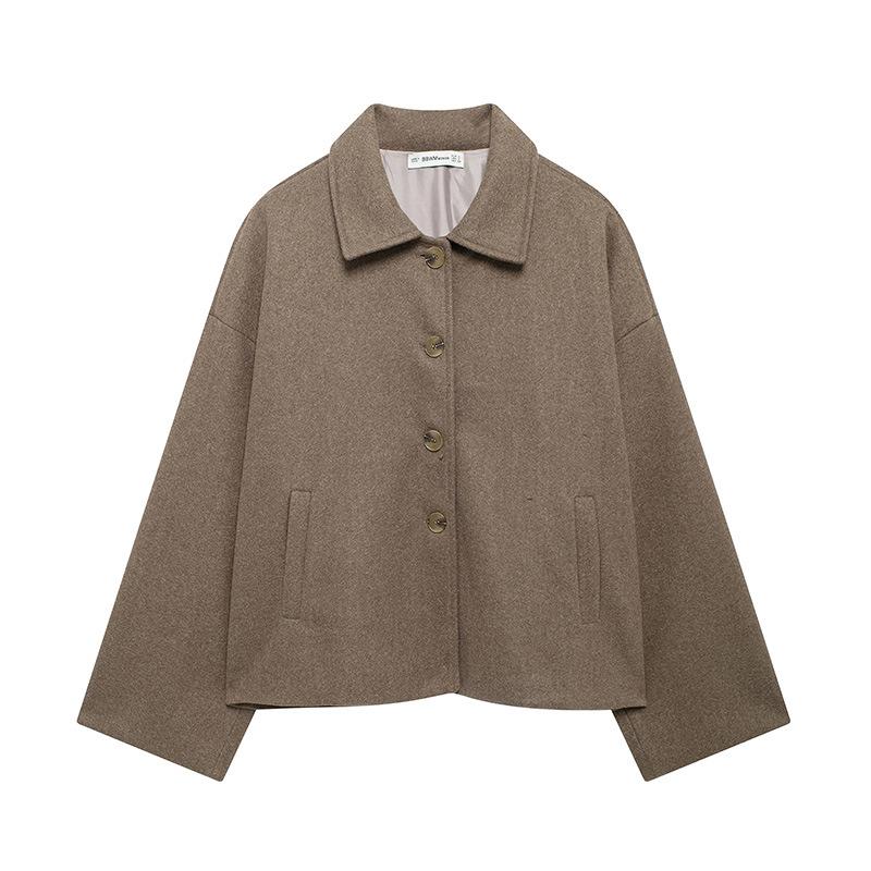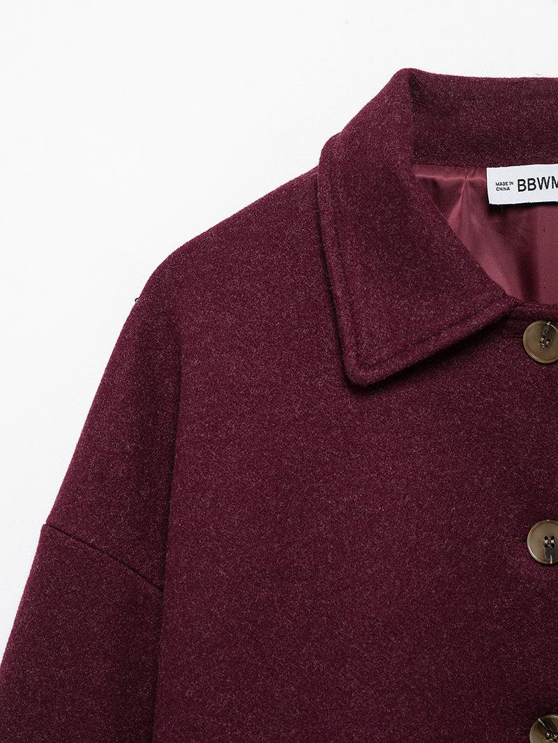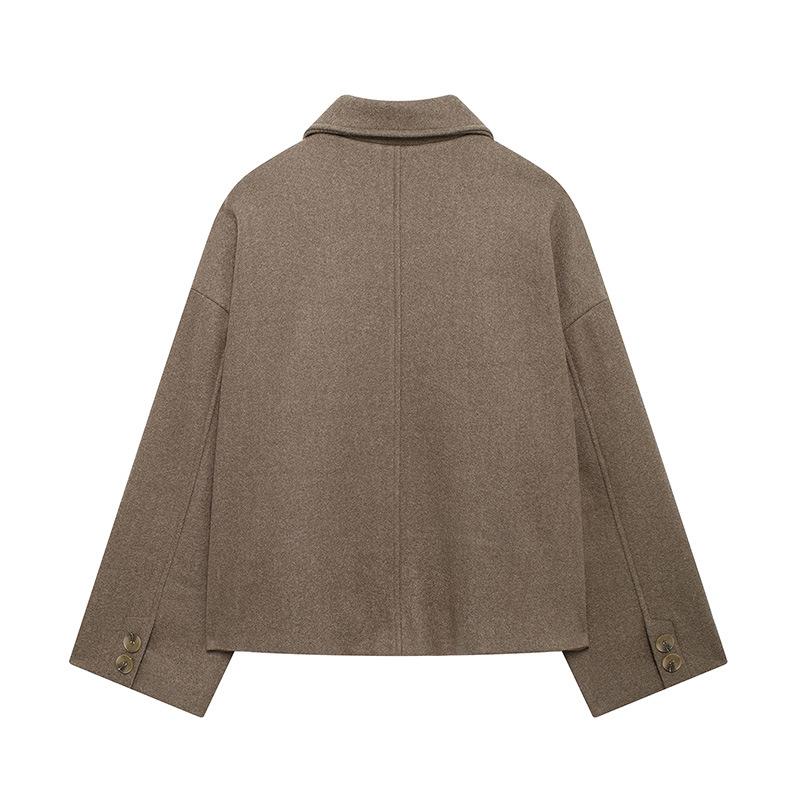 Abrigo Chaqueta Suelta de Color Sólido con Cuello Vuelto para Mujer Otoño e Invierno Tejido Suelto de Lana Sintética Estilo Europeo y Americano Transfronterizo Nuevo