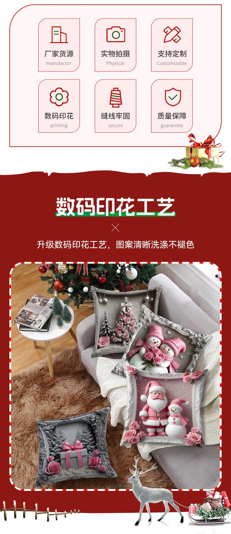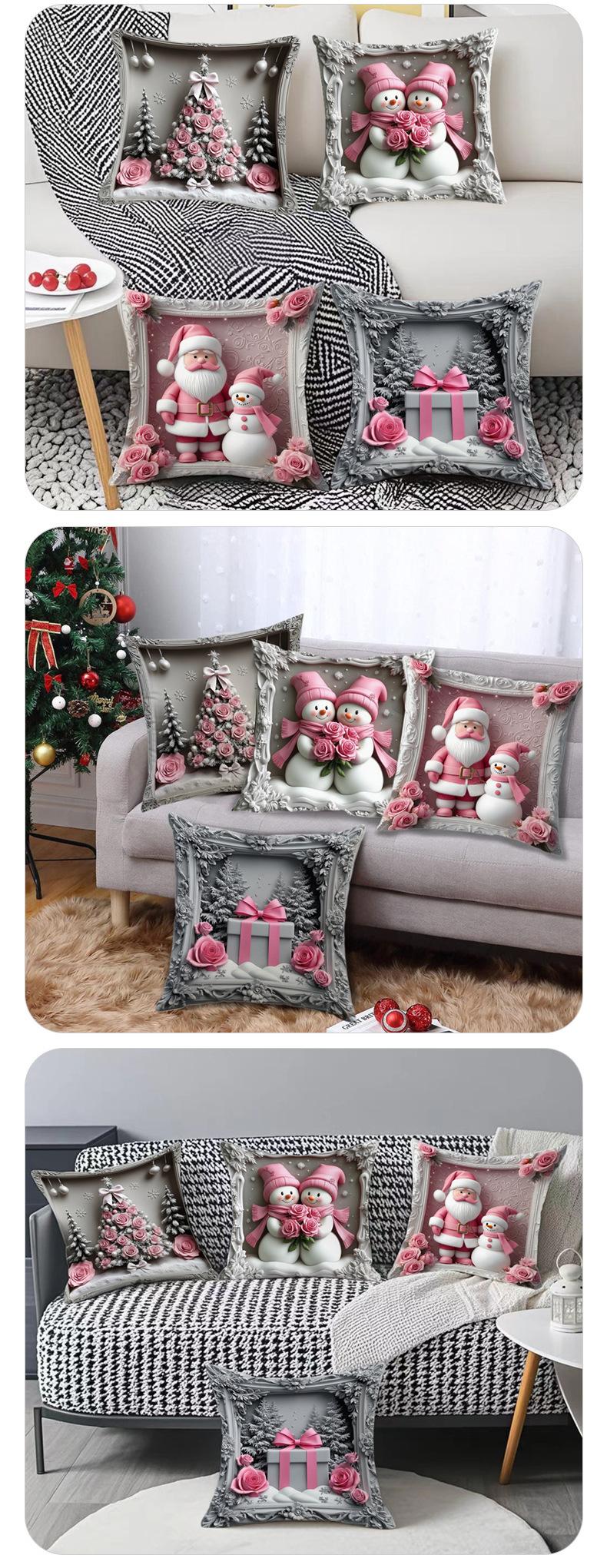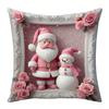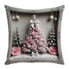 Nueva Funda de Almohada Rosa Navideña Decoración de Ambiente Estampado Lino Hogar Sofá Dormitorio Almohada de Cintura Cojín