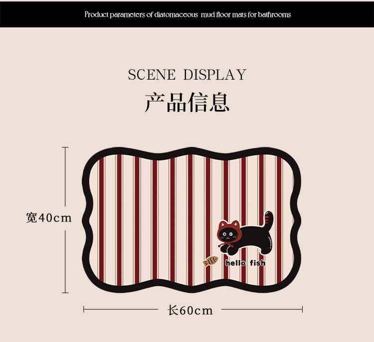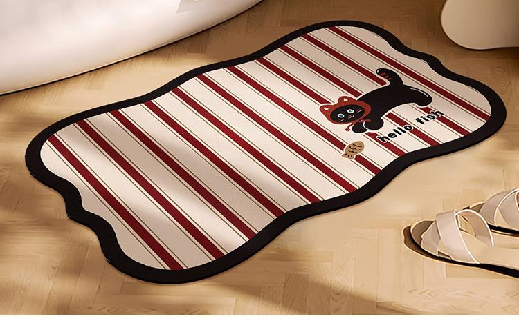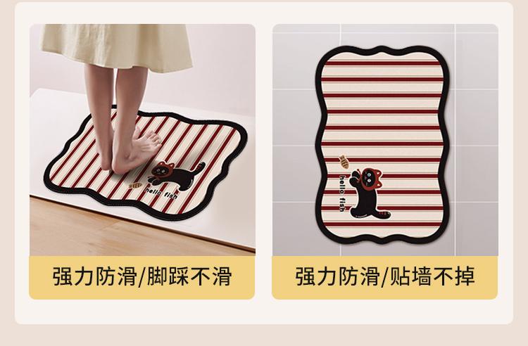 Alfombra de Piso para Baño, Alfombra Absorbente Antideslizante para Puerta de Baño, Alfombra Doméstica de Dibujos Animados de Barro Diatómico de Secado Rápido, Alfombra para Baño
