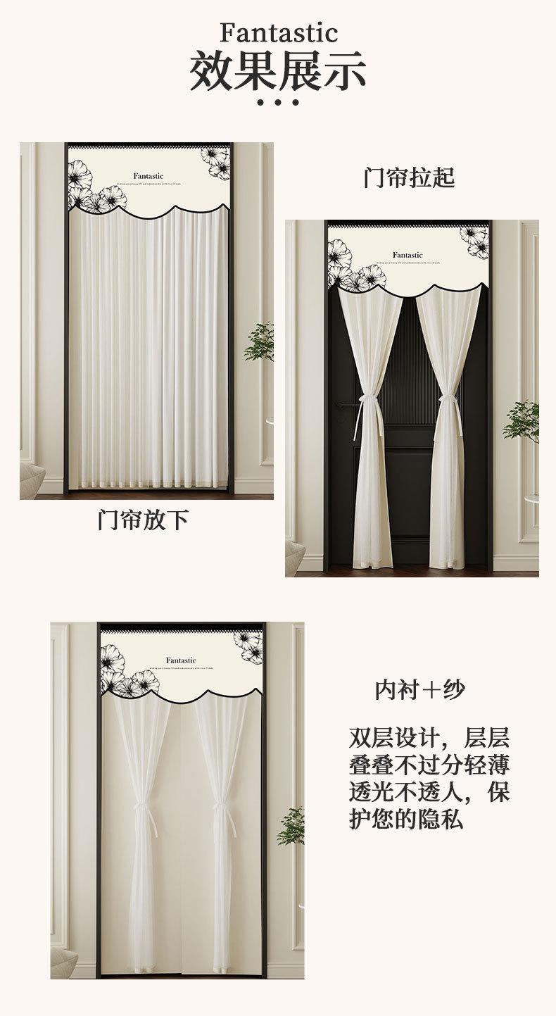 Cortina de Puerta Antimoscquitos sin Perforaciones, Cortina de Gasa de Tela para Dormitorio, Lujo Ligero, Partición de Encaje, Cortina Fengshui, Doble Capa, Privacidad para el Hogar, Media Cortina