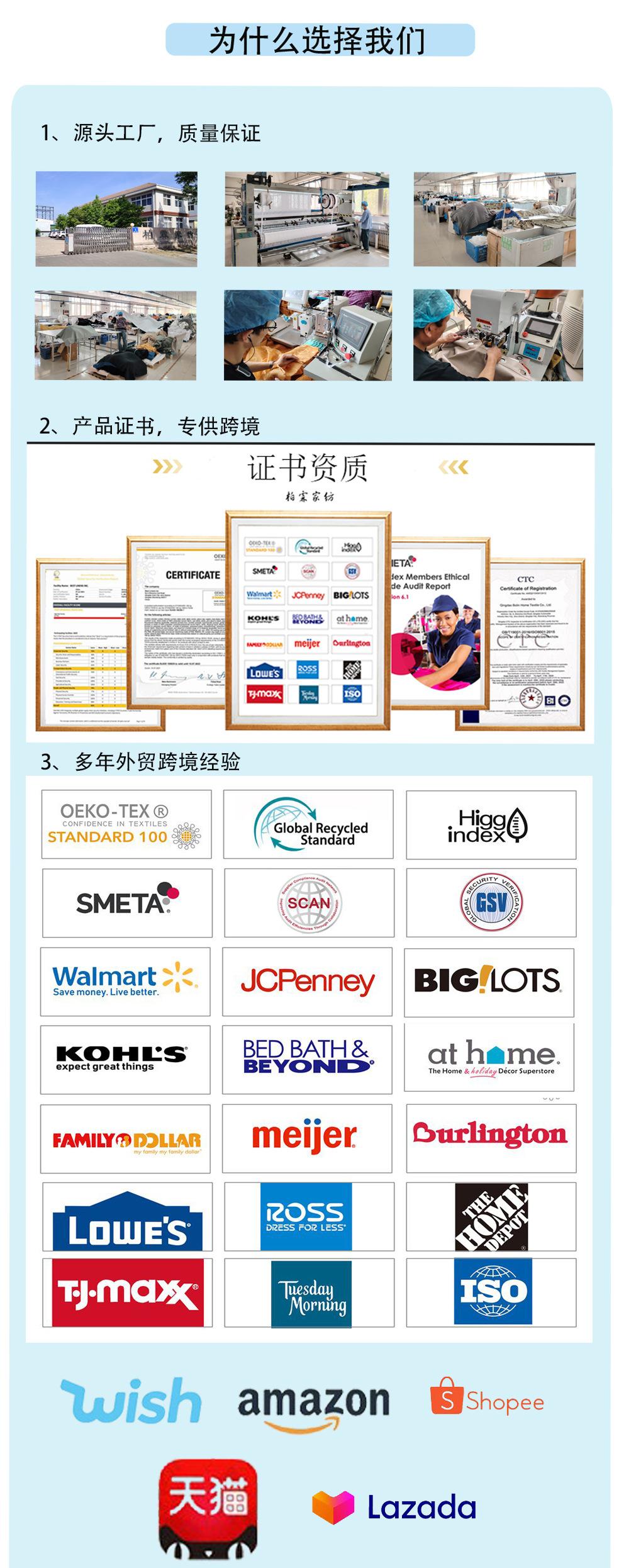 Qingdao Bailin Home Textiles Co., Ltd., está ubicada en la hermosa ciudad costera de Qingdao, China, en la Nueva Ciudad de la Industria Automotriz de Qingdao, Distrito de Jimo, Qingdao. La fábrica se estableció en 2012 y se centra principalmente en la producción de textiles para el hogar como cortinas, cortinas de ducha, cortinas de cocina, manteles y cojines.