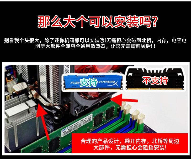 Tipo de Presión Descendente 4 Tubo de Cobre Enfriador de CPU 1700 Computadora de Escritorio Amd1151 Caja Pequeña Ventilador de Luz Cambiante de Color de CPU