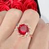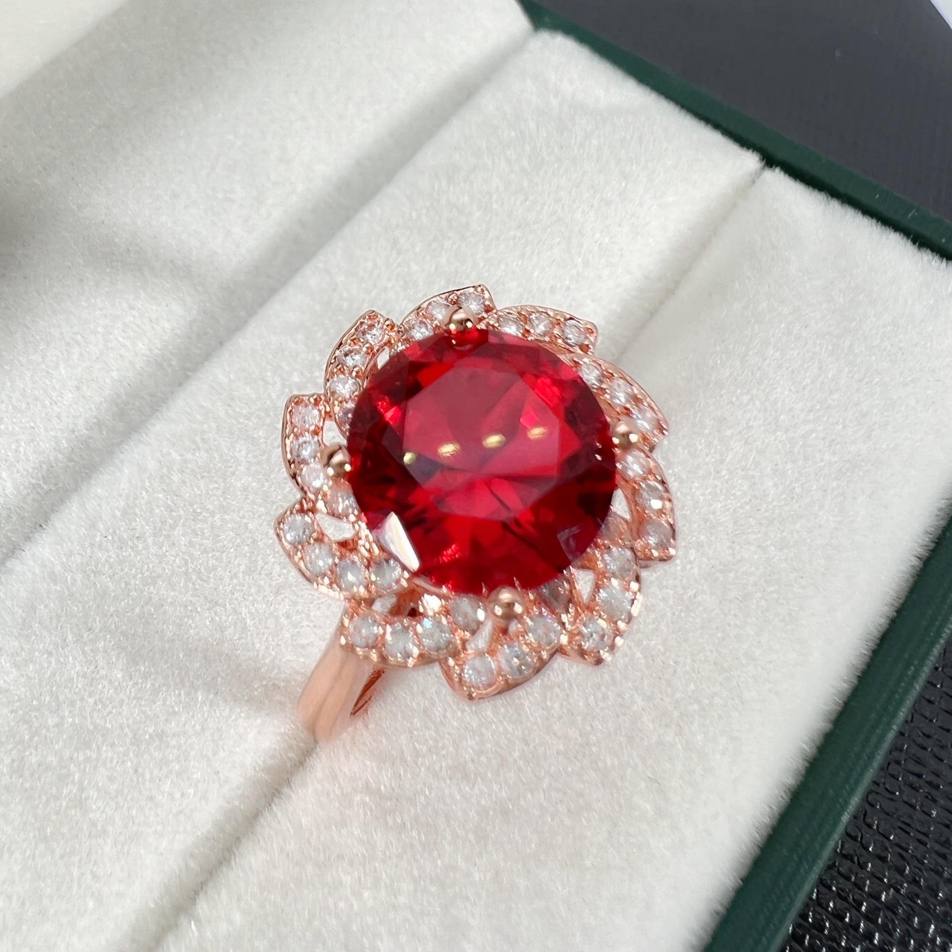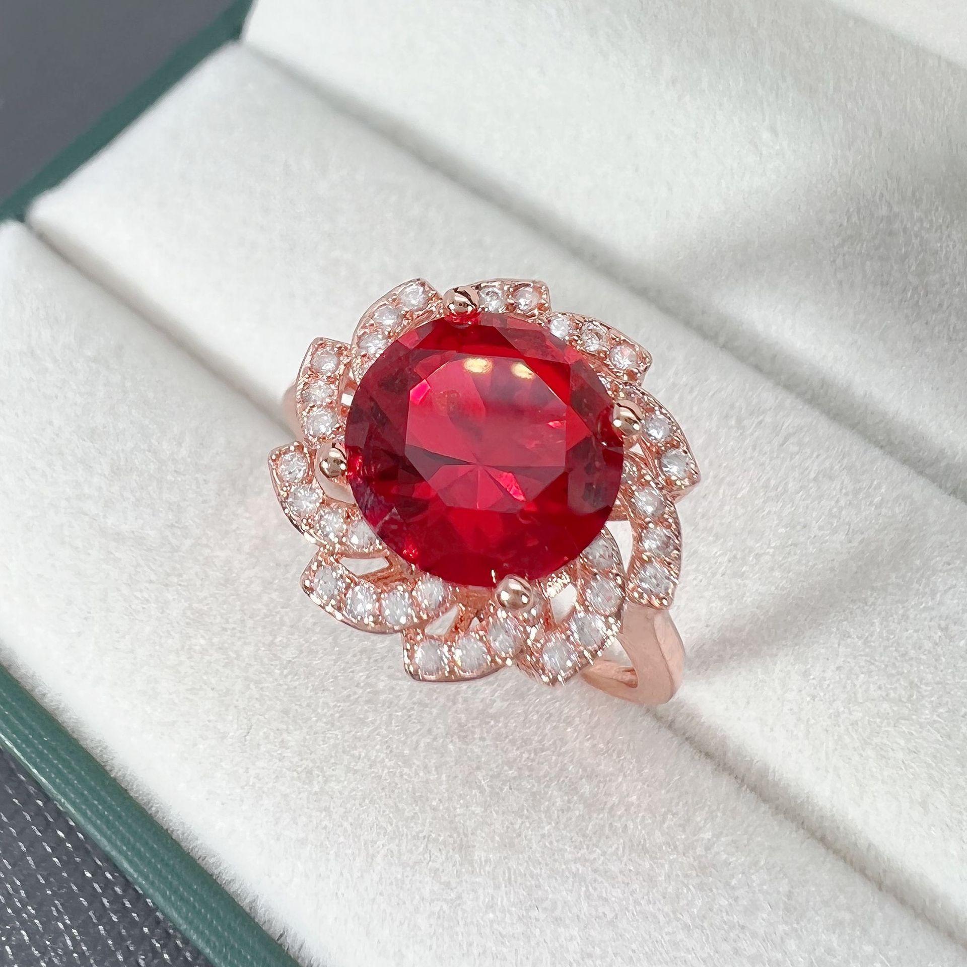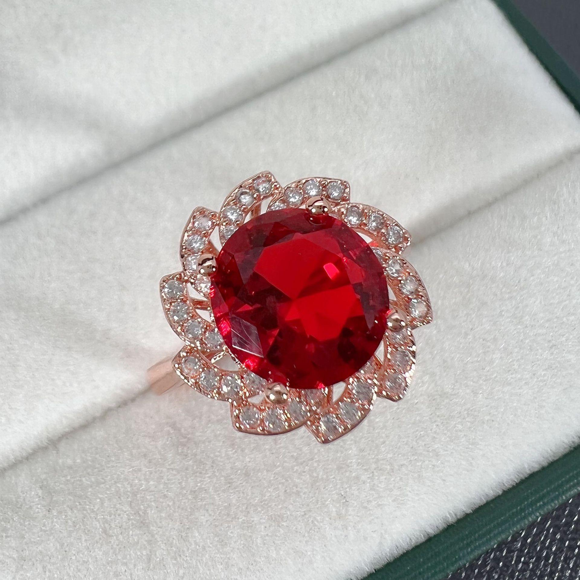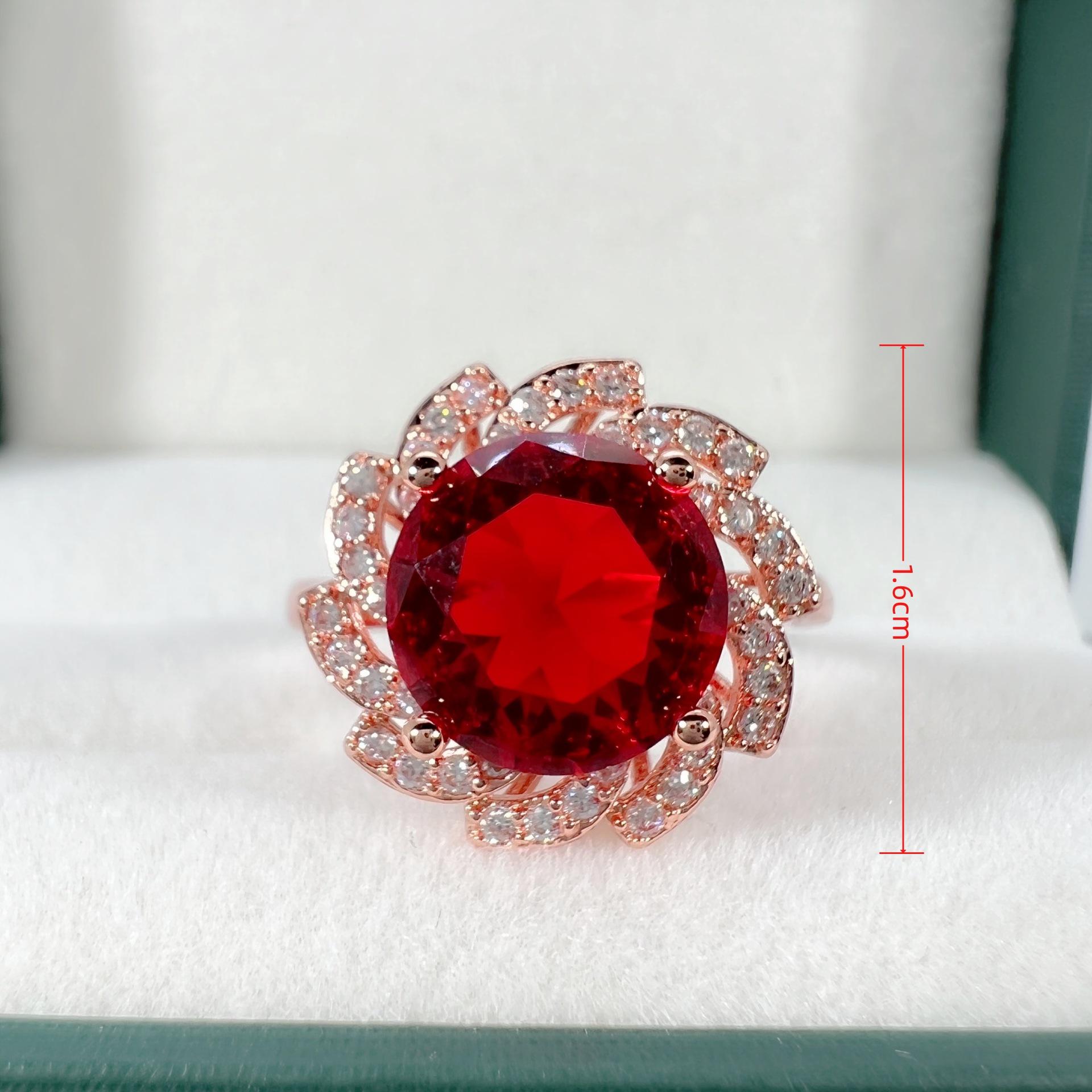 Anillo de rubí con flor giratoria de transmisión en vivo de TikTok Anillo de diamantes redondos abiertos de girasol Anillo de diamantes rojos Anillo de diamantes de tesoro colorido
