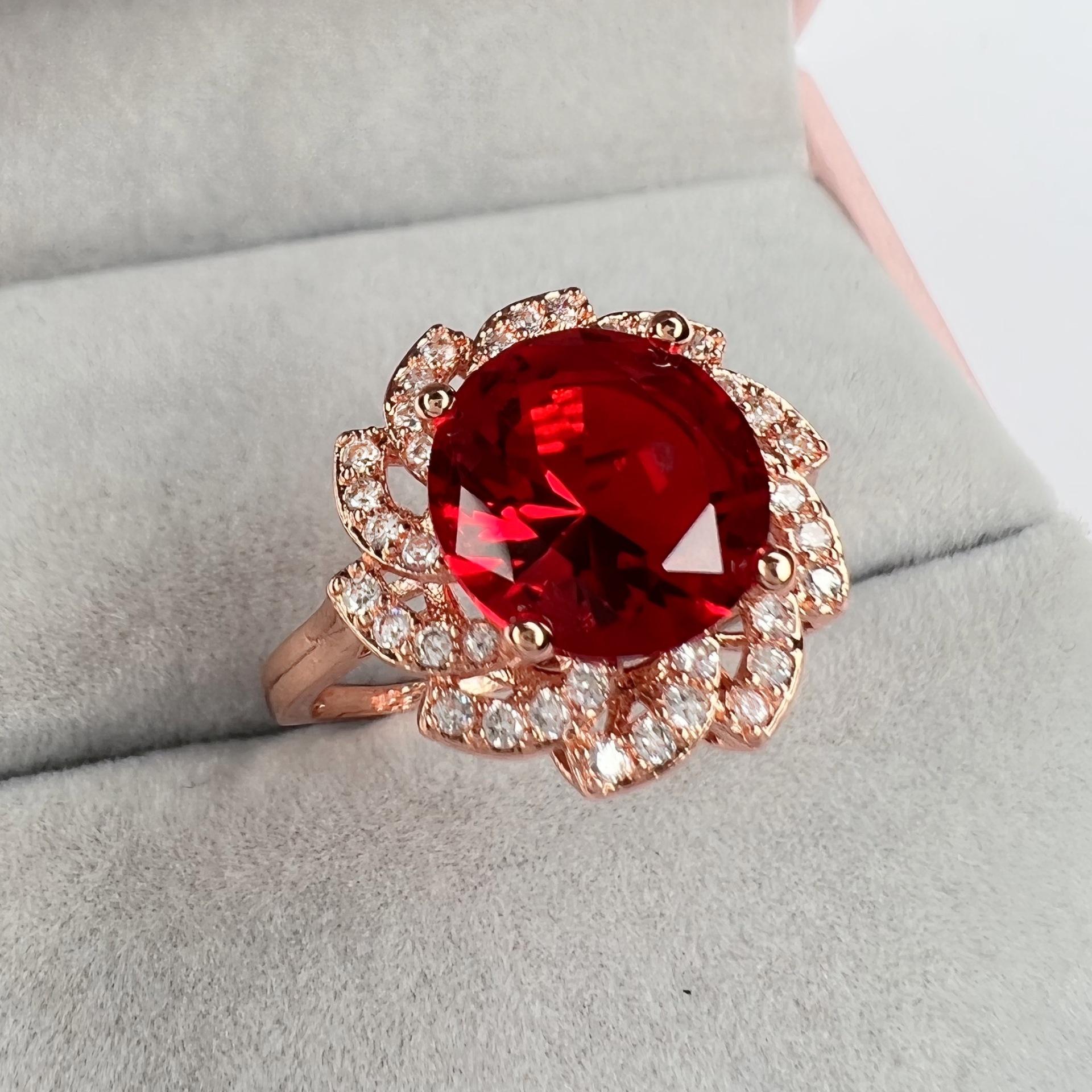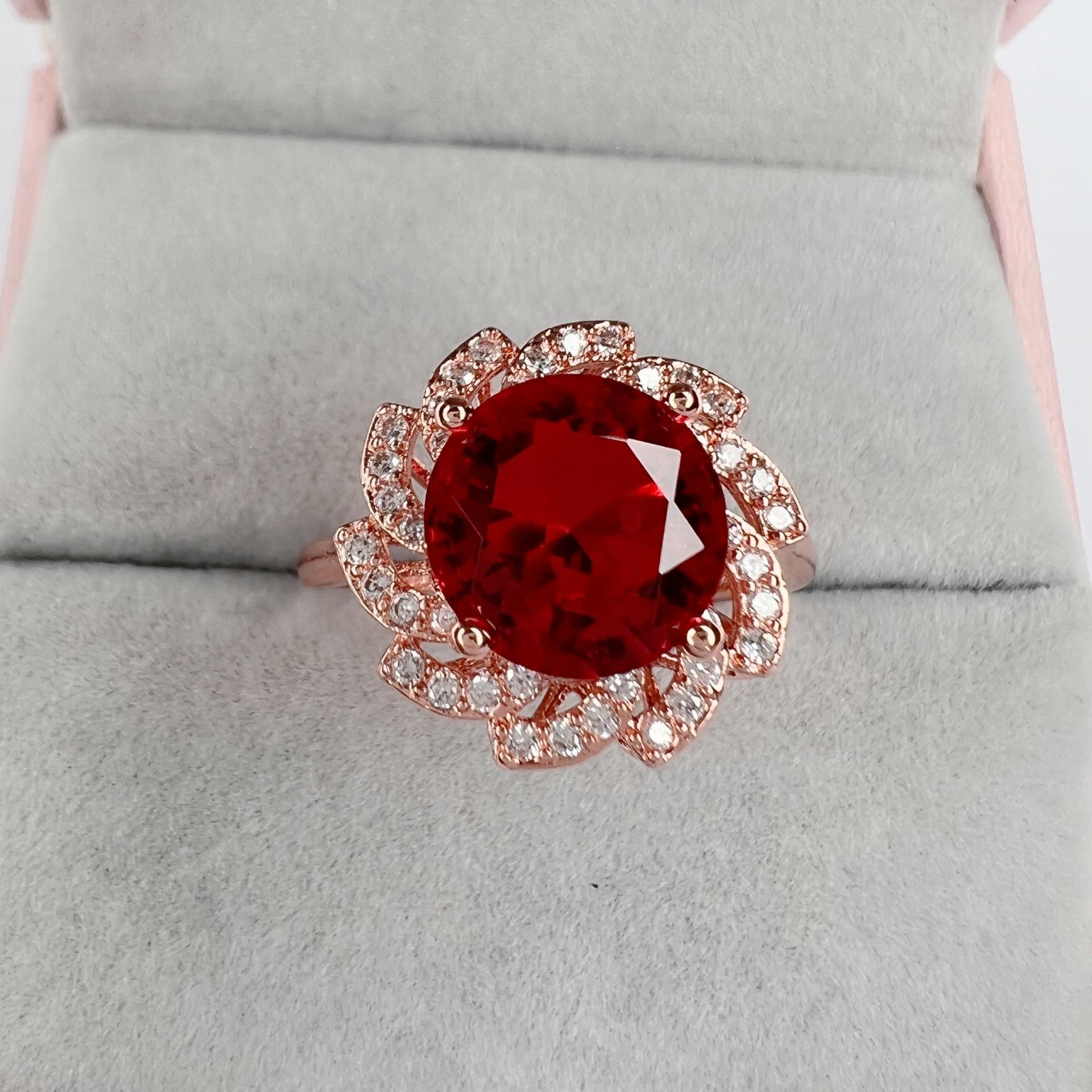Compra Anillo de rubí con flor giratoria de transmisión en vivo de TikTok Anillo de diamantes redondos abiertos de girasol Anillo de diamantes rojos Anillo de diamantes de tesoro colorido al por mayor en Joom.pro