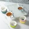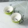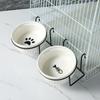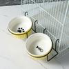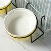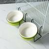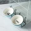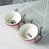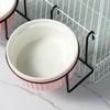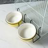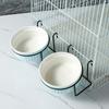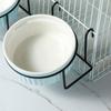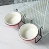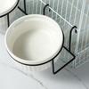 Gancho Lavabo Portátil Jaula Colgante Agua Potable Columna Cervical Mascota Cerámica Marco de Hierro Gato Suministros para Mascotas Tazón Doble Tazón para Comida Perro
