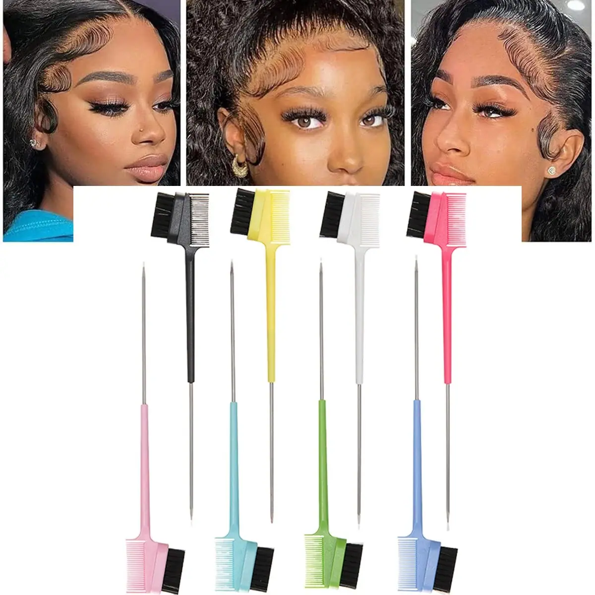 Diseño de Cabezal de Cepillo para Control de Bordes Cambiable Cepillo para Cejas Para Salón de Belleza Peine para el Cabello Cepillos Herramienta de Belleza Aguja de Acero Peine para Rizos