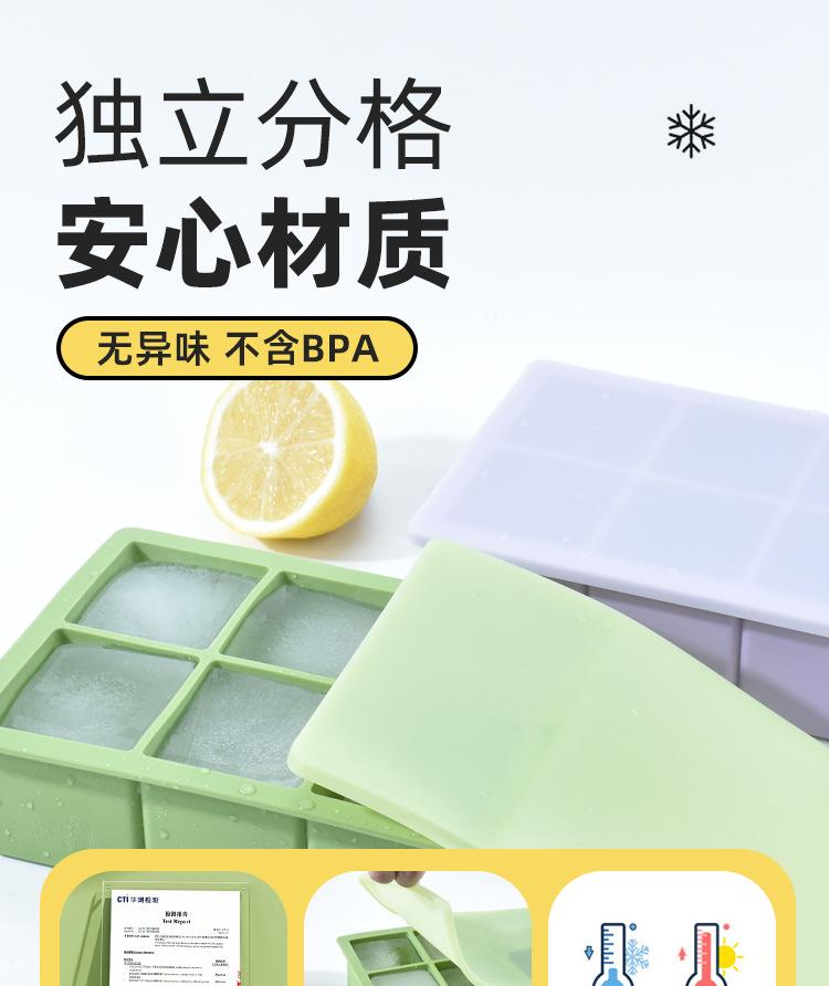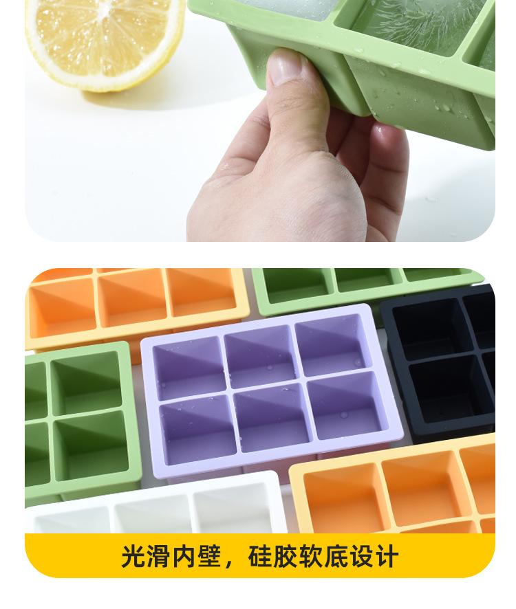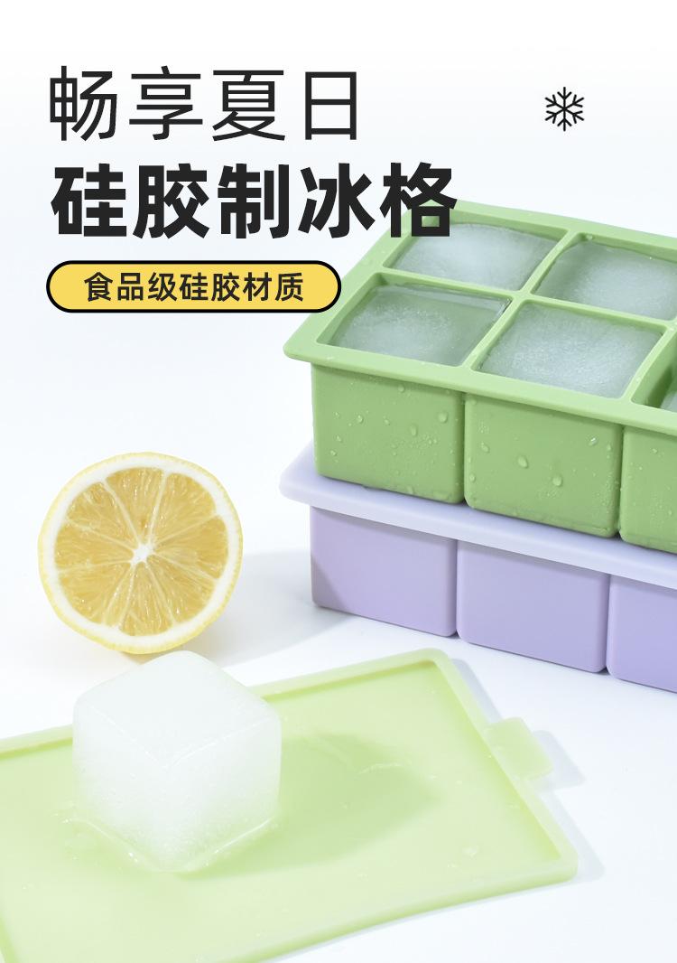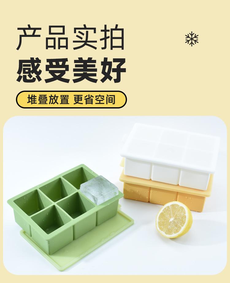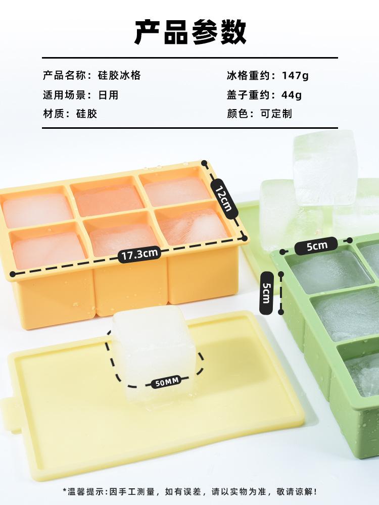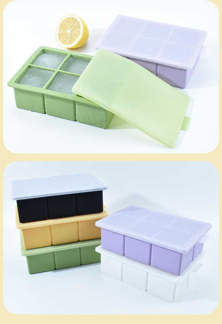 Nuevo molde de hielo DIY casero de 6 cavidades cuadradas grandes con tapa, silicona de grado alimenticio sin sabor, cubitos de hielo