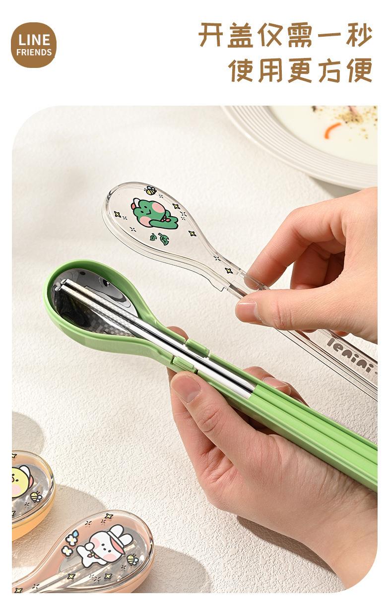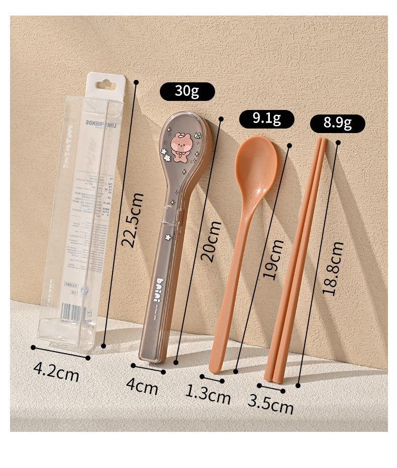 Brown bear [spoon + chopsticks] plastic set, Frog leo [spoon + chopsticks] plastic set, Coni rabbit [spoon + c...
