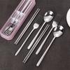 Juego de Tenedor, Cuchara y Palillos para Estudiantes Vajilla de Viaje Juego de Tres Piezas Palillos de Acero Inoxidable 304 Cuchara Juego de Vajilla Portátil