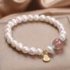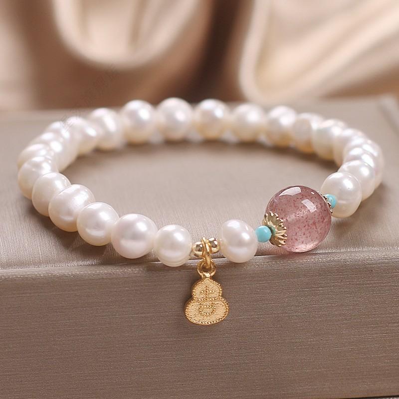 Pulsera de Perlas de Agua Dulce para Mujer Lujo Ligero Retro Calabaza de la Suerte Cuerda de Mano Cristal Fresa Diseño Nicho Regalo para Mejor Amiga