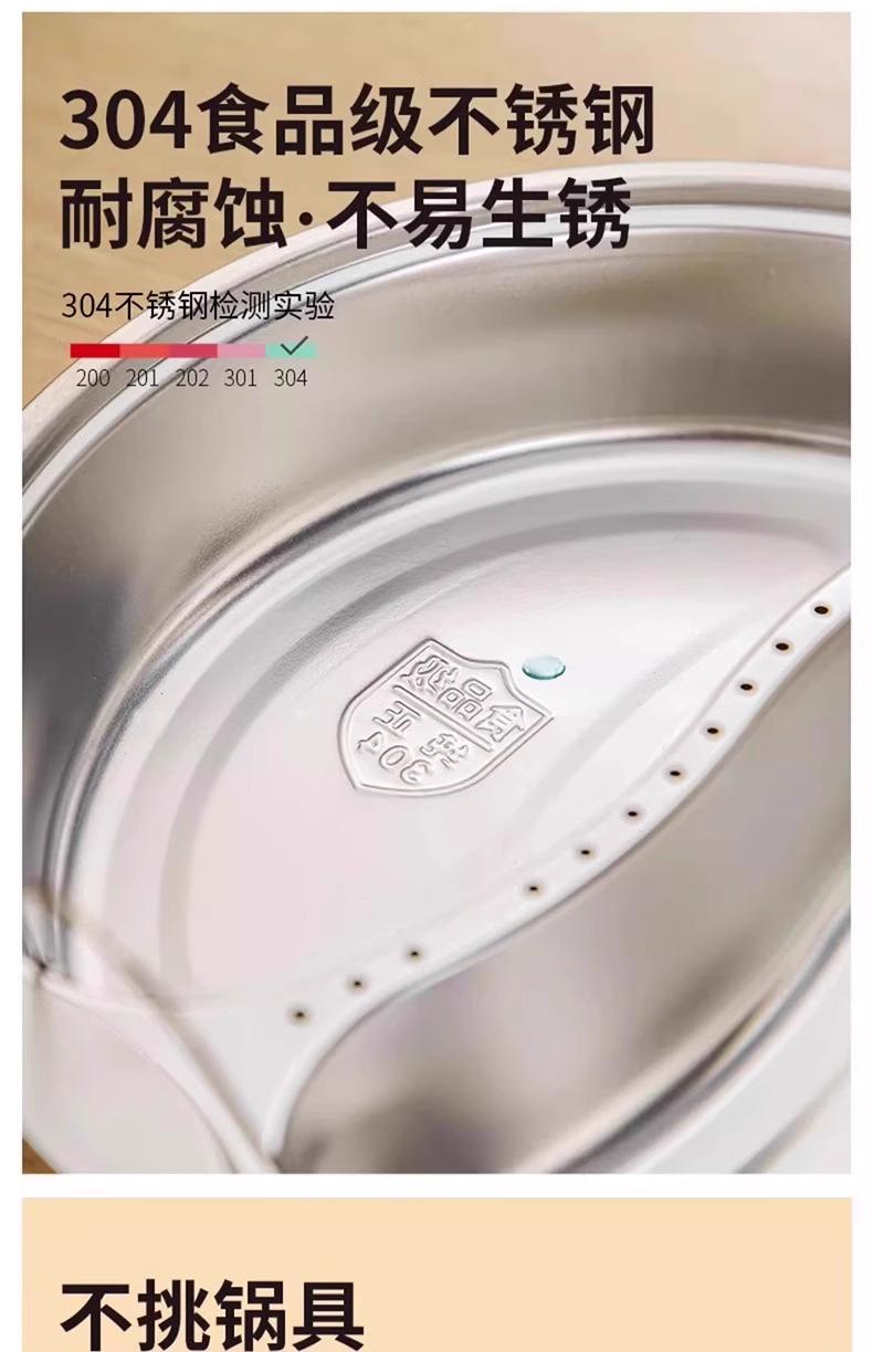 304 three-compartment steaming tray-19cm., 304 three-compartment steaming tray-22cm., 304 yuanyang steaming pl...