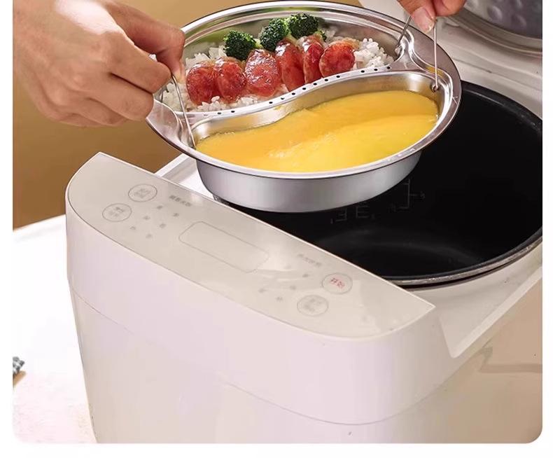 Acero Inoxidable 304 de Grado Alimenticio Bandeja Vaporera de Tres Compartimentos para Suplementos Alimenticios, Bolsa para Olla Arrocera, Rejilla Vaporera Impermeable, Bandeja Vaporera de Compartimentos para Bebé
