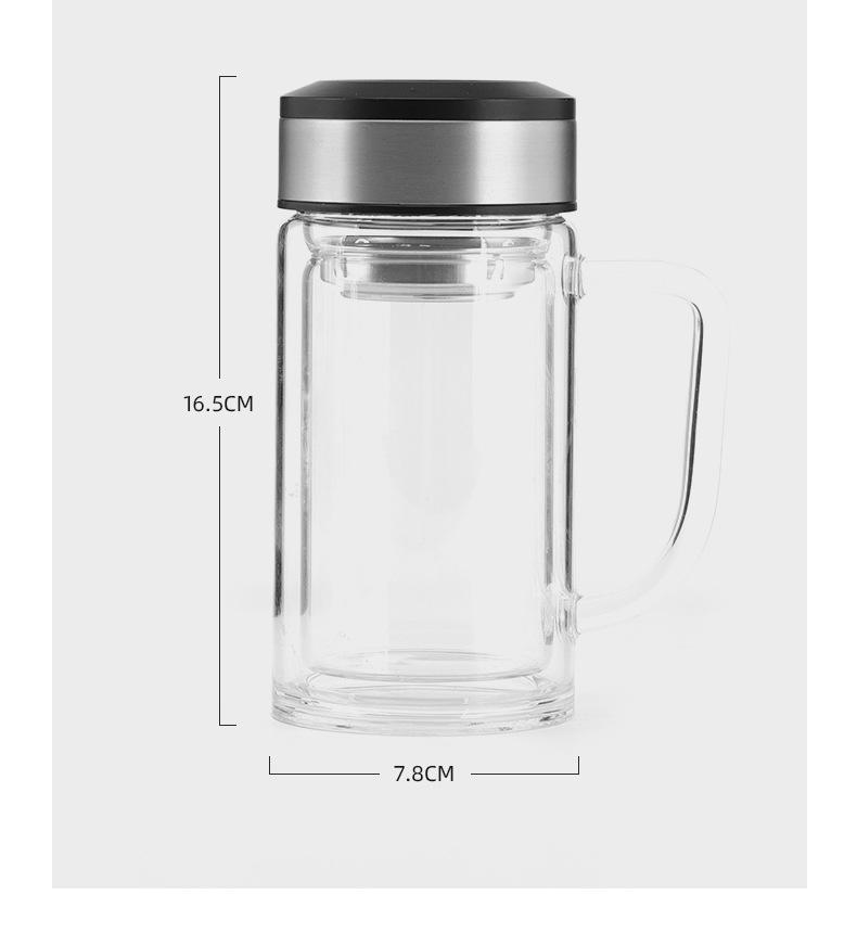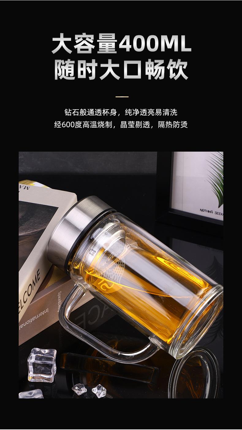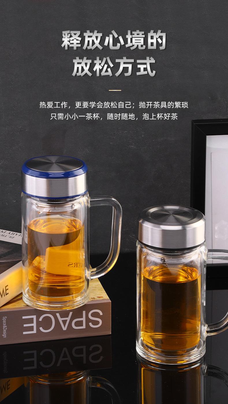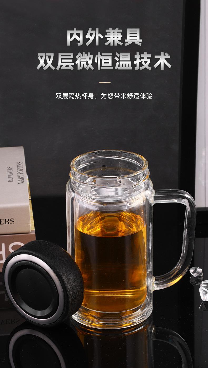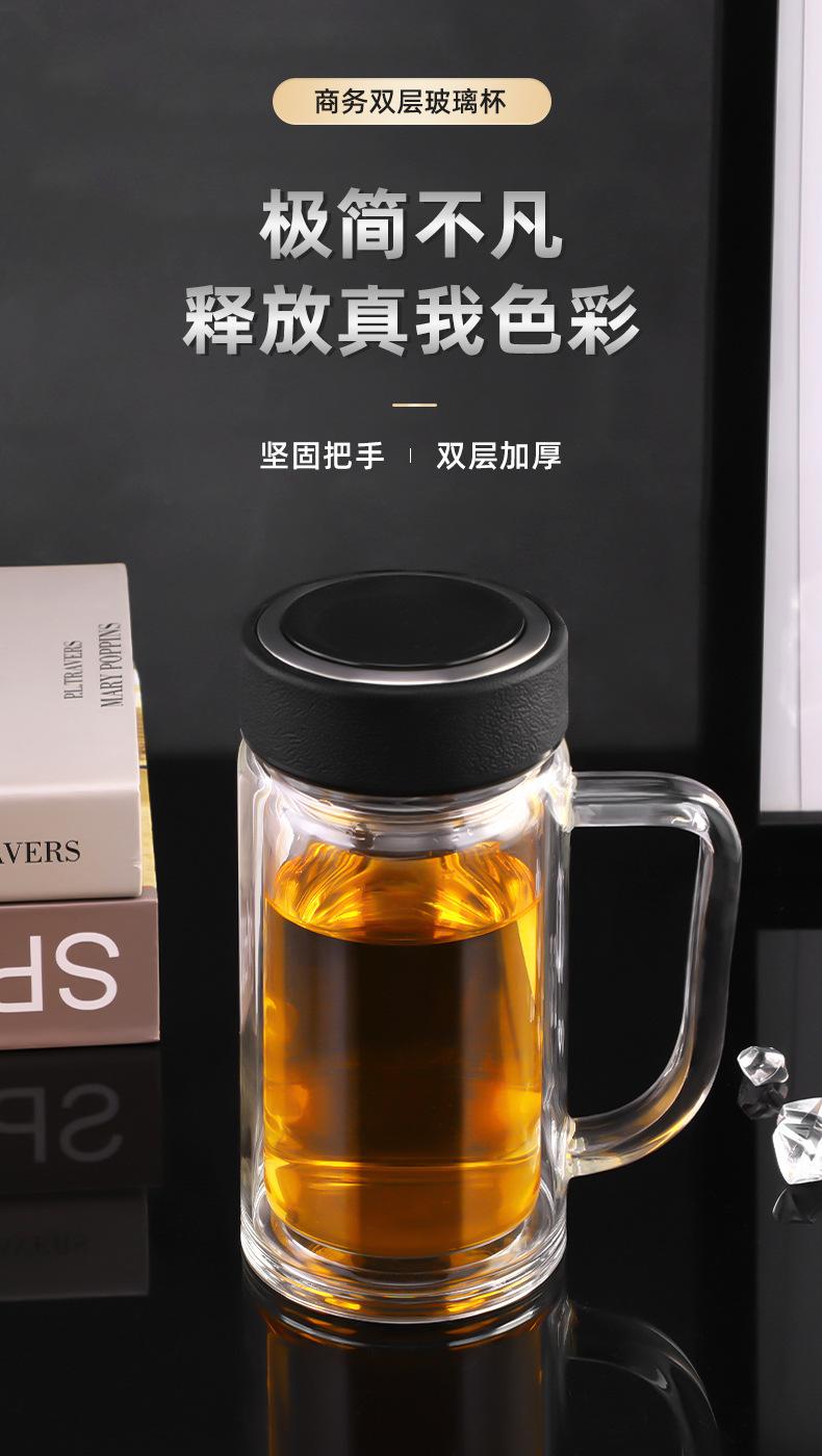 Nueva taza de agua para oficina de negocios de borosilicato alto resistente al calor con asa, impresión, taza de vidrio grueso de doble capa, venta al por mayor, taza de regalo
