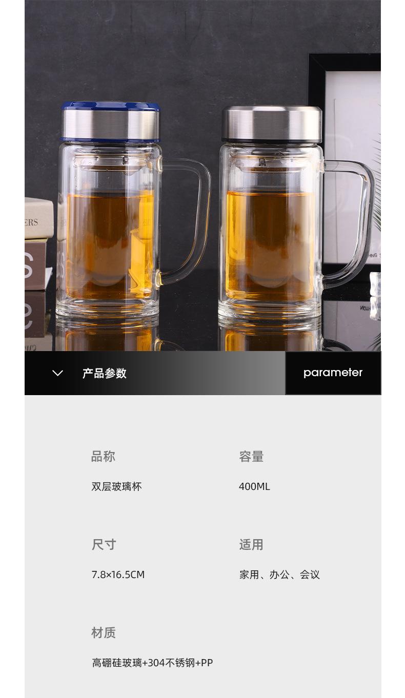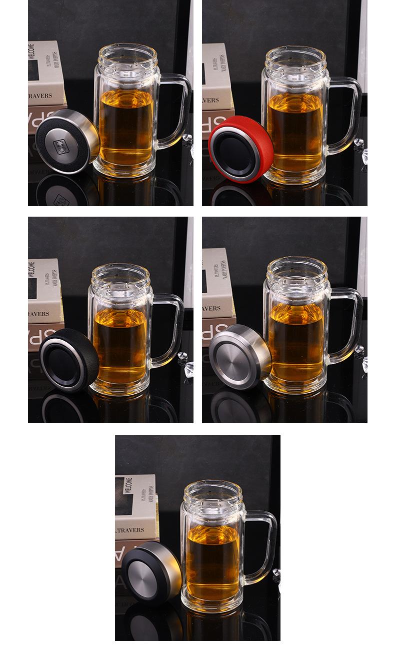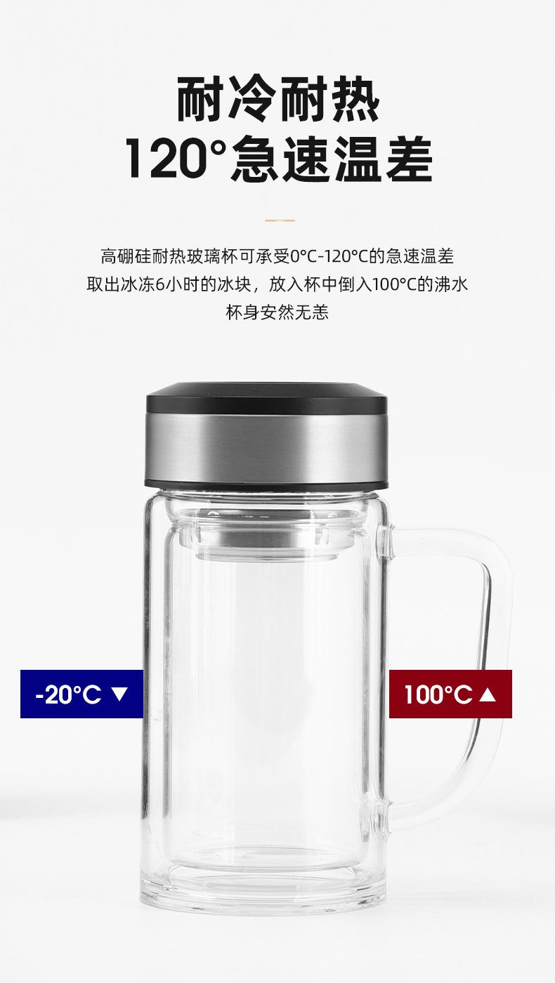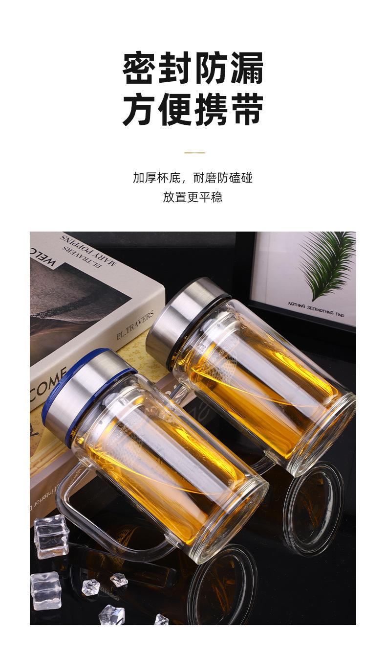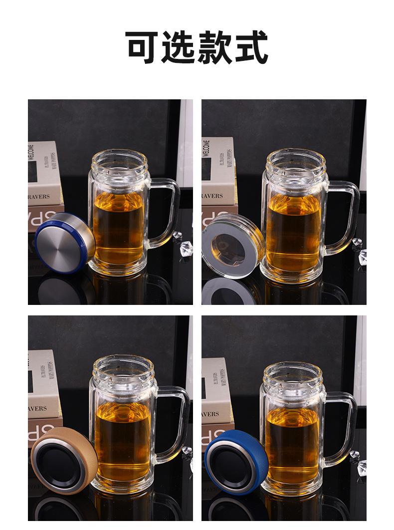 Nueva taza de agua para oficina de negocios de borosilicato alto resistente al calor con asa, impresión, taza de vidrio grueso de doble capa, venta al por mayor, taza de regalo