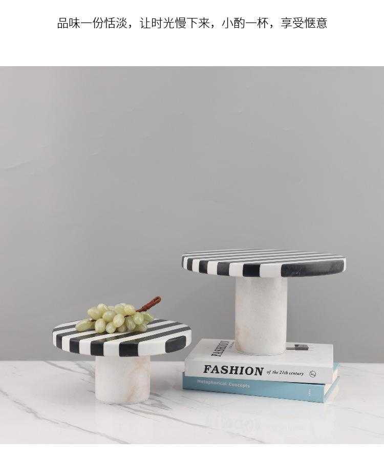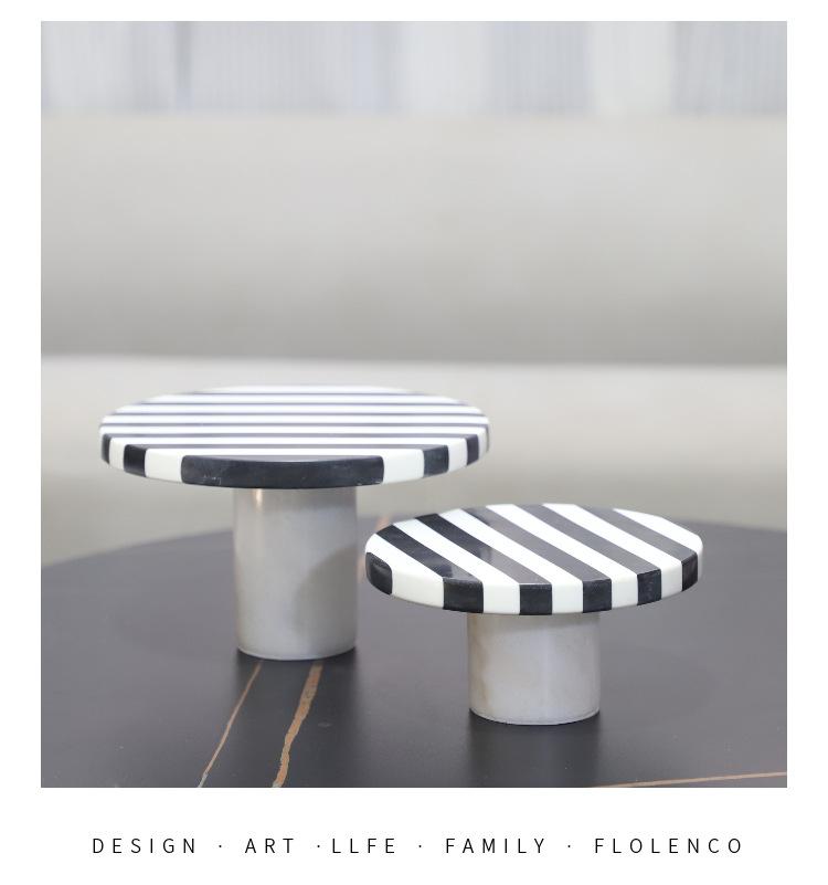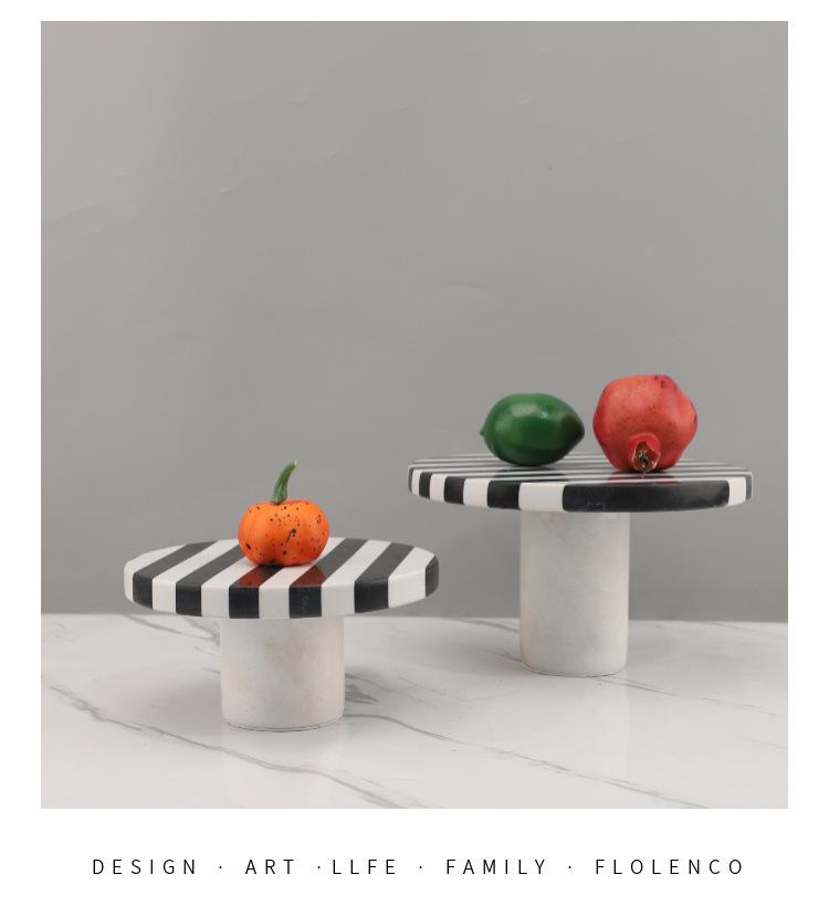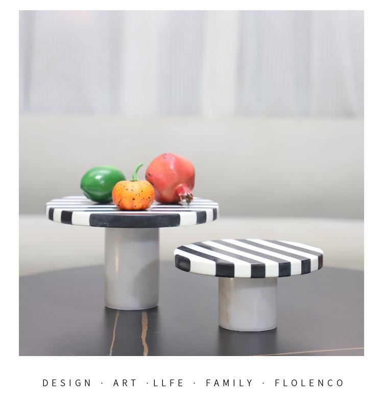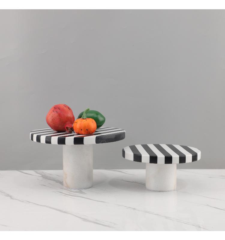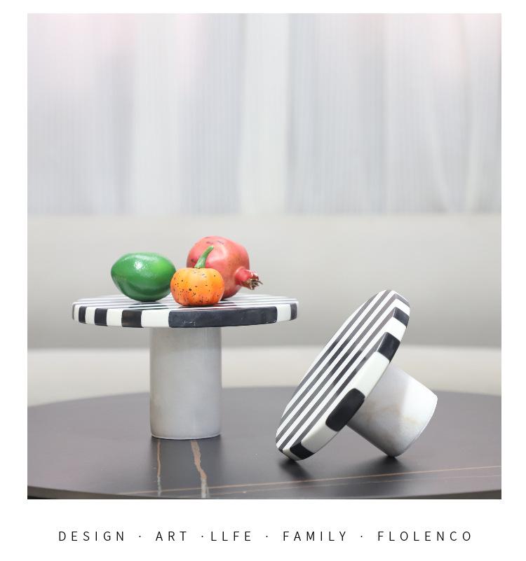Lujo Accesible Europeo Rayas Blanco y Negro Mármol Alto Redondo Plato de Frutas Bandeja Decorativa Mesa de Centro Hotel Decoración para el Hogar