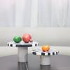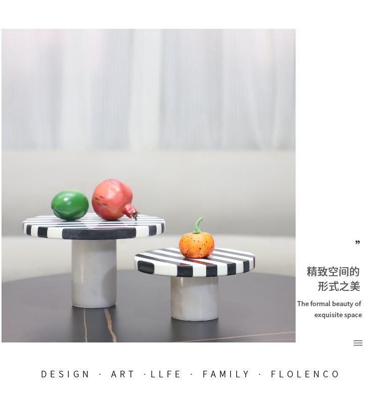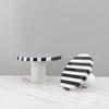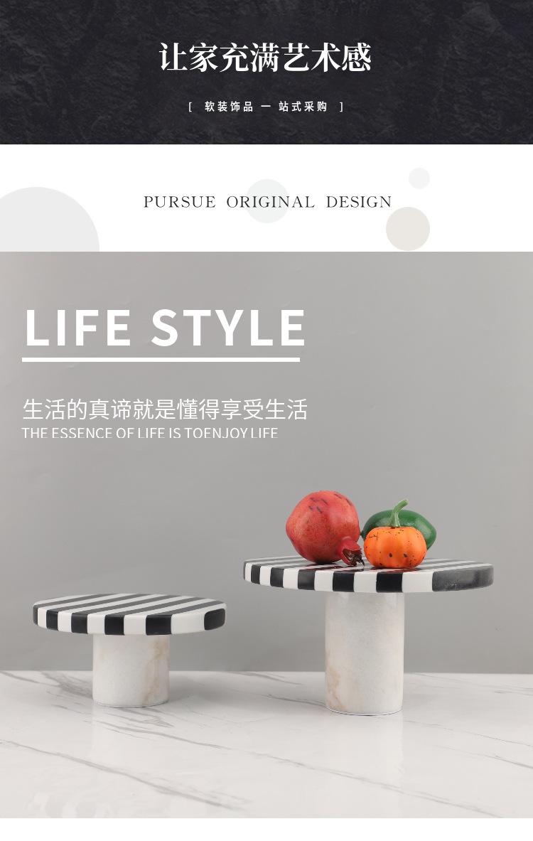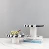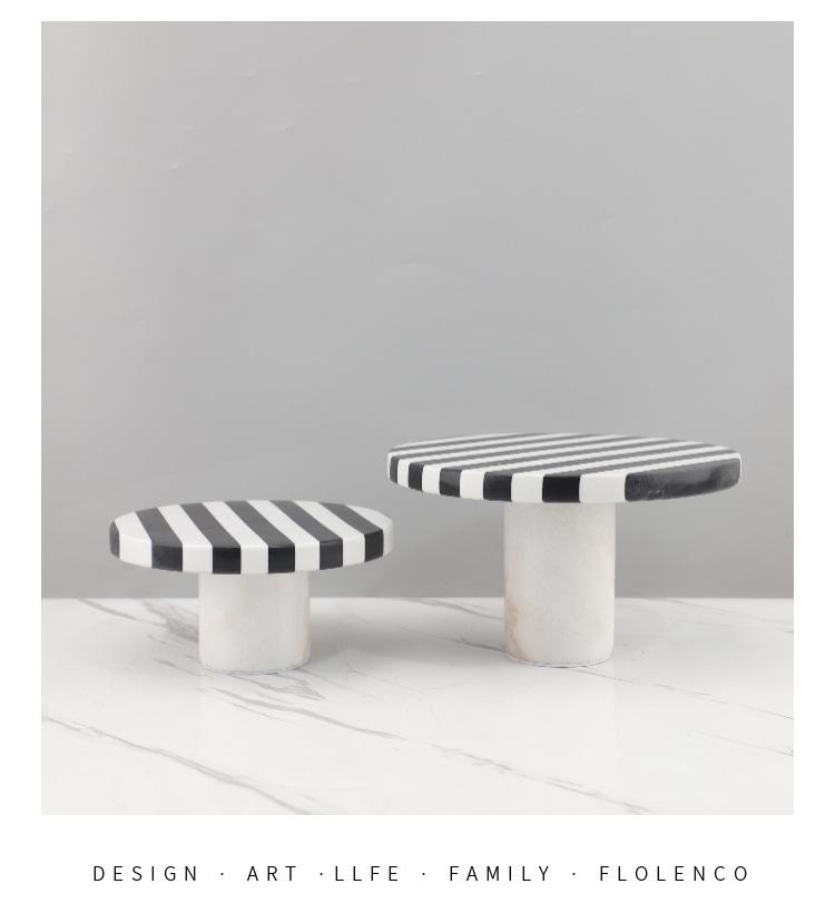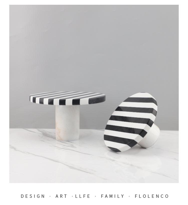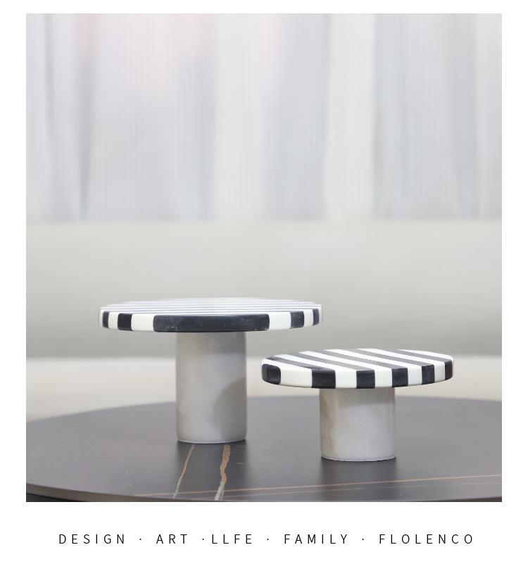 Lujo Accesible Europeo Rayas Blanco y Negro Mármol Alto Redondo Plato de Frutas Bandeja Decorativa Mesa de Centro Hotel Decoración para el Hogar