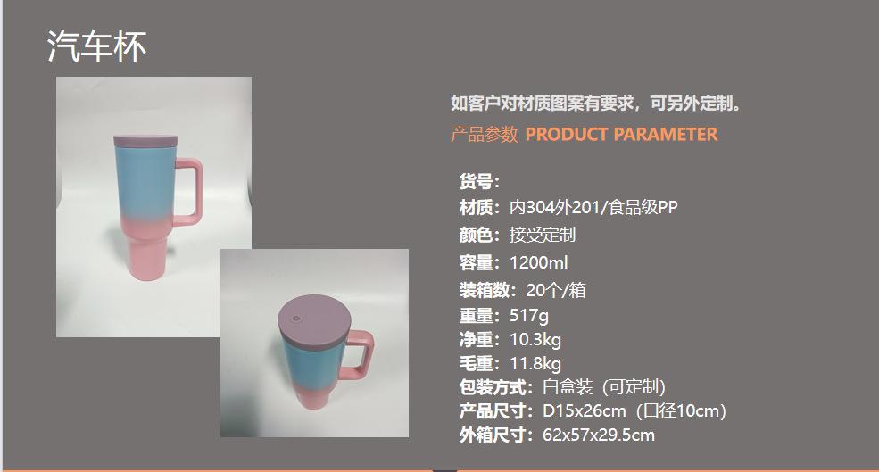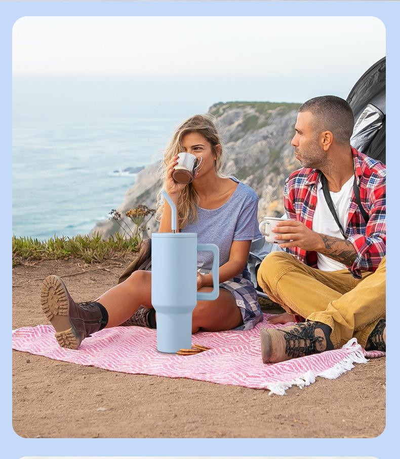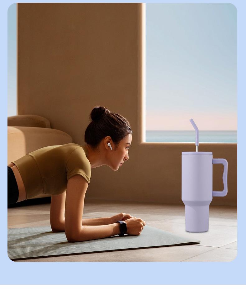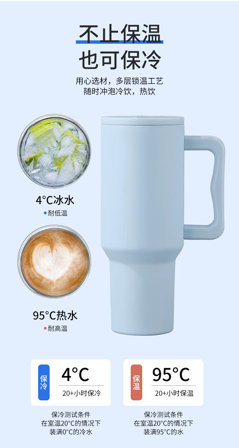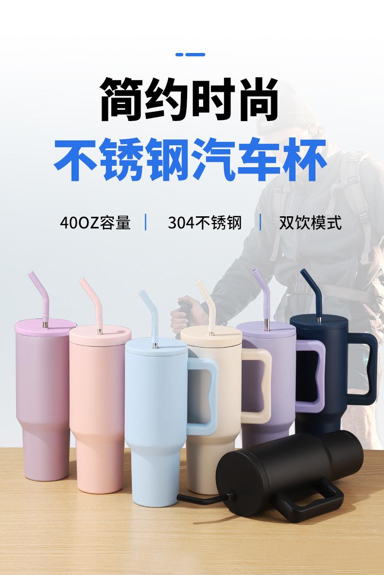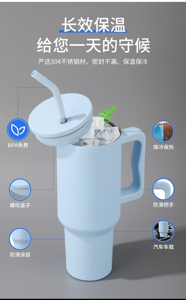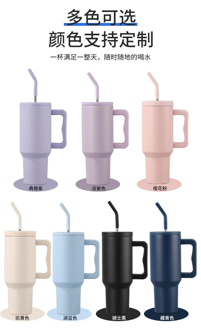 Vaso de Hielo Personalizado Transfronterizo de 40 oz con Asa Acero Inoxidable 304 Aislamiento Térmico y Aislamiento Frío Taza de Café Taza de Cerveza con Pajita