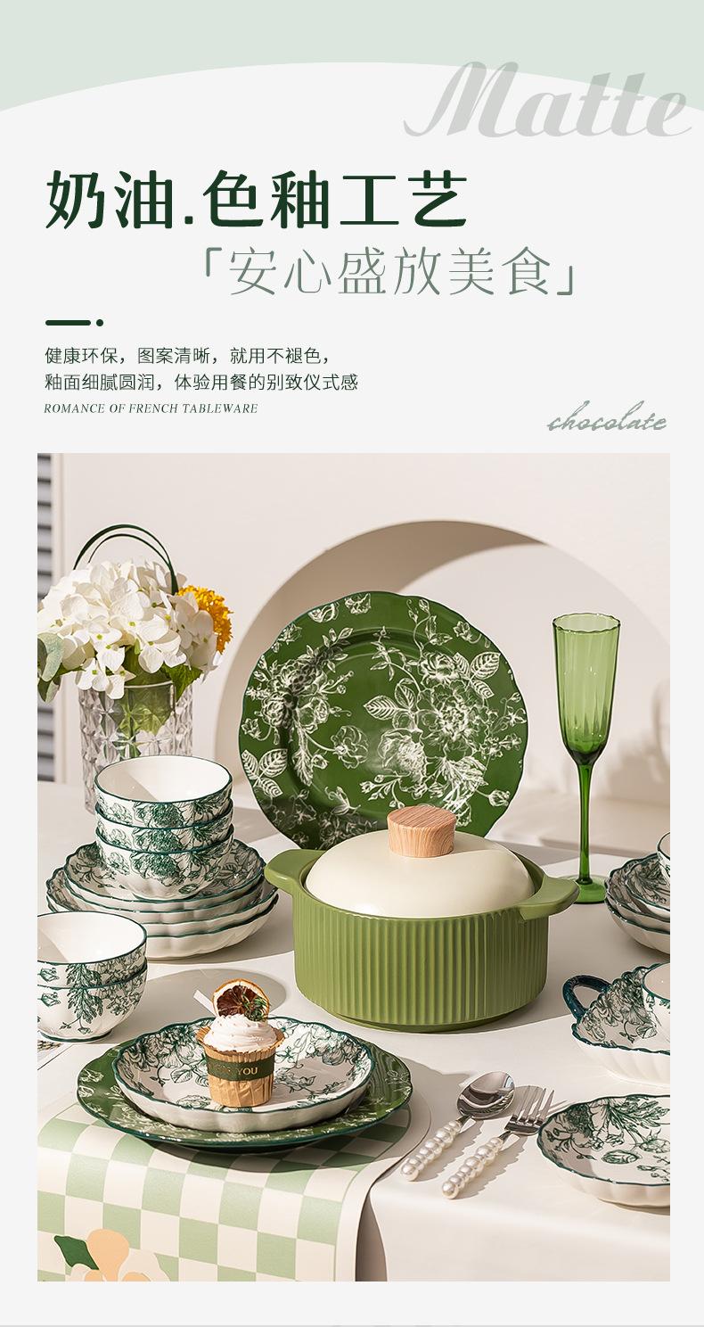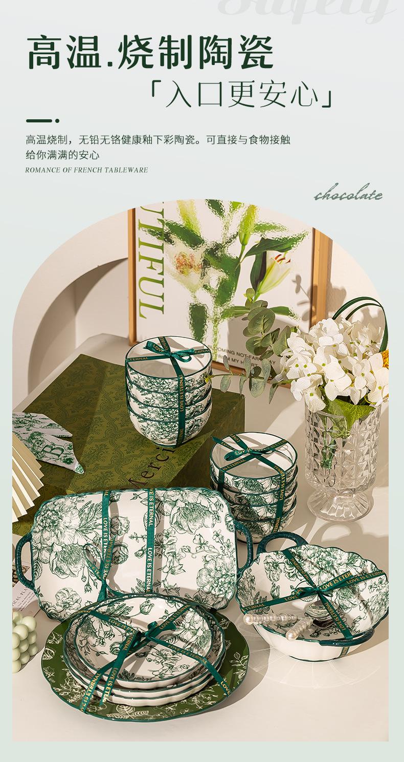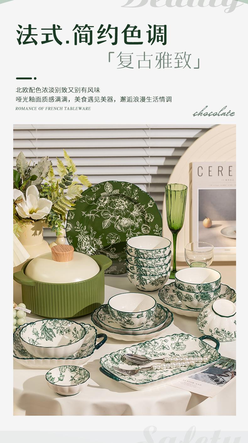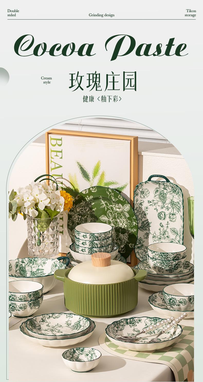 Vajilla de Cerámica de Alta Gama y Juego de Platos Combinación de Plato y Tazón para el Hogar Pequeño Fresco Verano Nuevo Color Bajo Esmalte Juego Completo