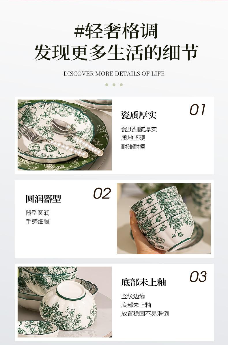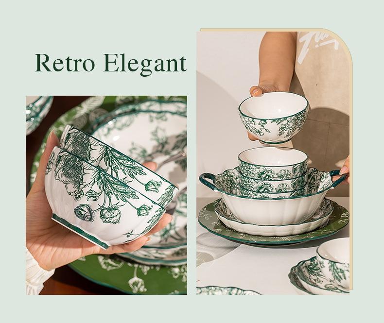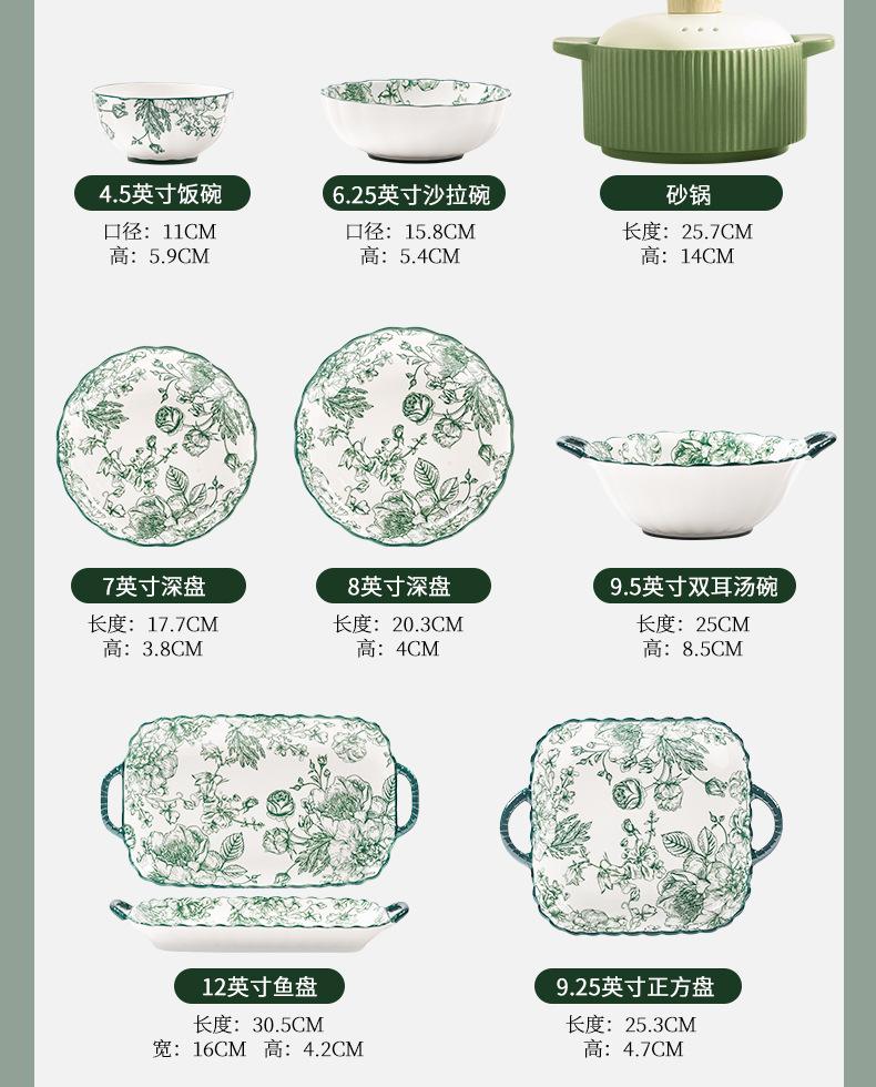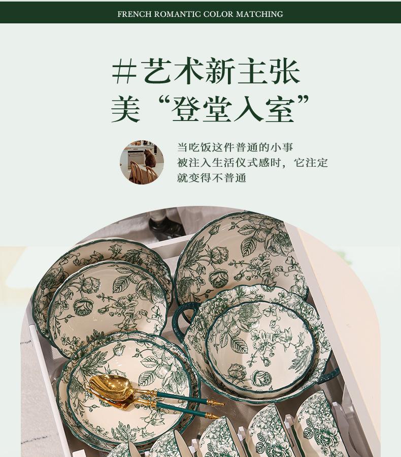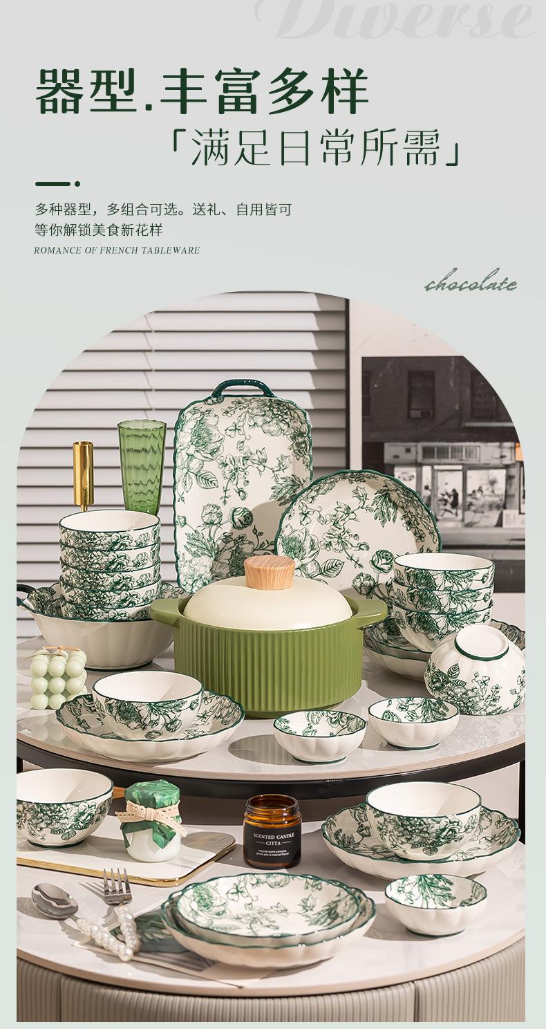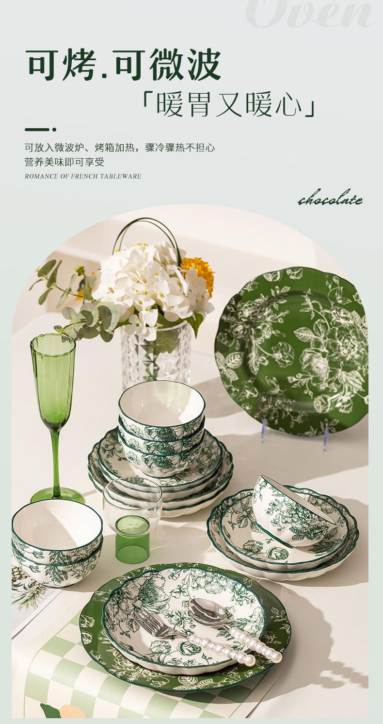 Vajilla de Cerámica de Alta Gama y Juego de Platos Combinación de Plato y Tazón para el Hogar Pequeño Fresco Verano Nuevo Color Bajo Esmalte Juego Completo