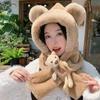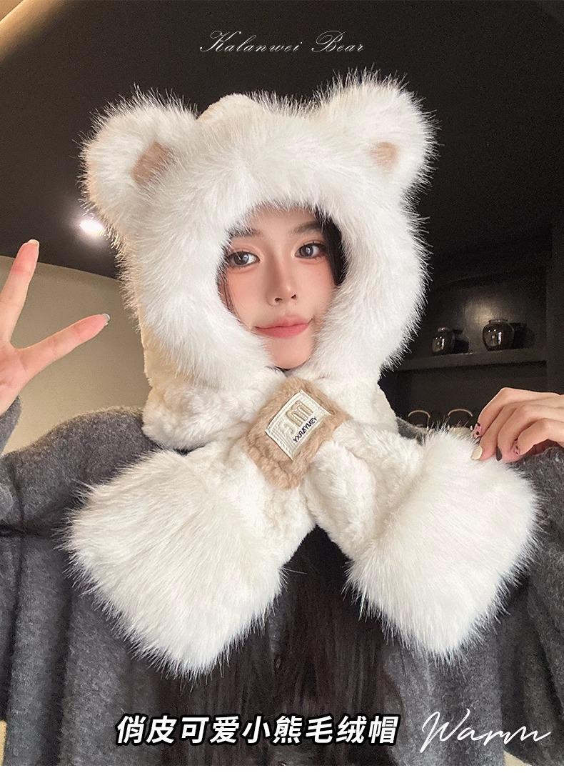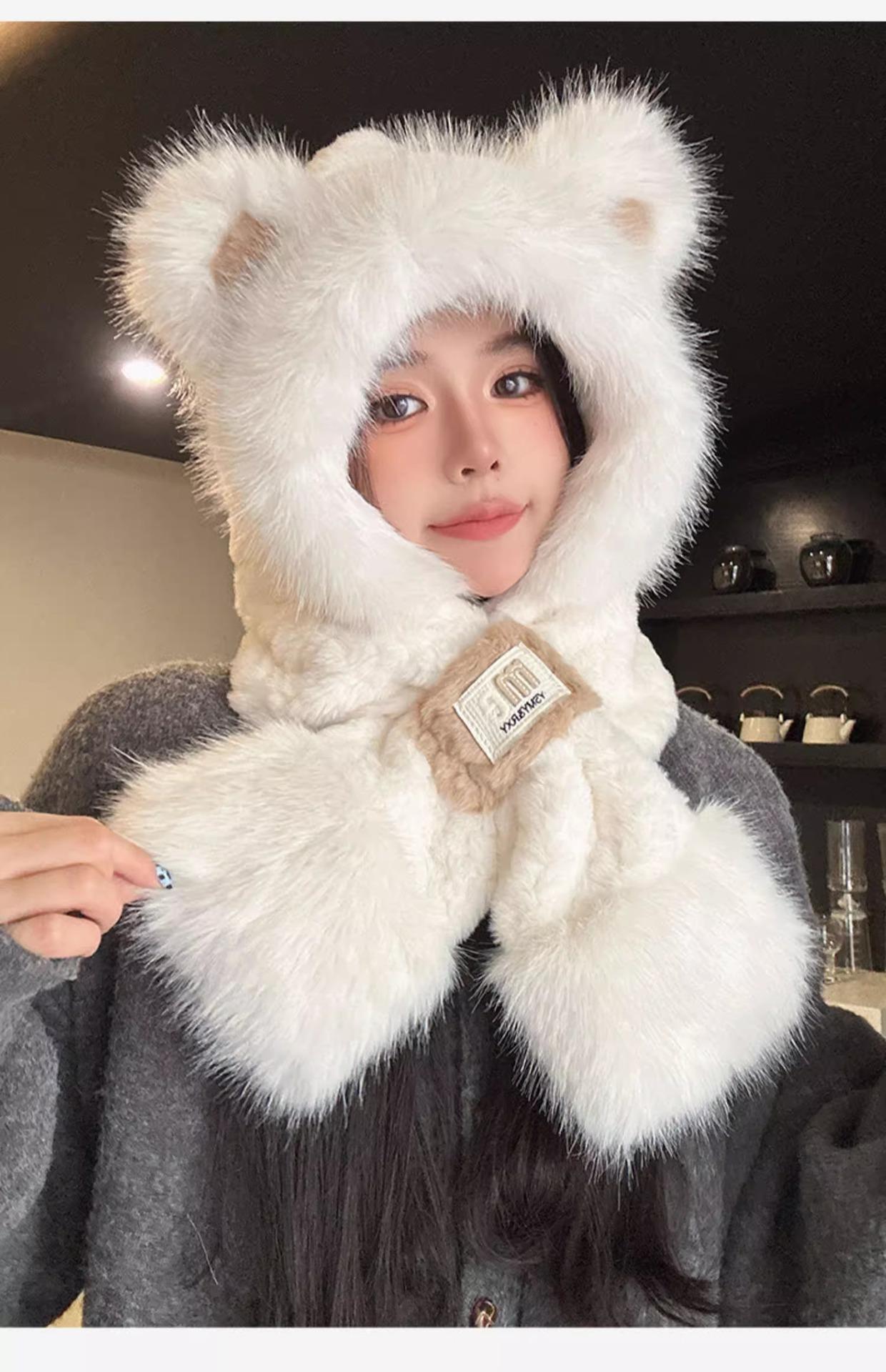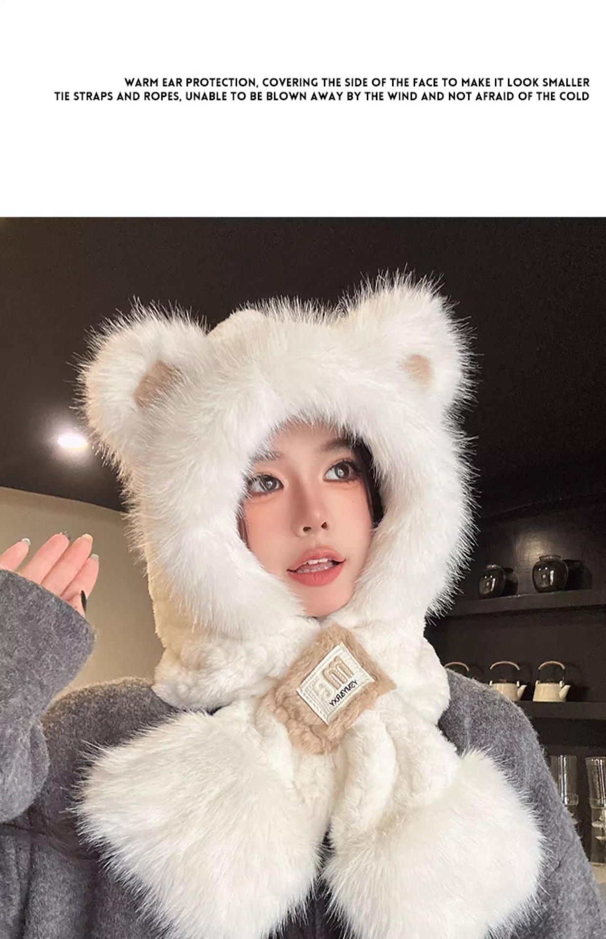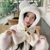 Lindo Gorro de Oso de Peluche Bufanda de Una Pieza para Mujer Estilo Coreano Invierno Cortavientos Cálido Protección para las Orejas para Montar Calentador de Cuello Gorro de Peluche
