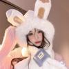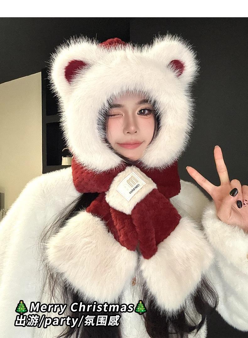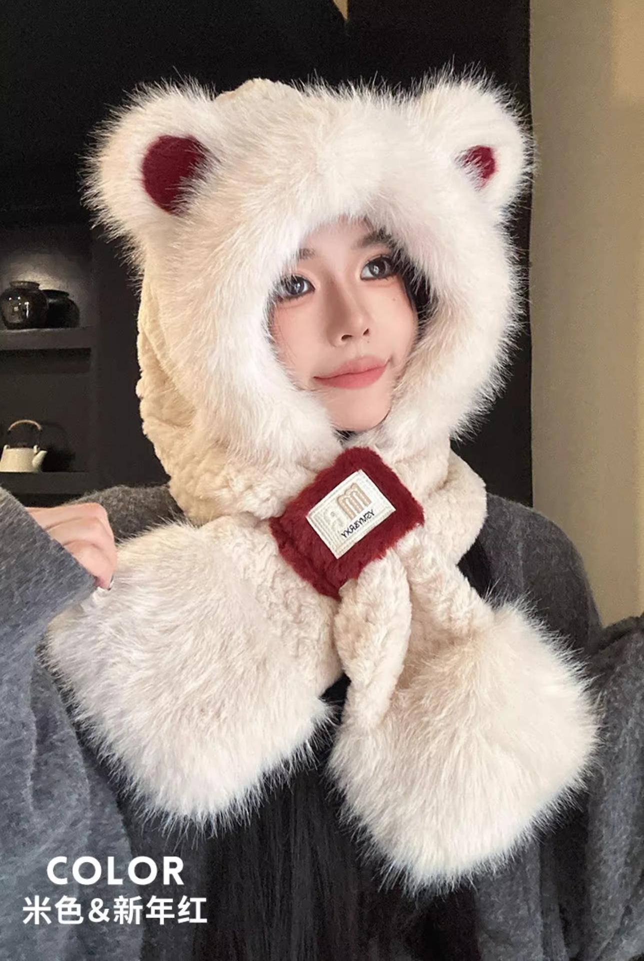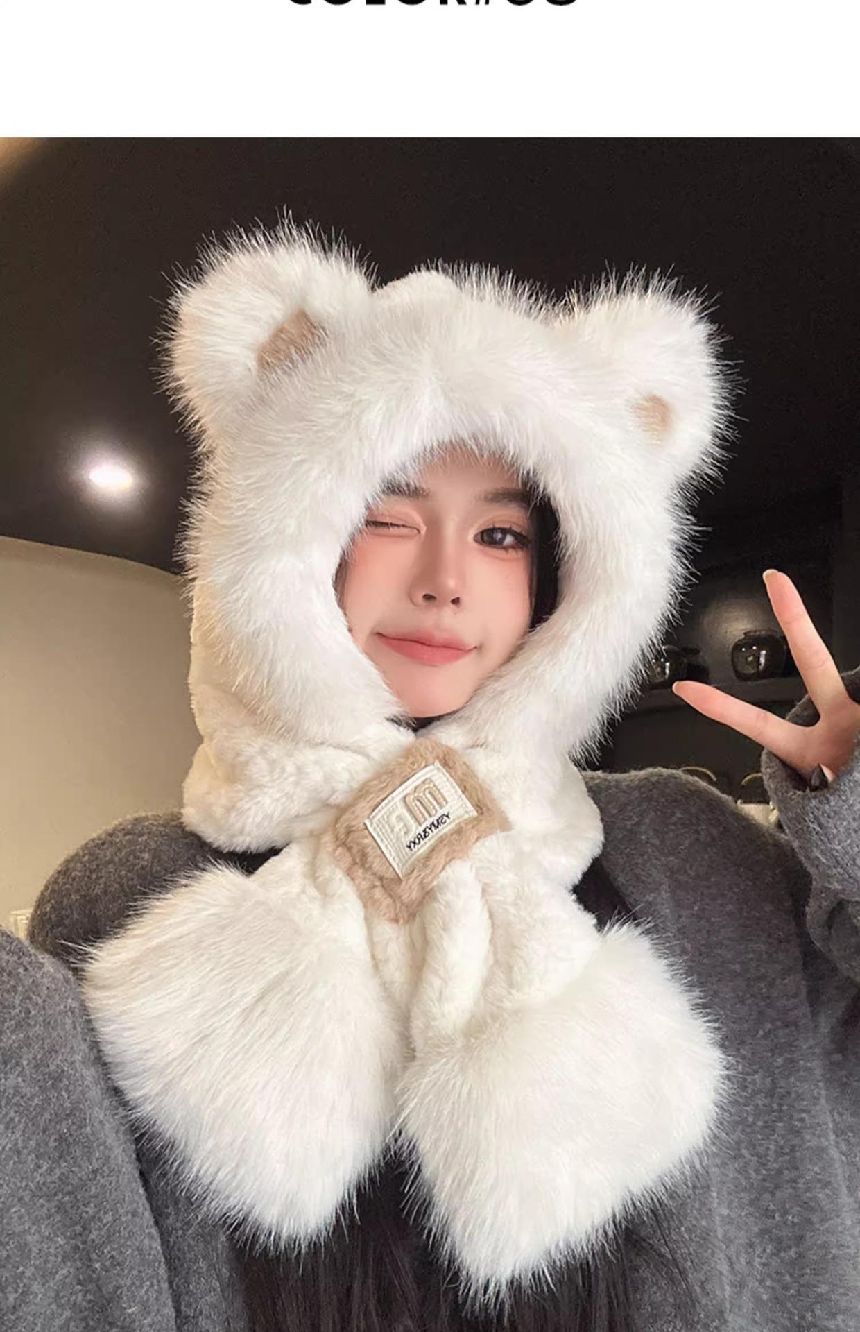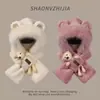 Lindo Gorro de Oso de Peluche Bufanda de Una Pieza para Mujer Estilo Coreano Invierno Cortavientos Cálido Protección para las Orejas para Montar Calentador de Cuello Gorro de Peluche