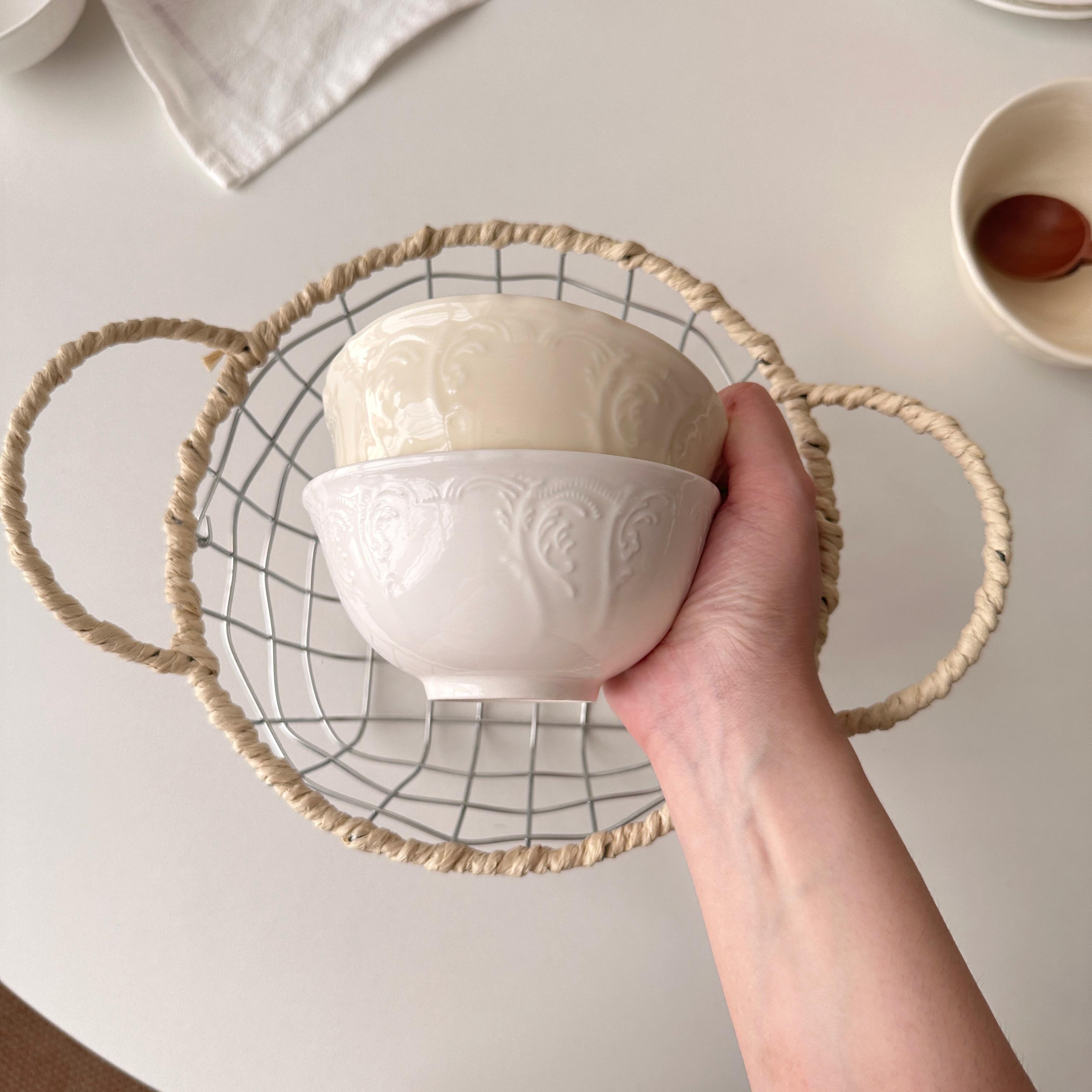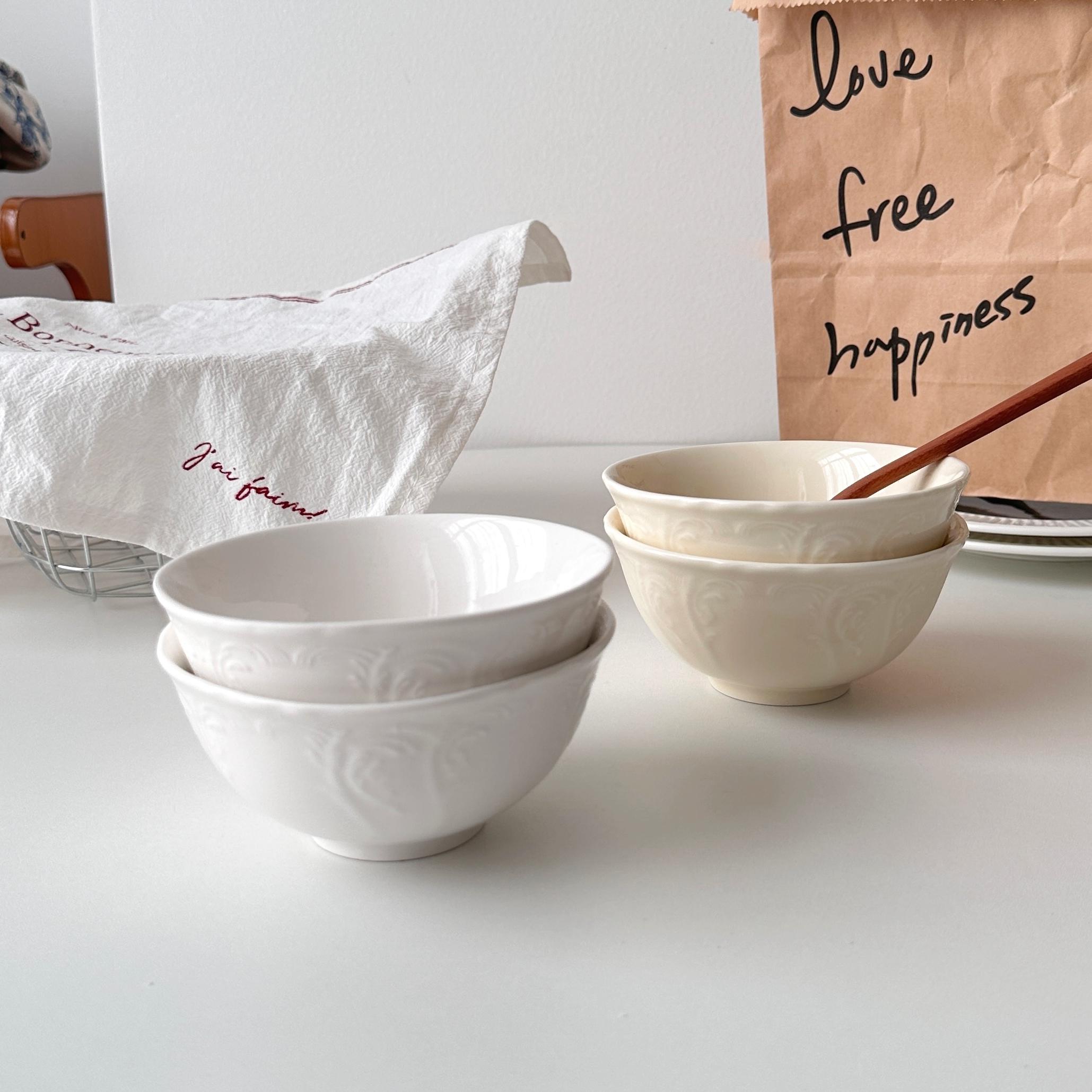 Pupu Home Tazón de Cerámica Doméstico con Relieve Francés para Arroz, Fruta, Ensalada, Yogurt, Tazón Pequeño Individual para Crema