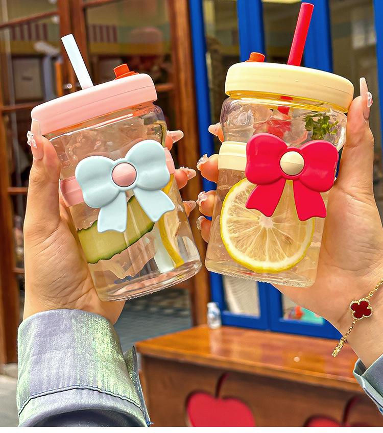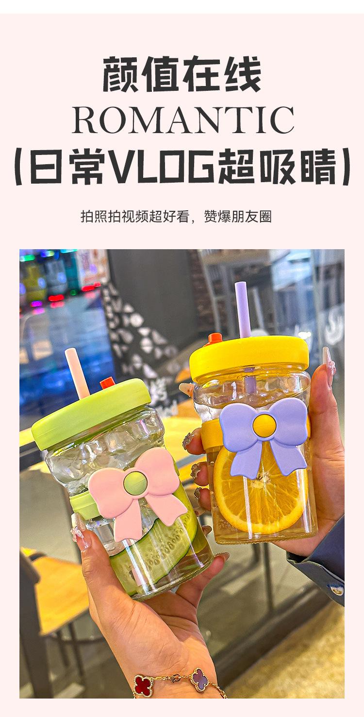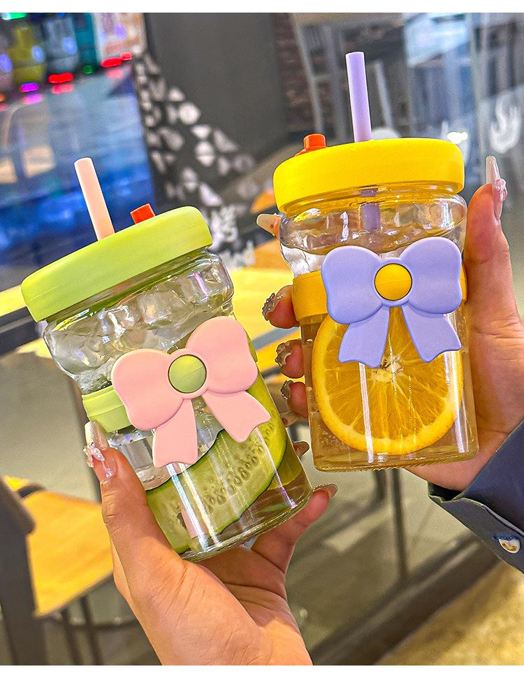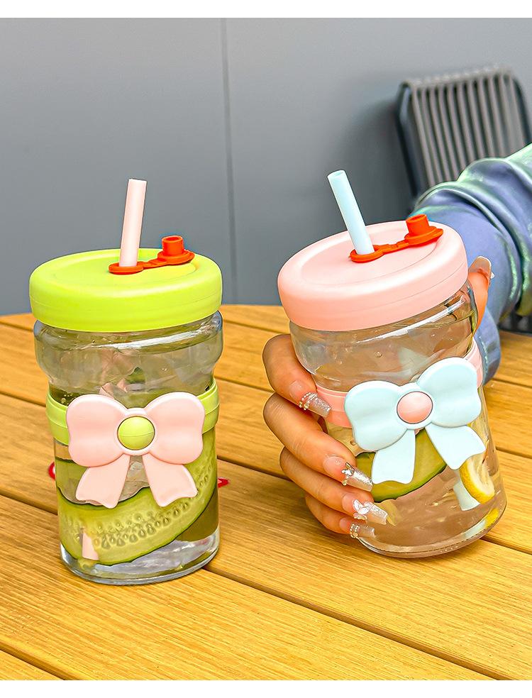 Vaso de vidrio con popote vaso de vidrio creativo con popote resistente a altas temperaturas para el hogar la oficina vaso de recuerdo vaso para agua taza