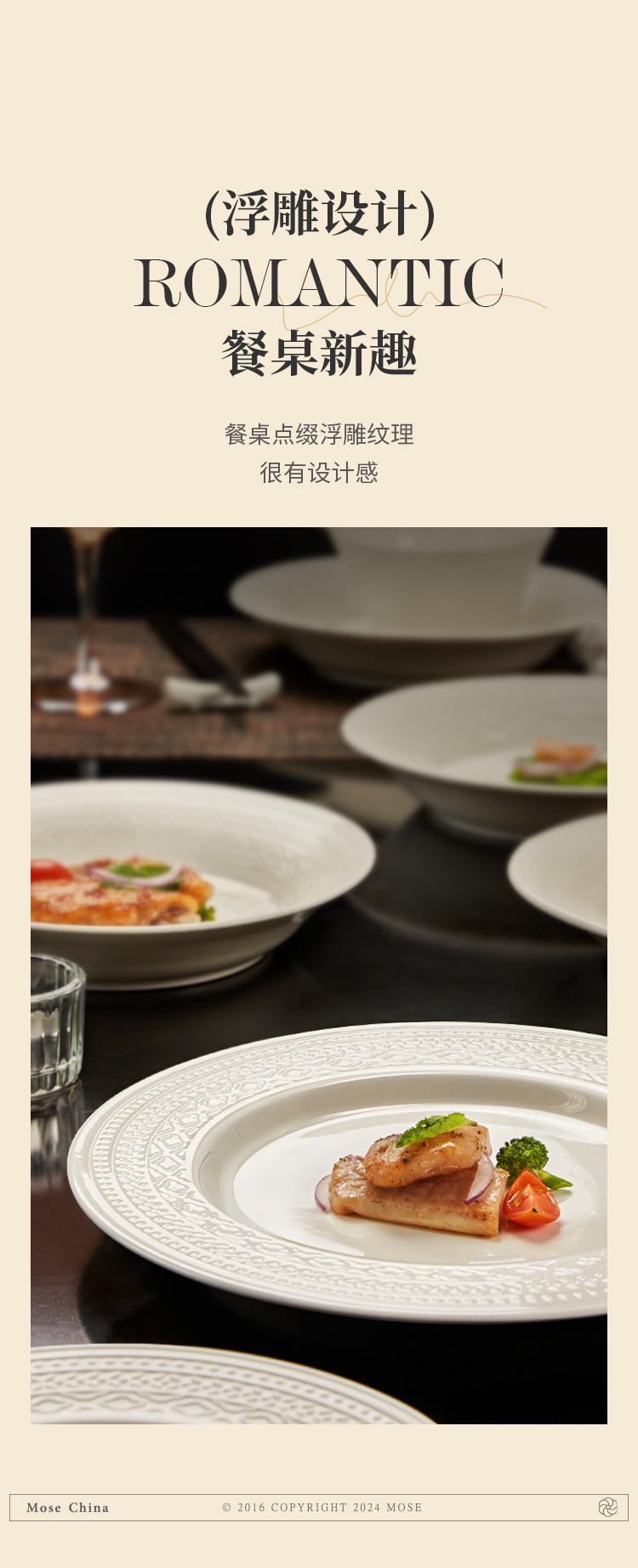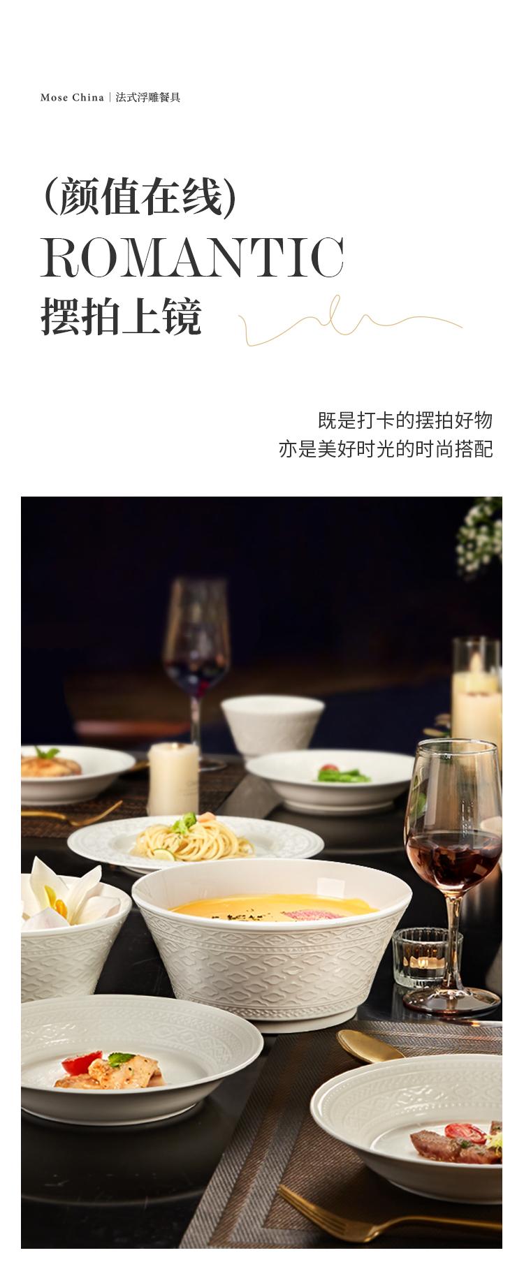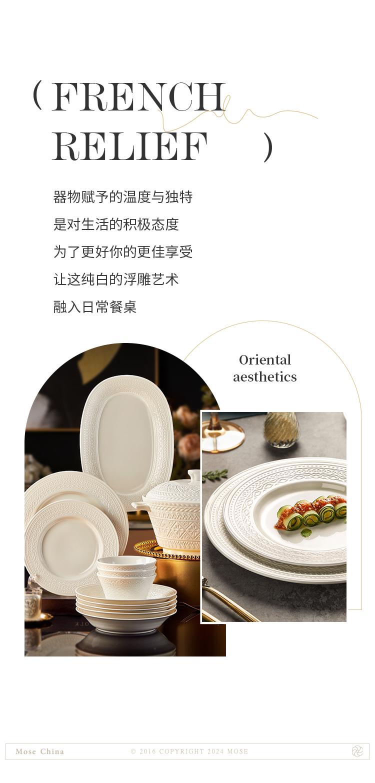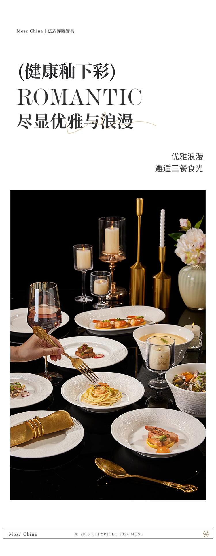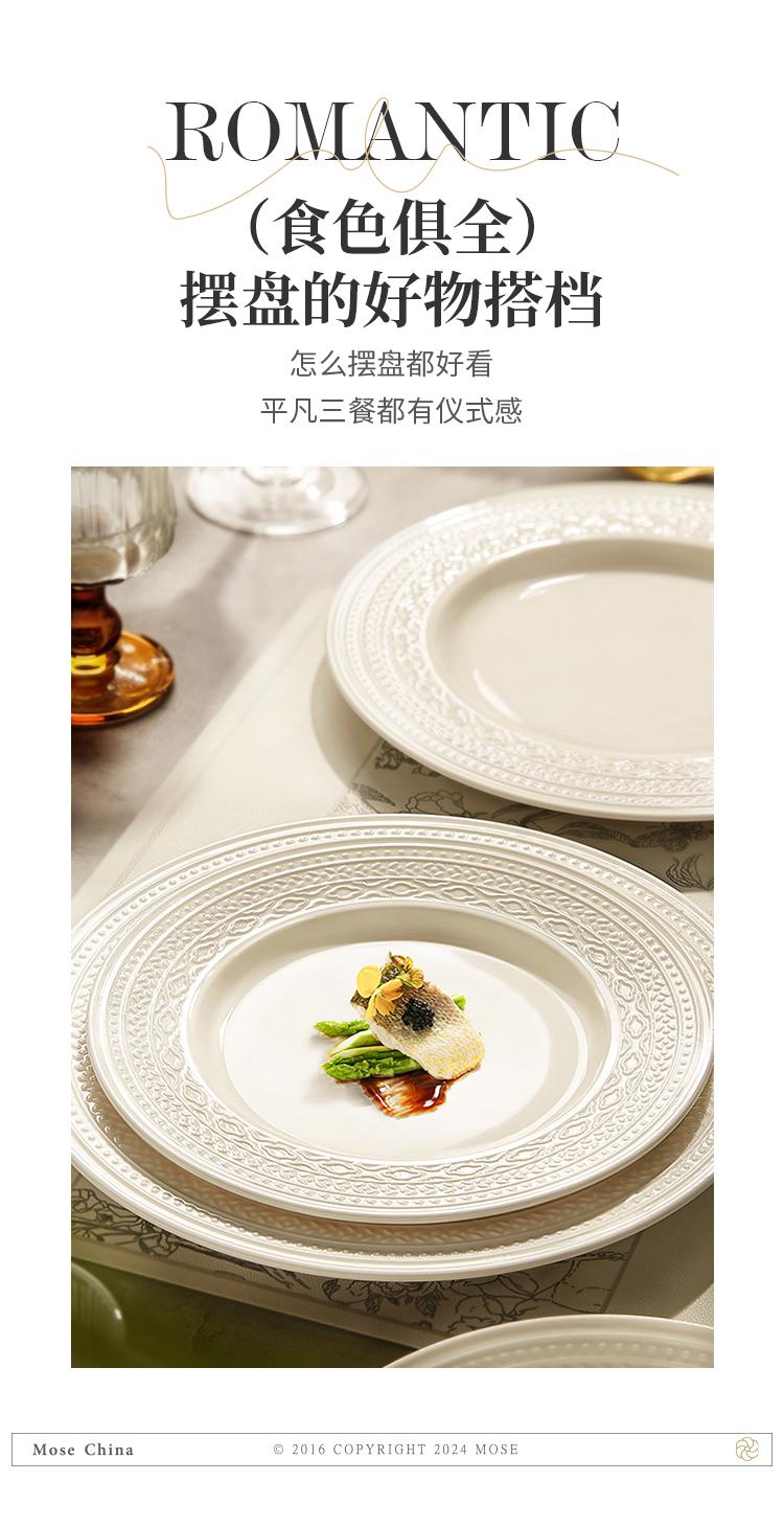 Plato para Bistec Francés en Relieve Plato para Comida Occidental Sentido de Lujo Ligero Plato Hondo Plato Plano Vajilla con Sentido Ritual