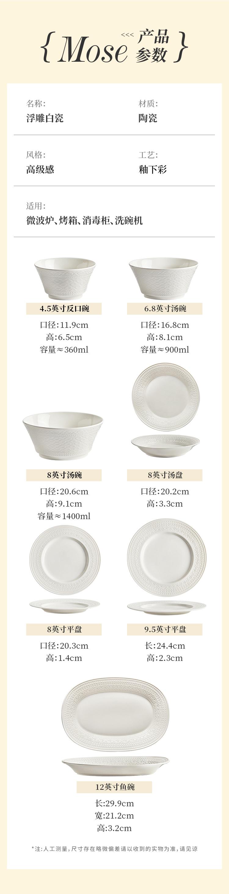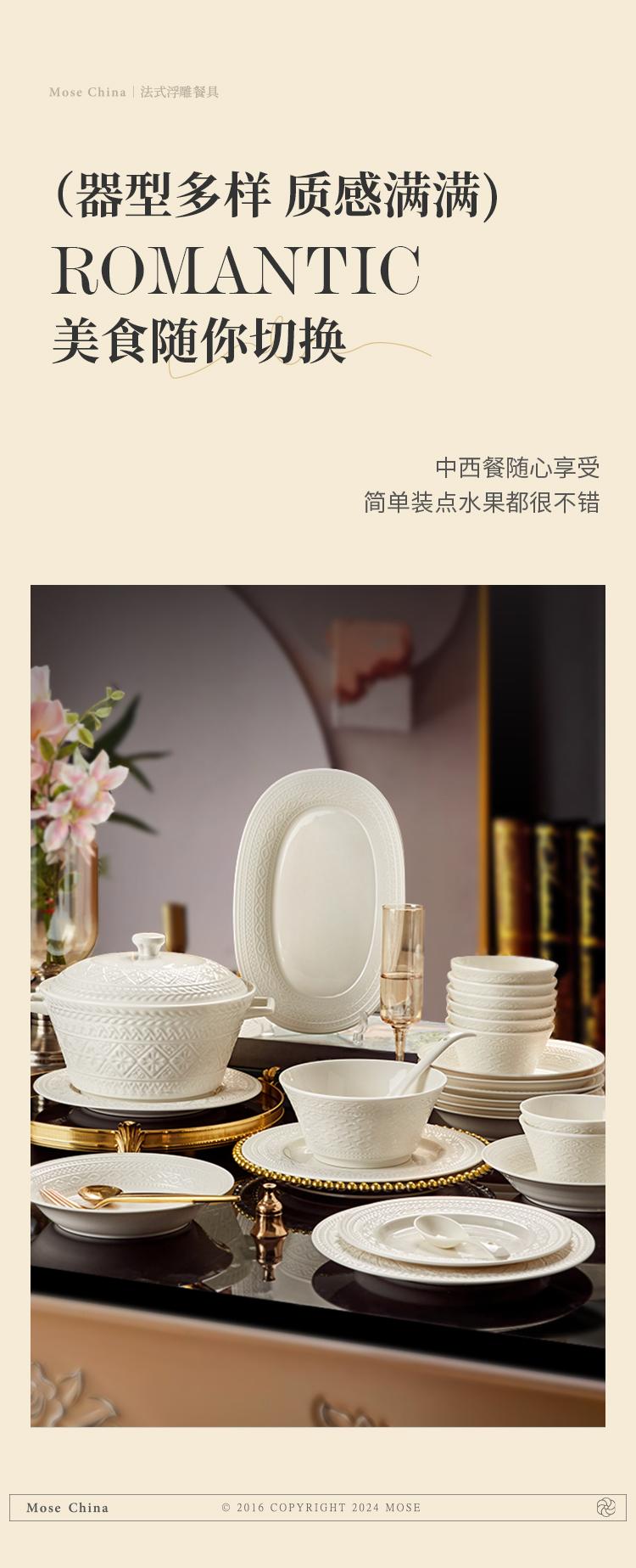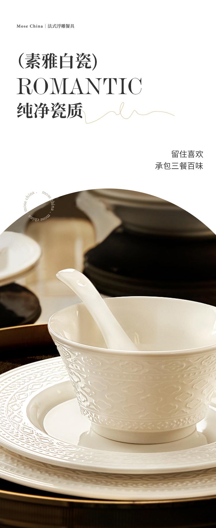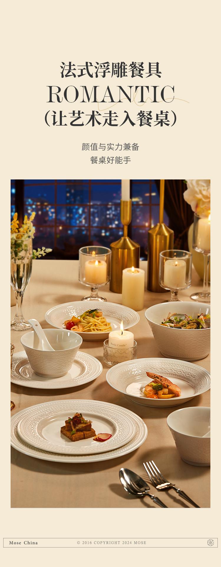 Plato para Bistec Francés en Relieve Plato para Comida Occidental Sentido de Lujo Ligero Plato Hondo Plato Plano Vajilla con Sentido Ritual