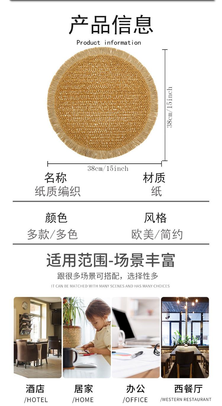 Pajita de Papel Estilo Japonés Individual Estilo Occidental Mantel Individual Aislamiento Térmico para Mesa de Comedor Redondo Mantel Individual para Mesa de Comedor Ins Posavasos Tapete para Olla Tapete para Tazón para Uso Doméstico