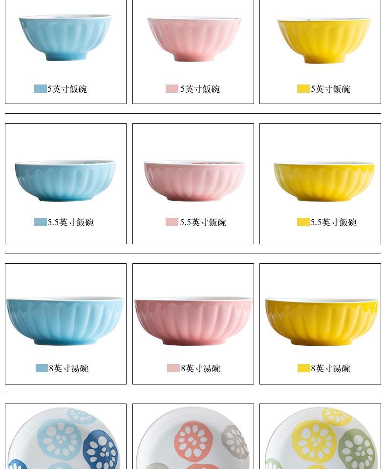 Tazón de arroz de cerámica para el hogar estilo japonés, tazón para ensalada, tazón para desayuno, tazón creativo para sopa, tazón para fideos, plato, juego combinado de tazón y plato