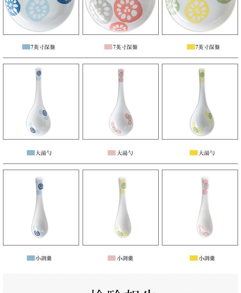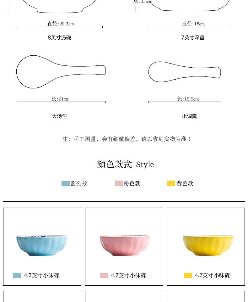 Pink 4.2inch small flavor plate, Yellow 4.2inch small flavor plate, Blue 4.2inch small flavor plate, Pink spoo...