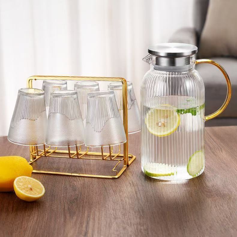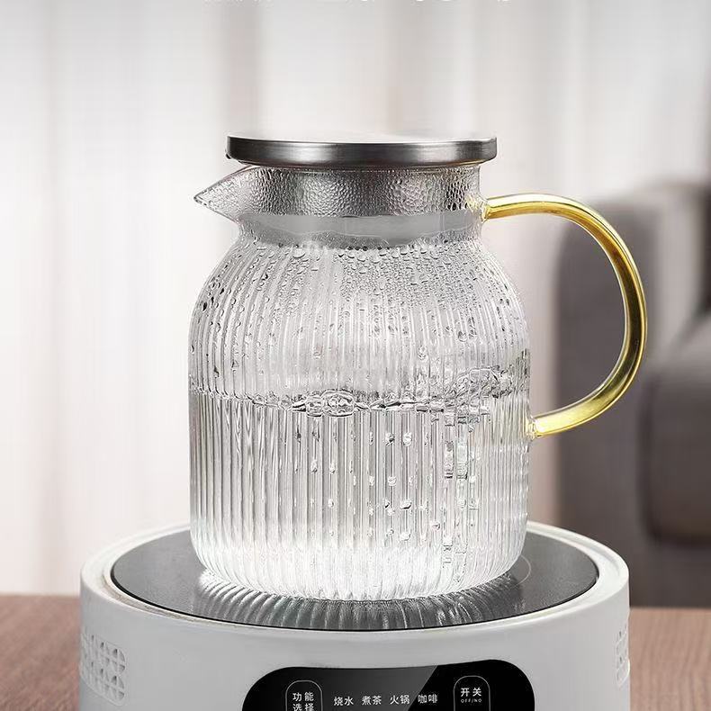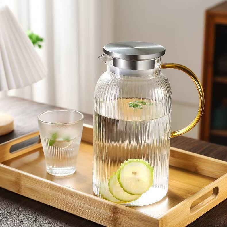 Jarra de Vidrio para Agua Fría para el Hogar, Resistente a Altas Temperaturas, Jarra para Agua Fría de Gran Capacidad, Juego de Tetera Blanca Fría Resistente al Calor y a Prueba de Explosiones