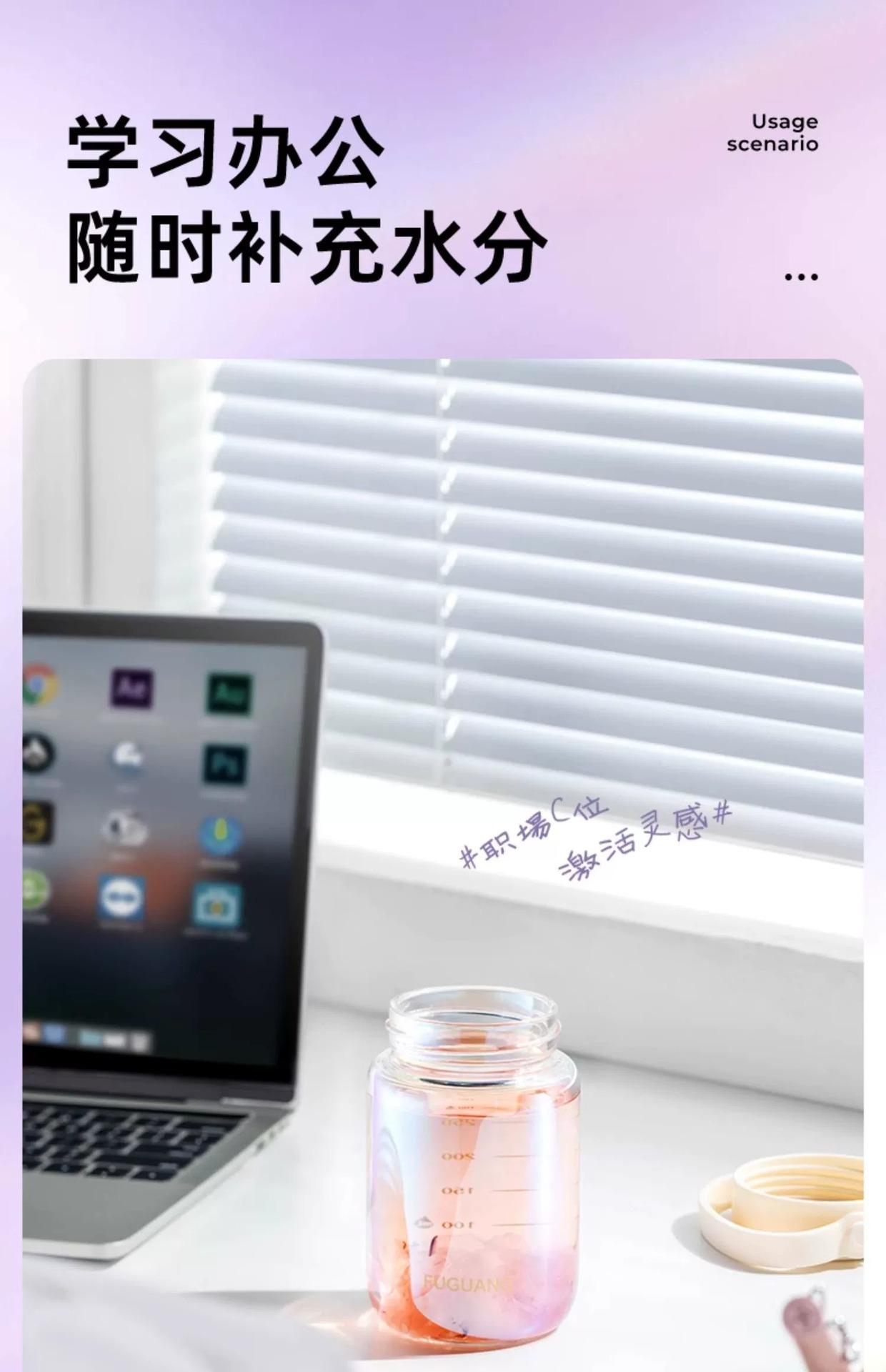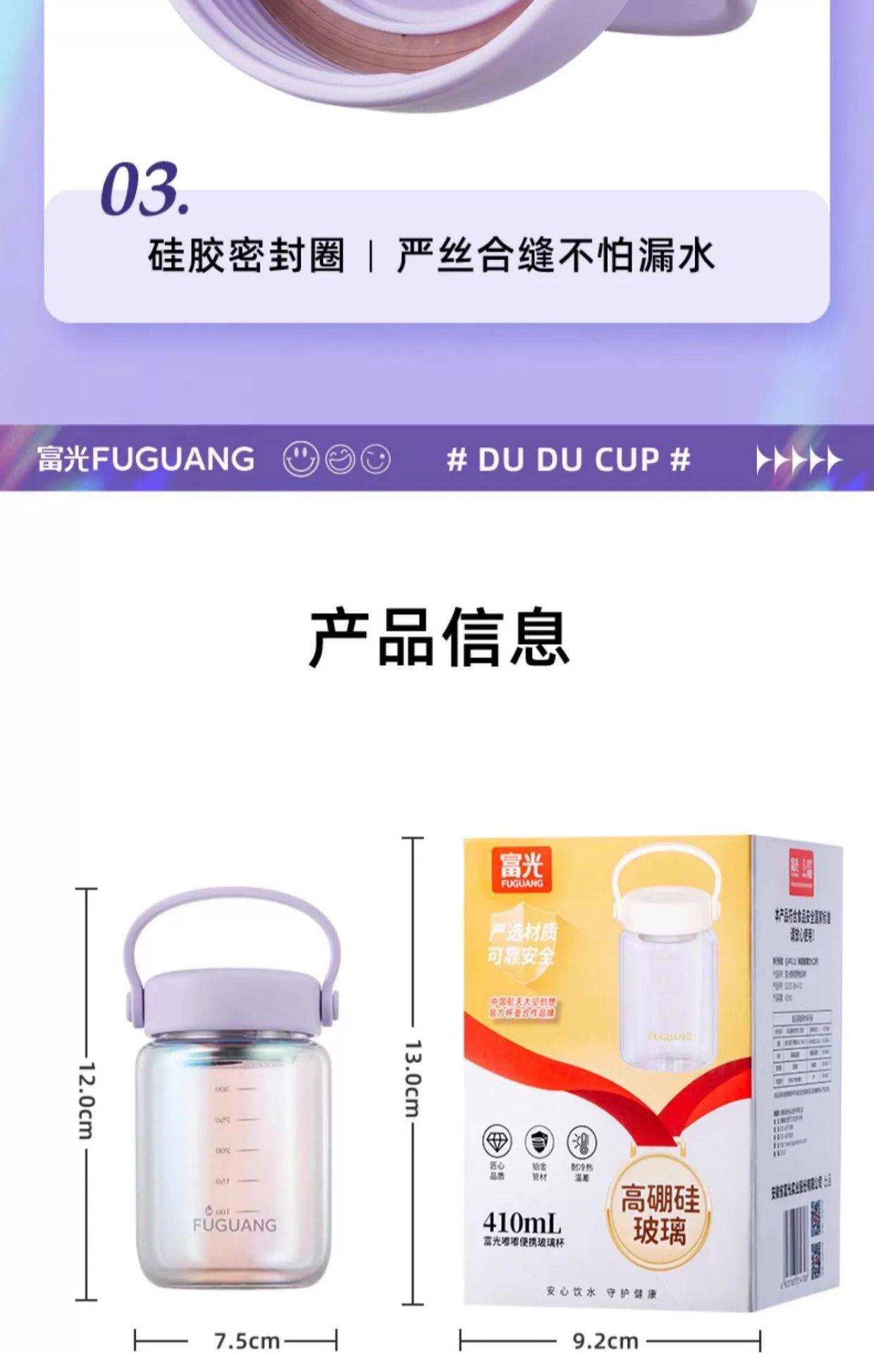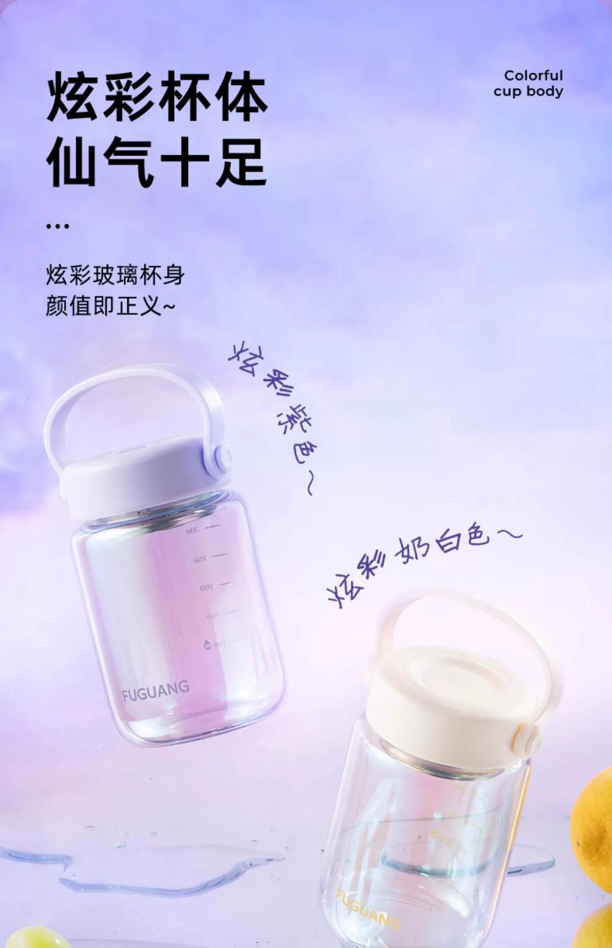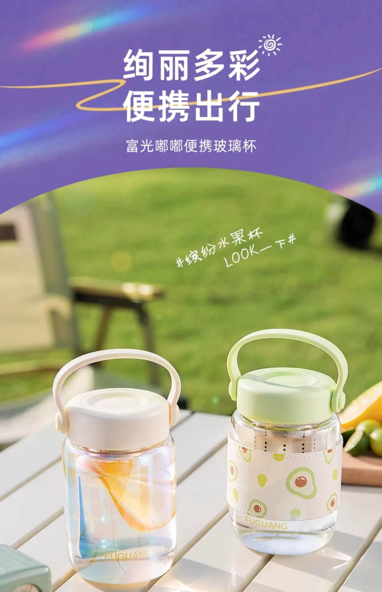 Vaso de vidrio Fuguang para mujer, taza de té portátil de alta apariencia, taza de separación de té para oficina, taza para leche y café
