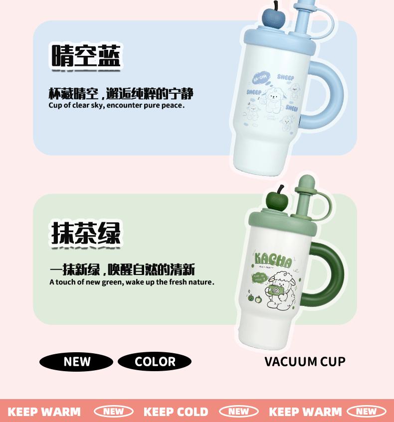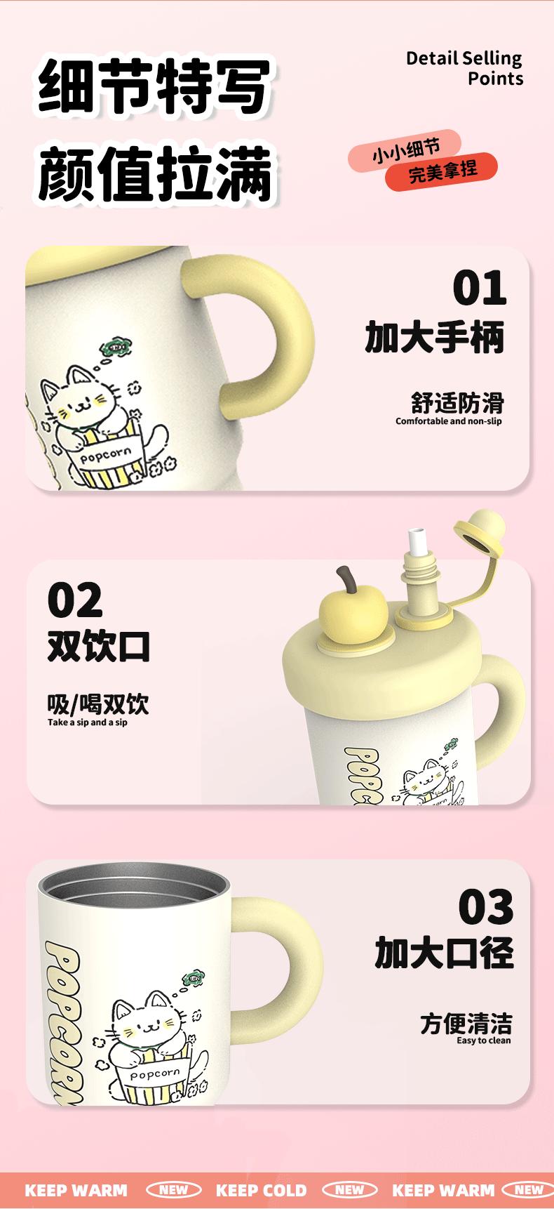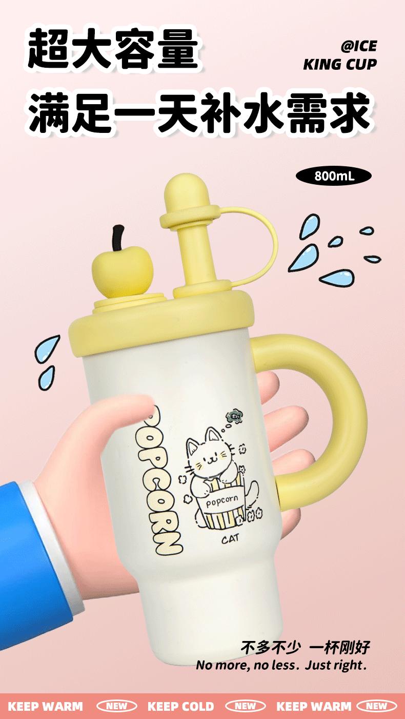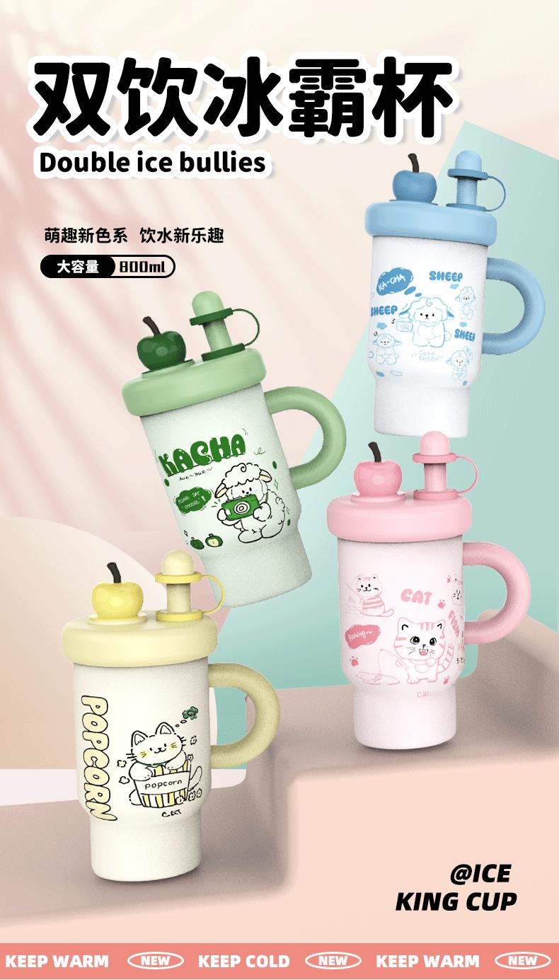 Nueva Taza Termo de Dibujos Animados, Vaso para Hielo de Gran Capacidad con Colador de Té, Asa de Pajita, Vaso de Agua de Alto Valor para Montar en el Coche Personalización