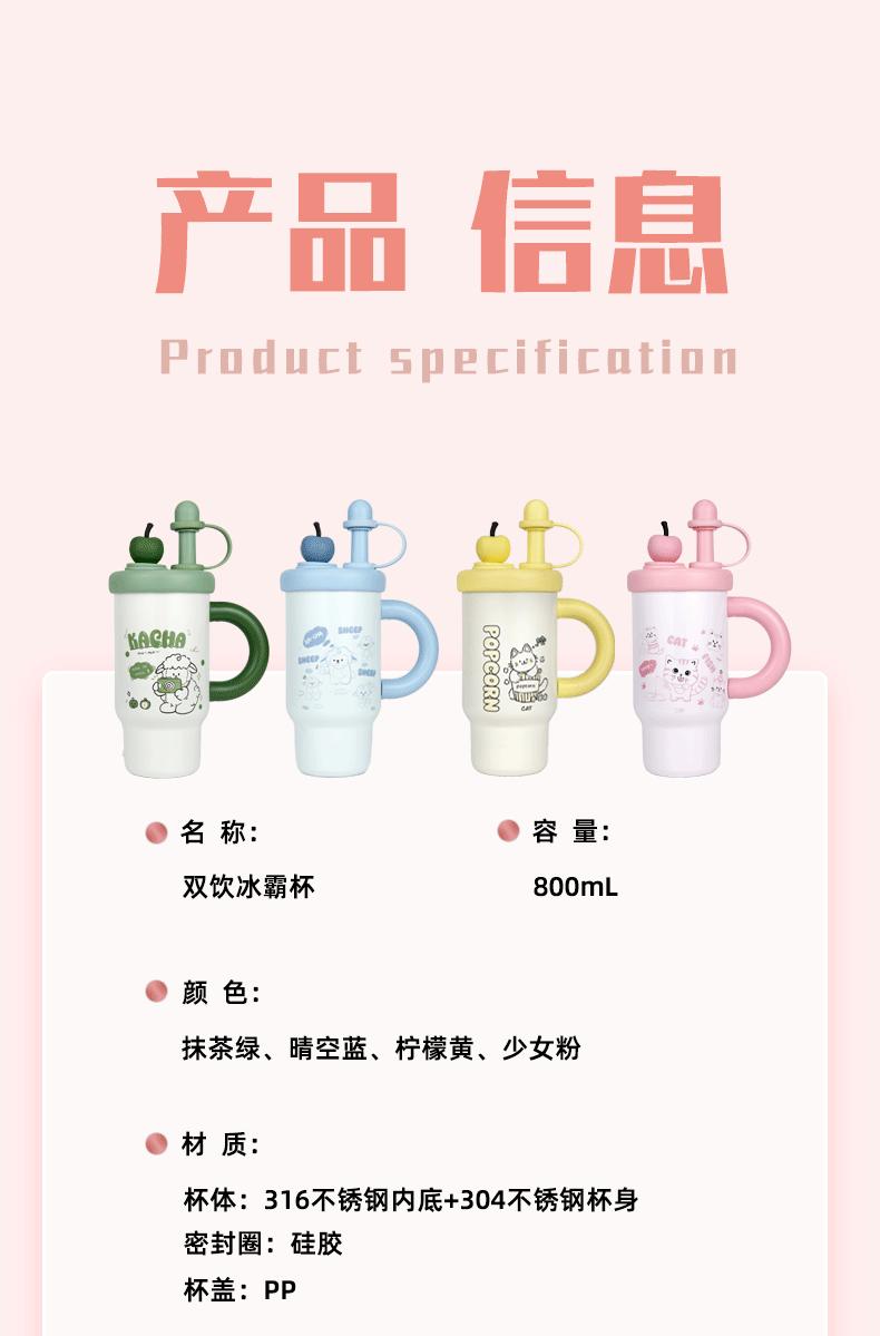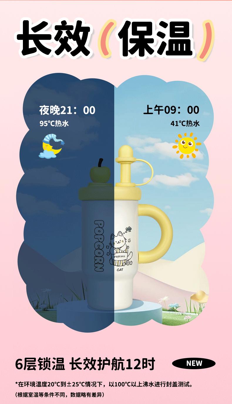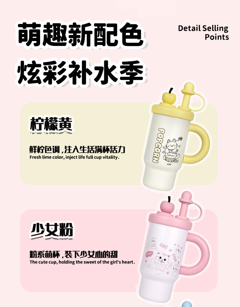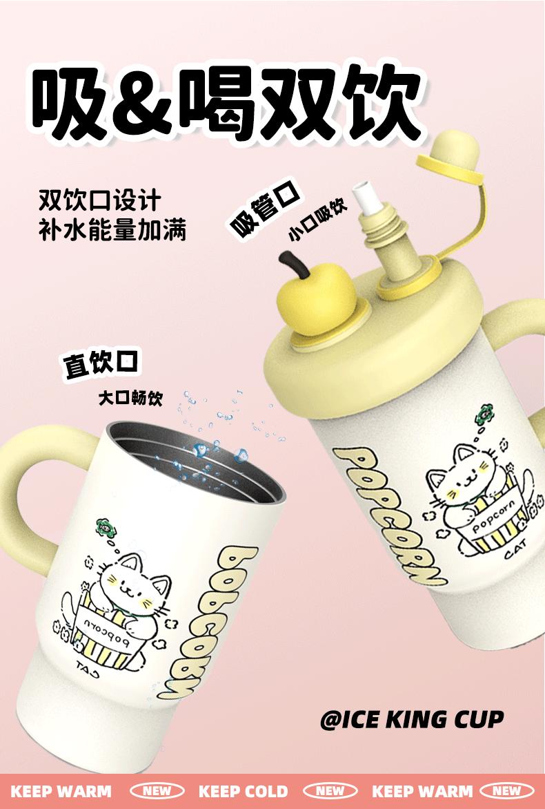 Nueva Taza Termo de Dibujos Animados, Vaso para Hielo de Gran Capacidad con Colador de Té, Asa de Pajita, Vaso de Agua de Alto Valor para Montar en el Coche Personalización